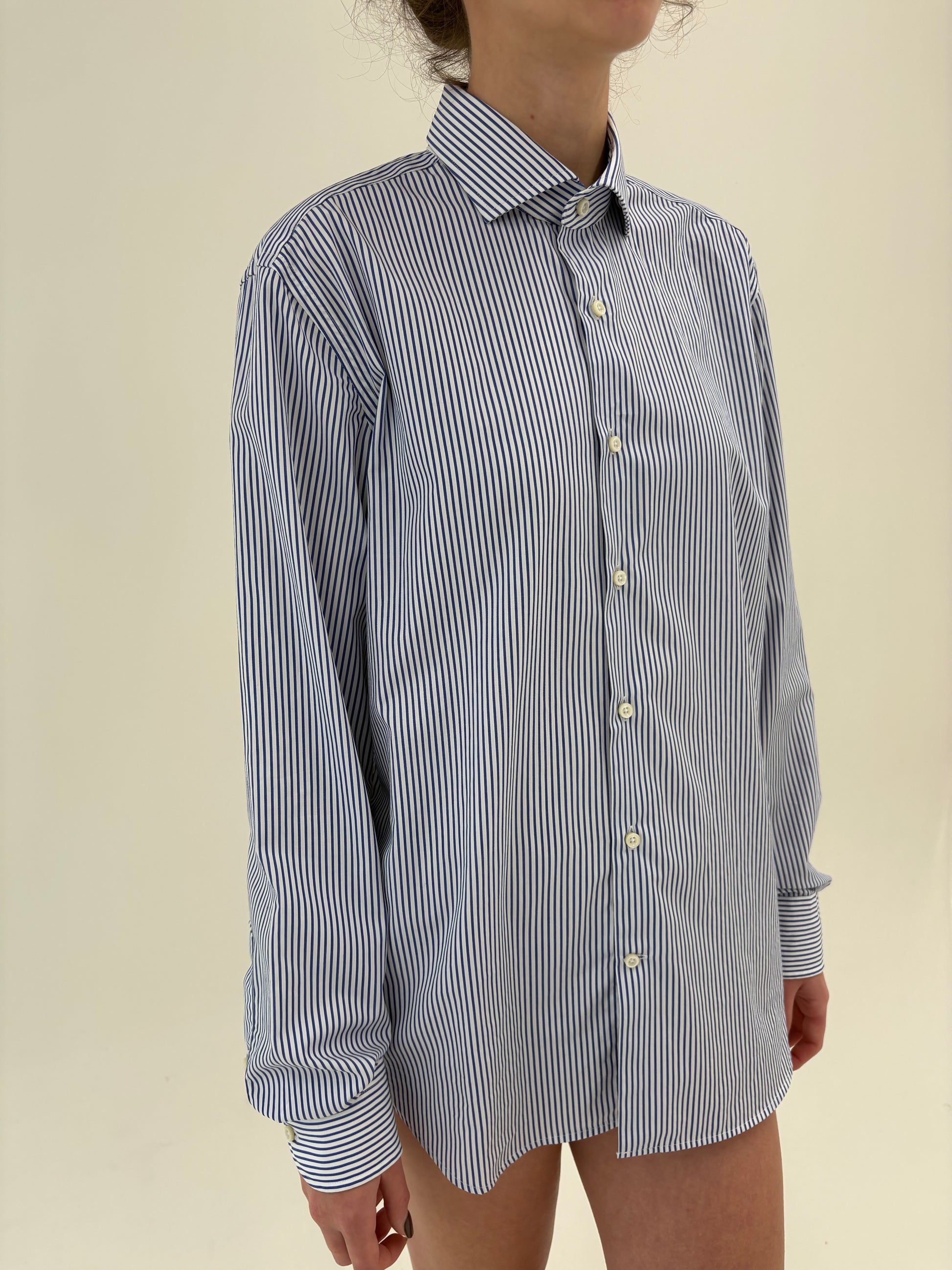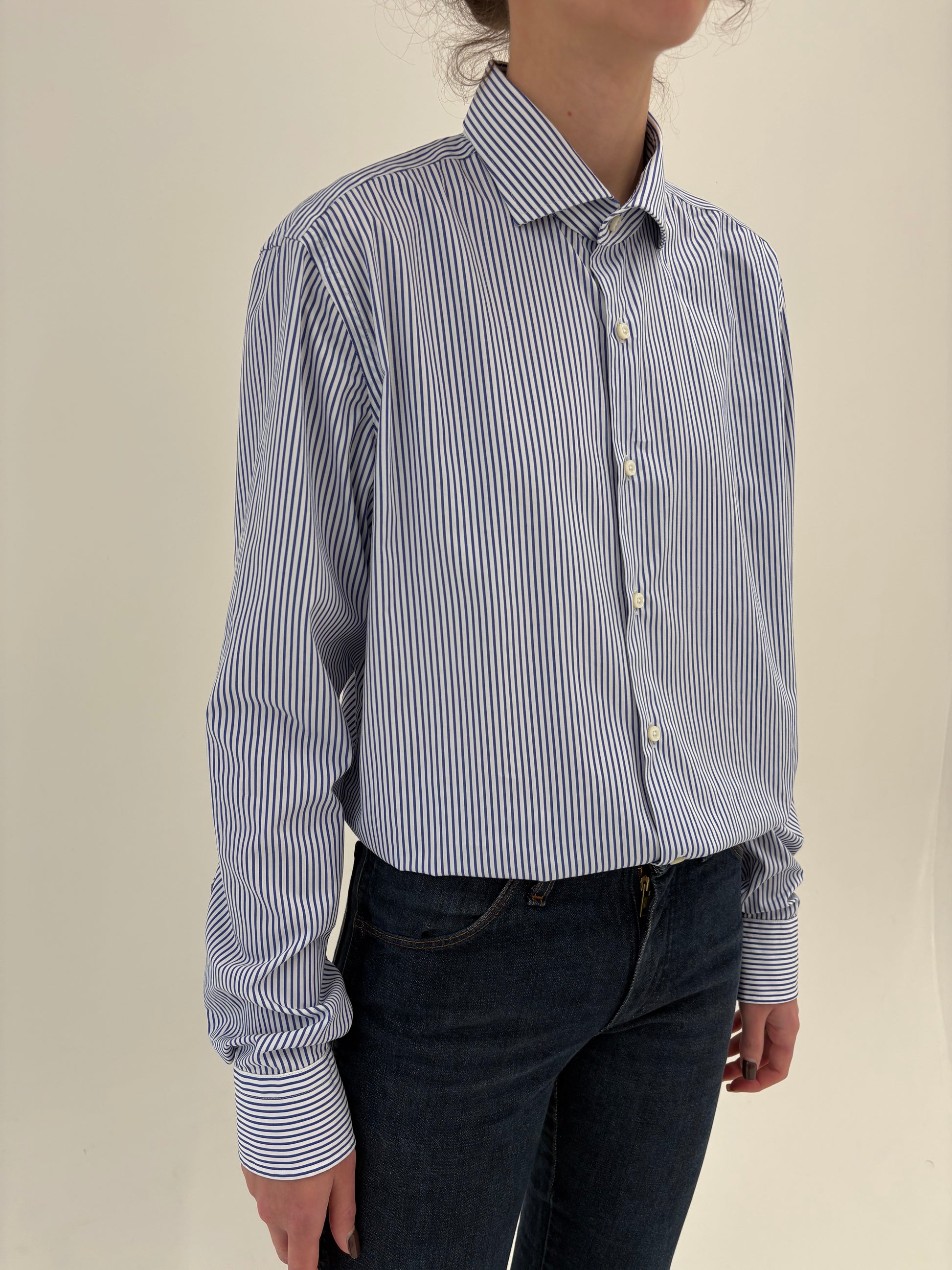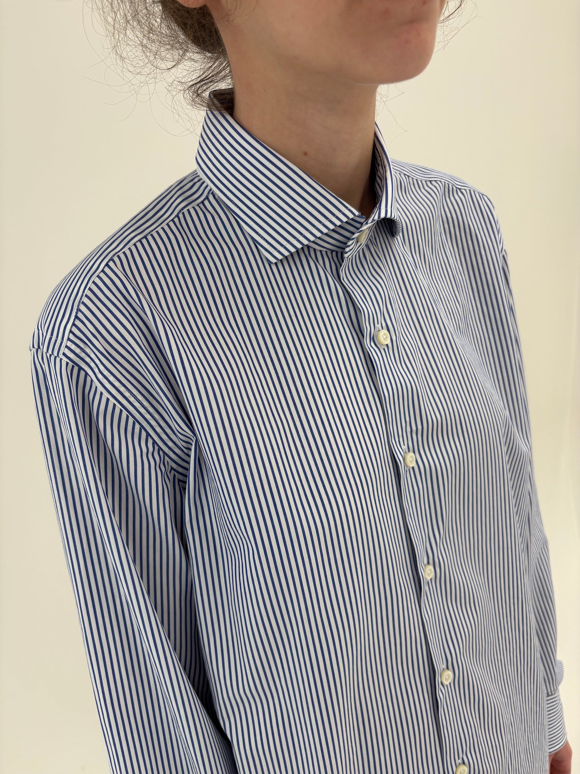 Cămașa high end italiană din bumbac egiptean cu dungi Navy blue