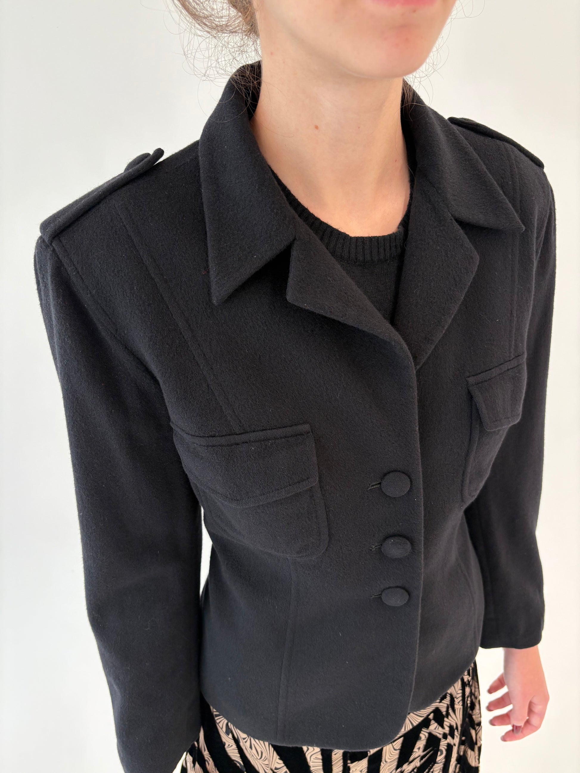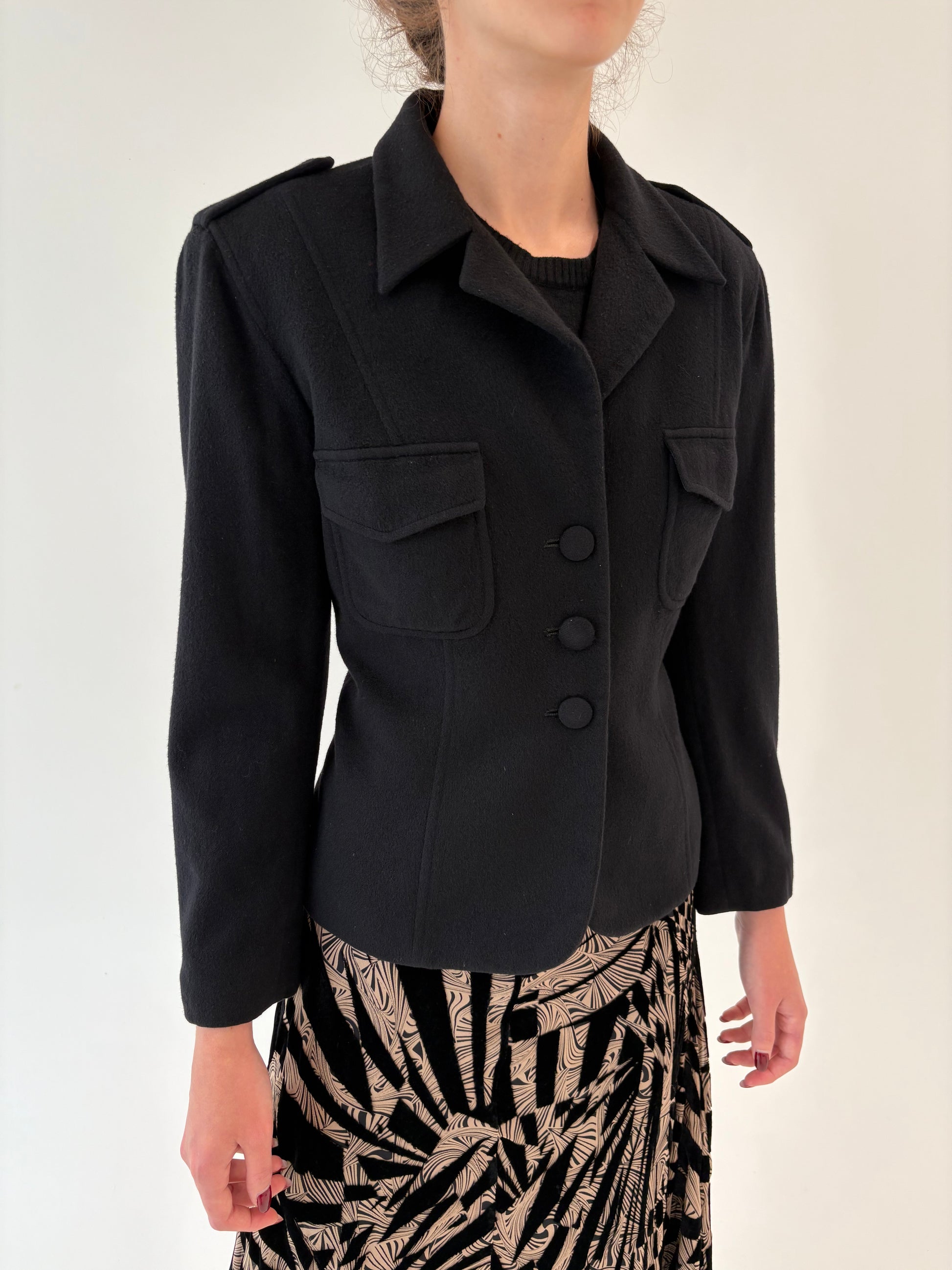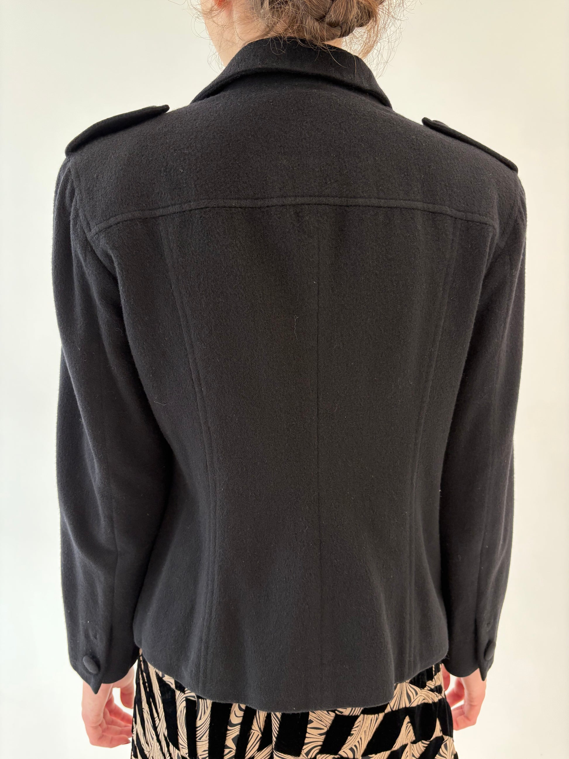 Jacheta din stofă de cașmir 100% plină cambrata neagră