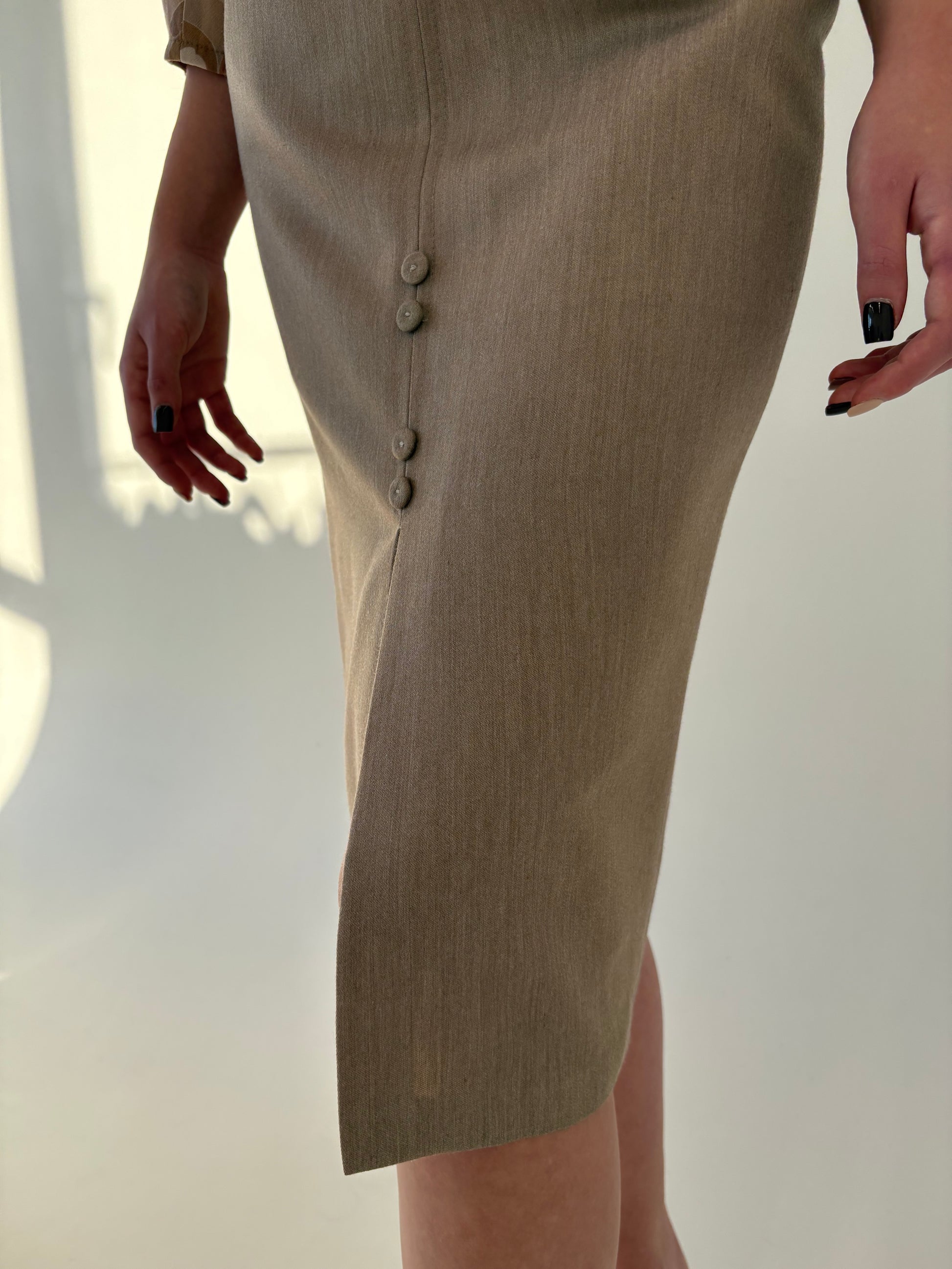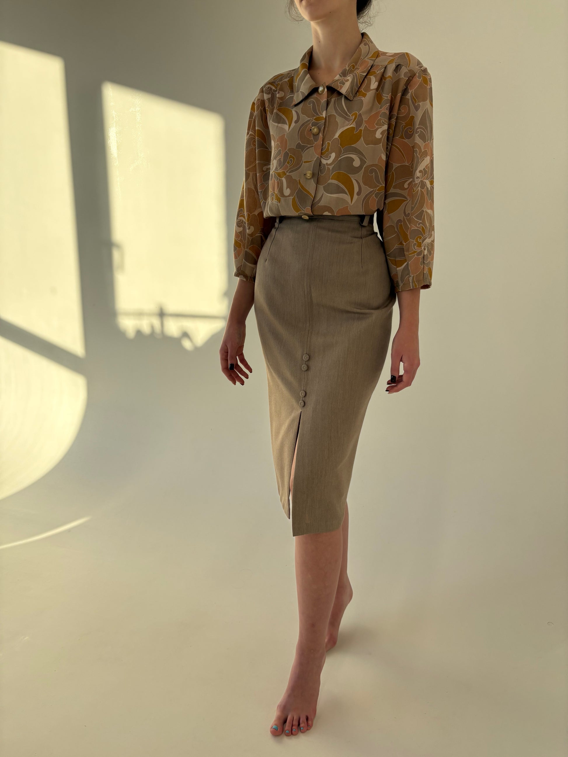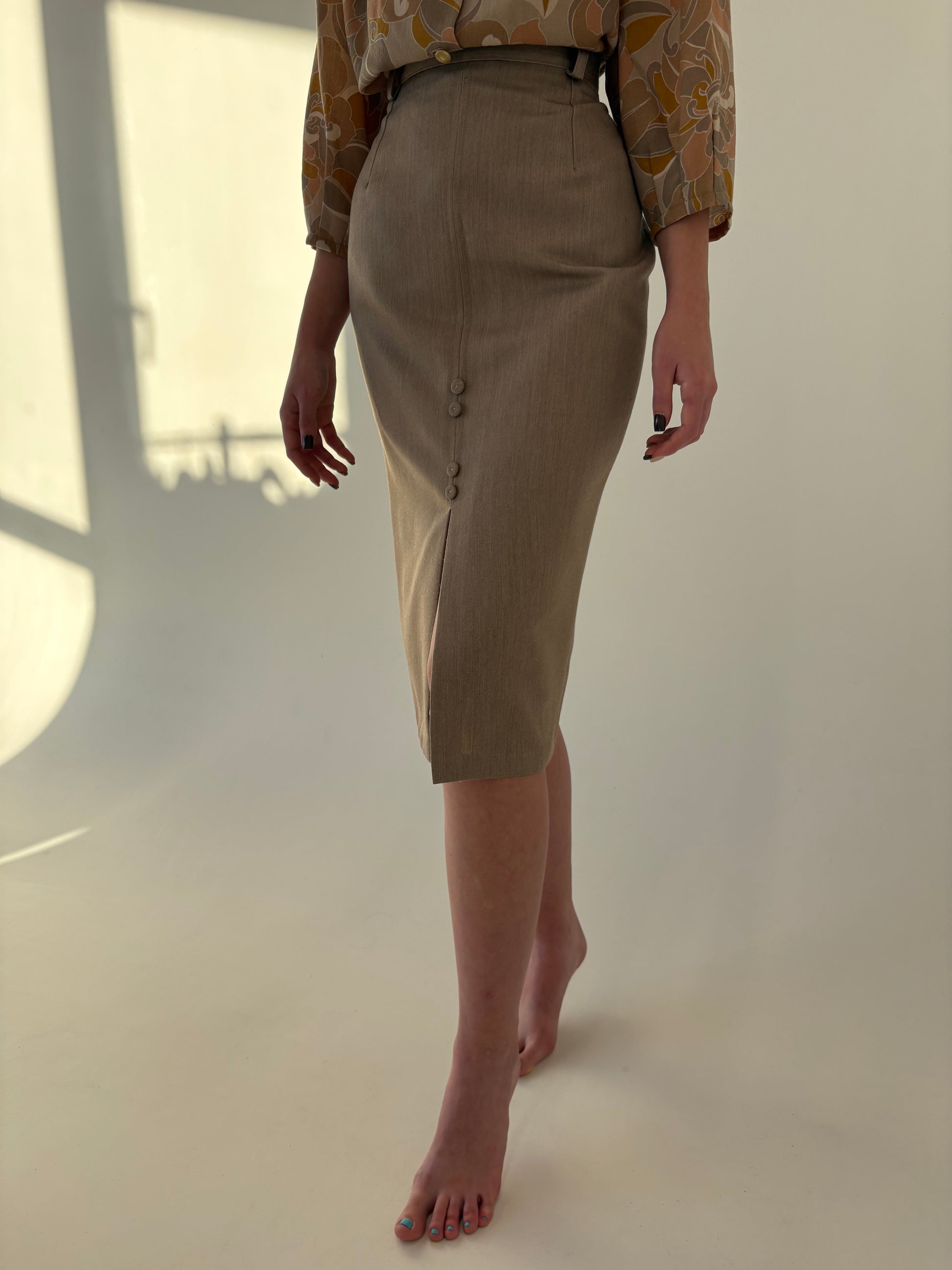 Fustă camel conica cu talie ultra înaltă din stofă extrafina