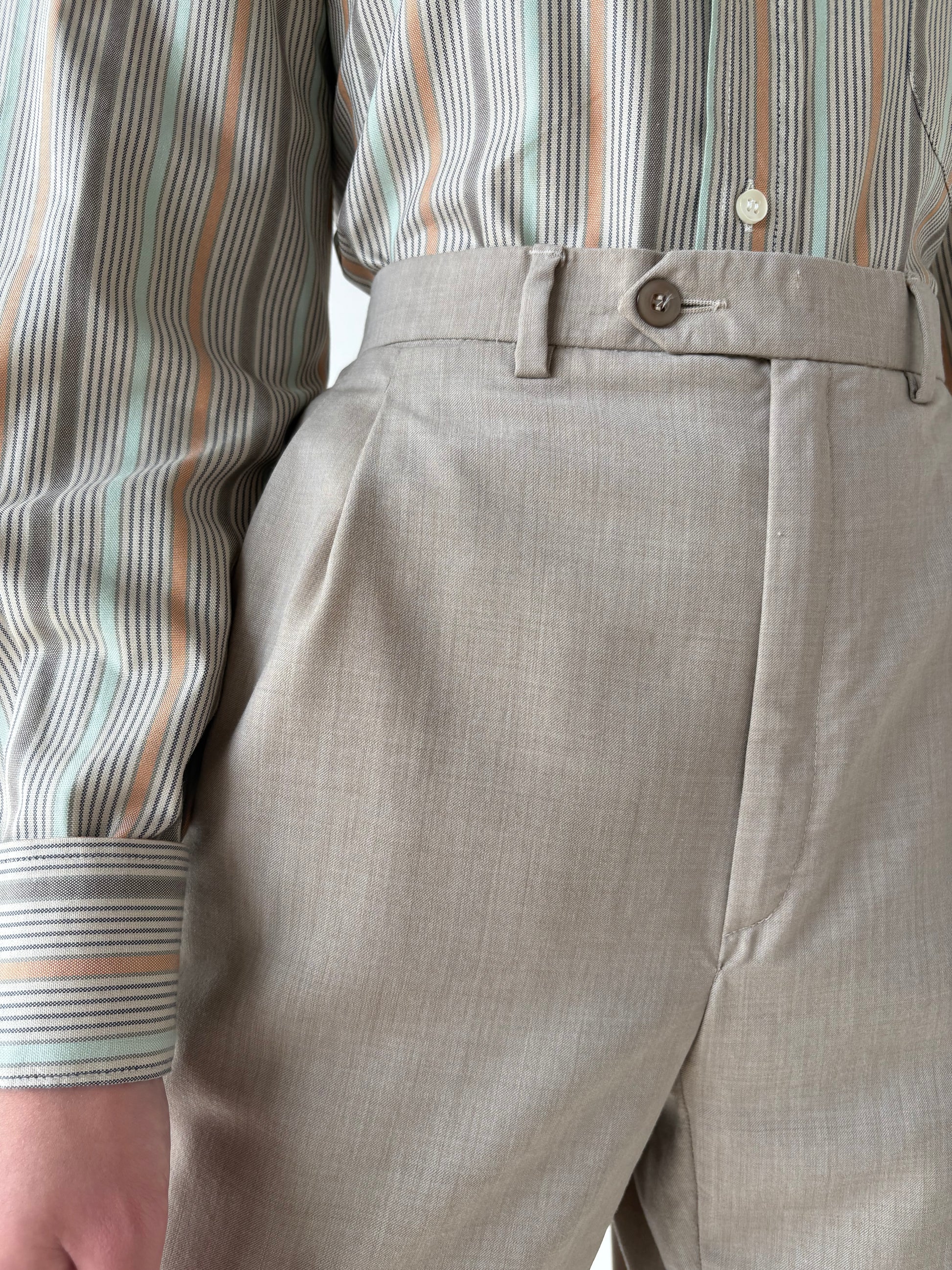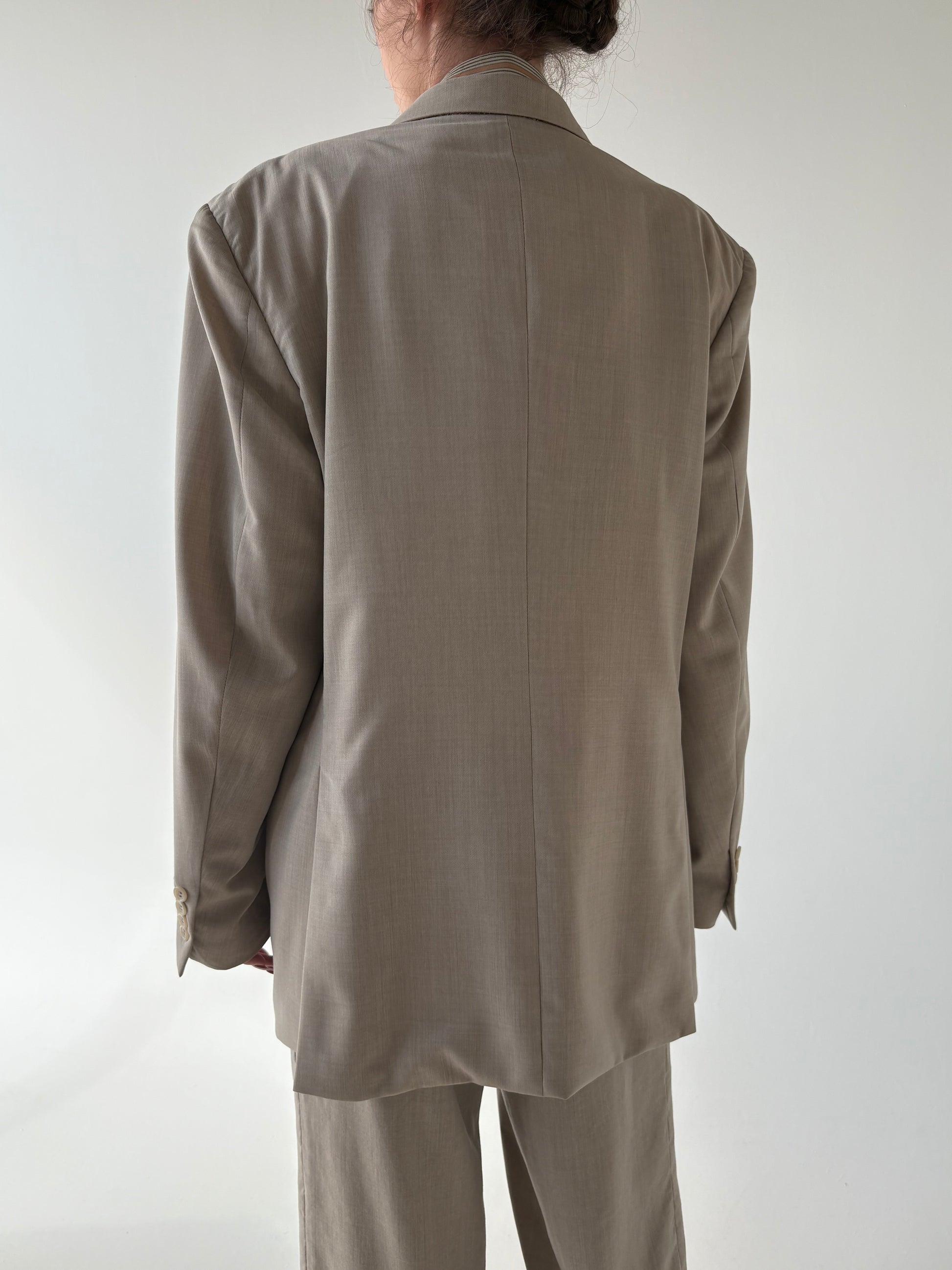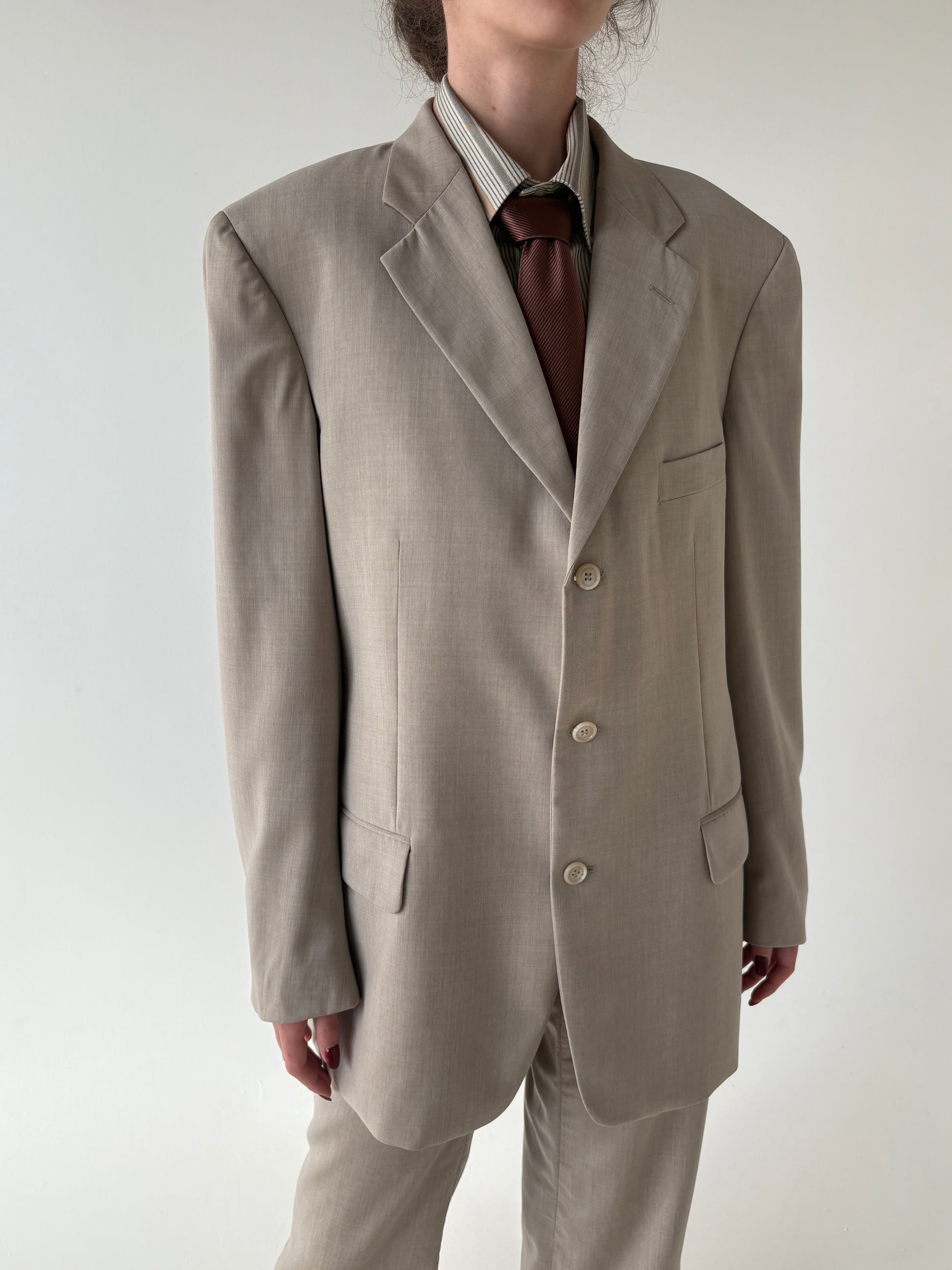 Costum light nude din lana extrafina în croi actual și pantaloni cu pense
