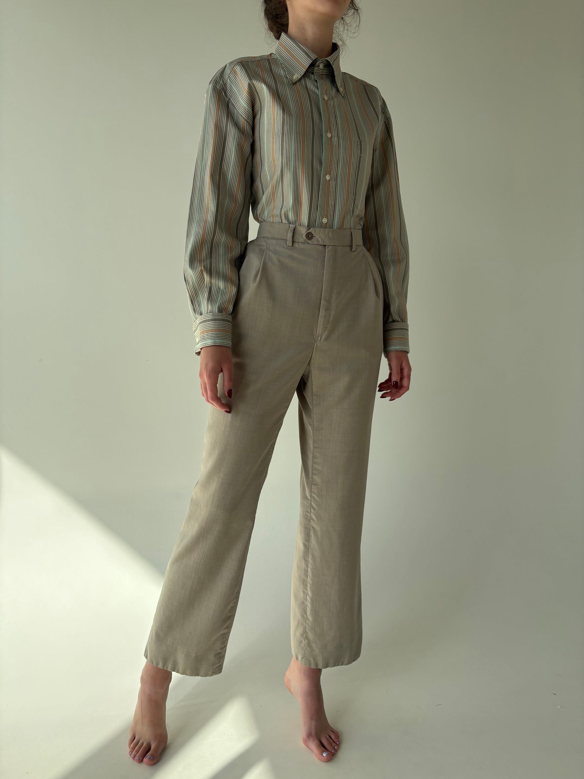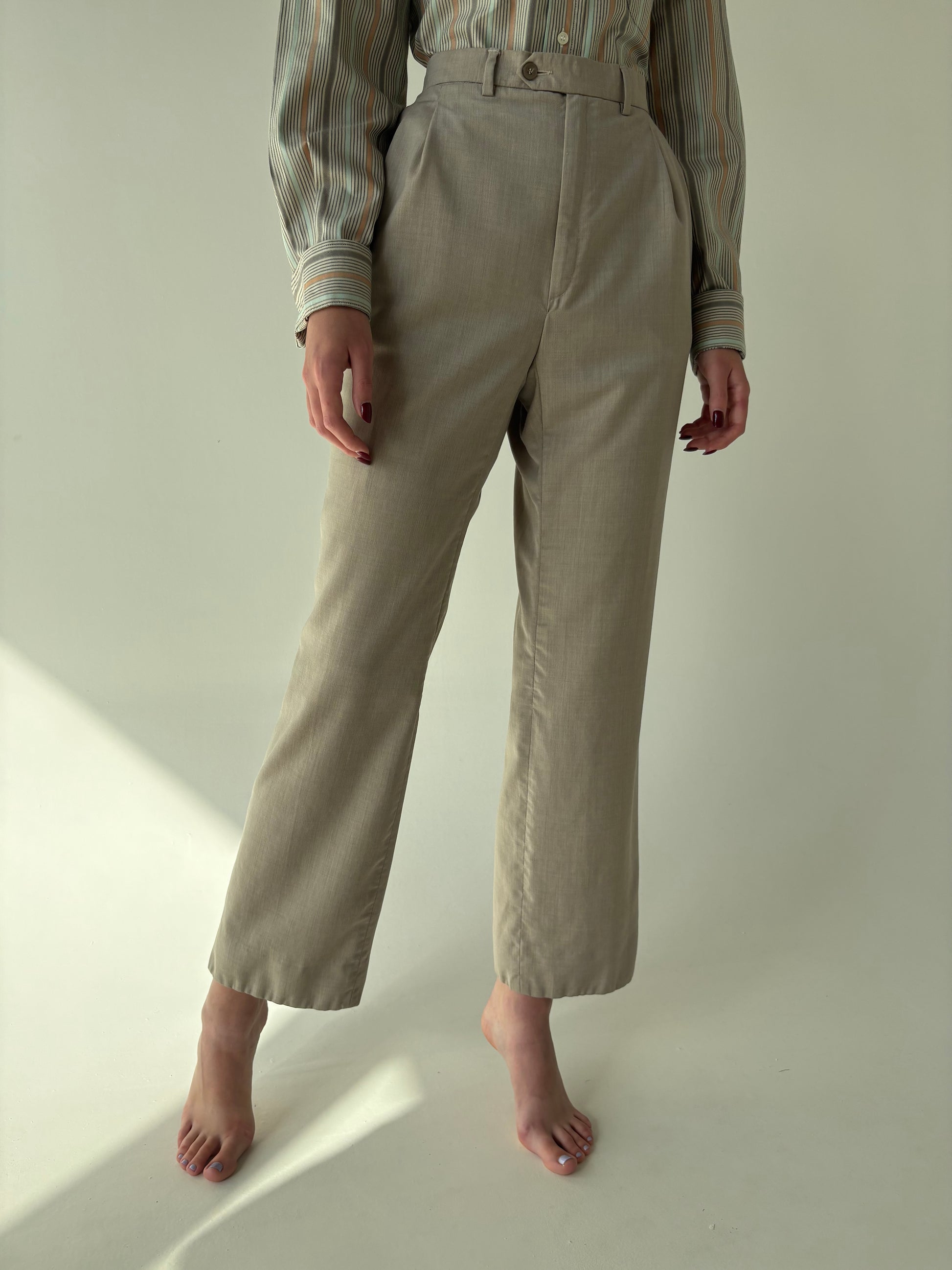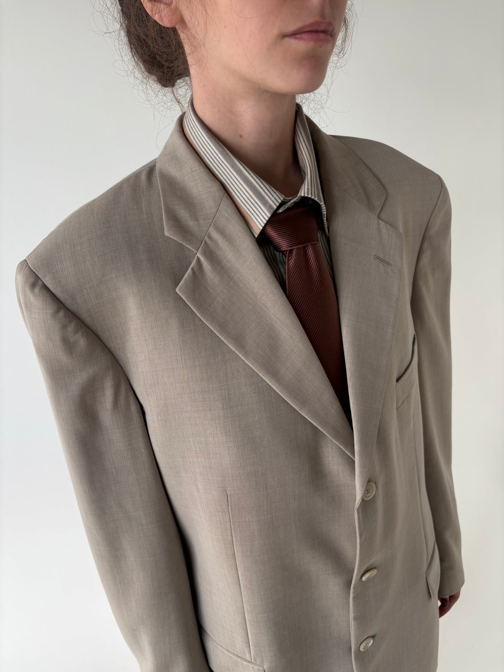 Costum light nude din lana extrafina în croi actual și pantaloni cu pense