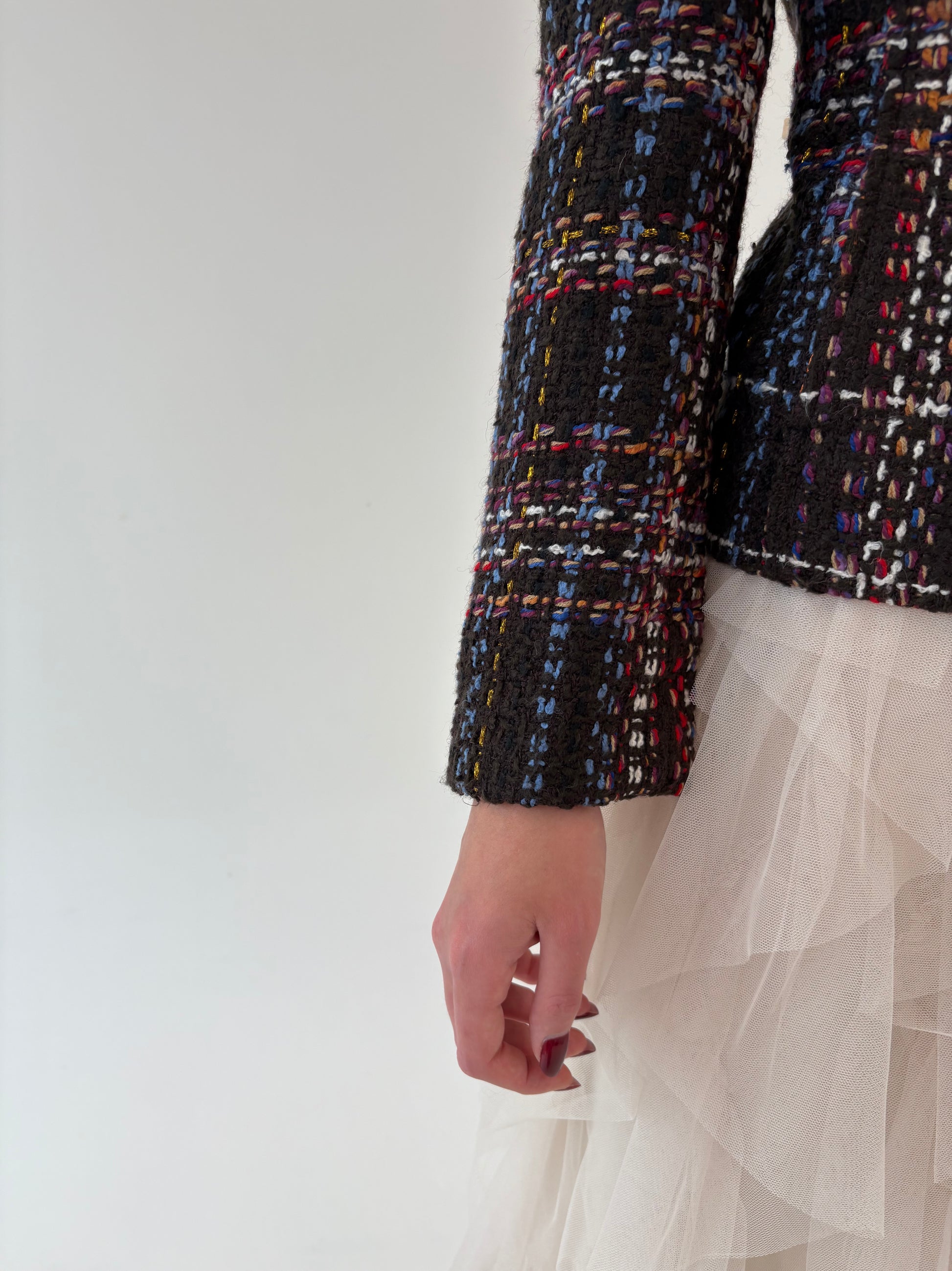 Sacou ușor cambrat în stil Chanel cu închidere dublă din tweed chocolate brown