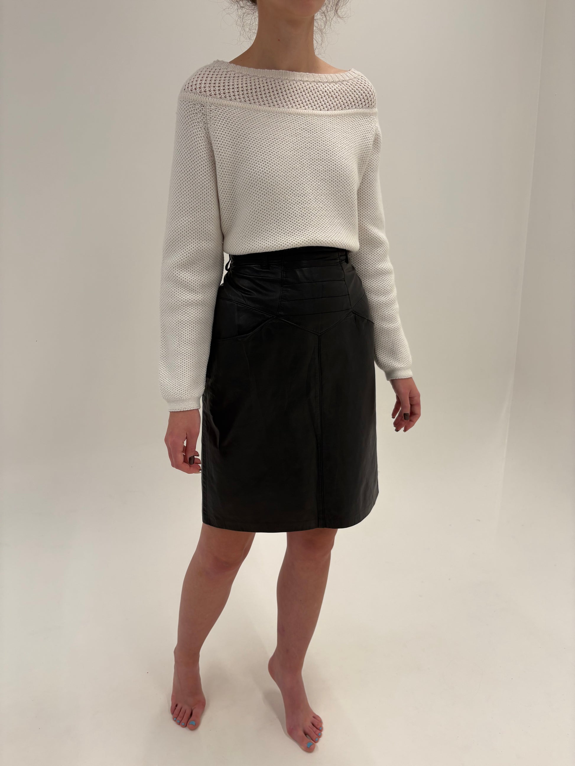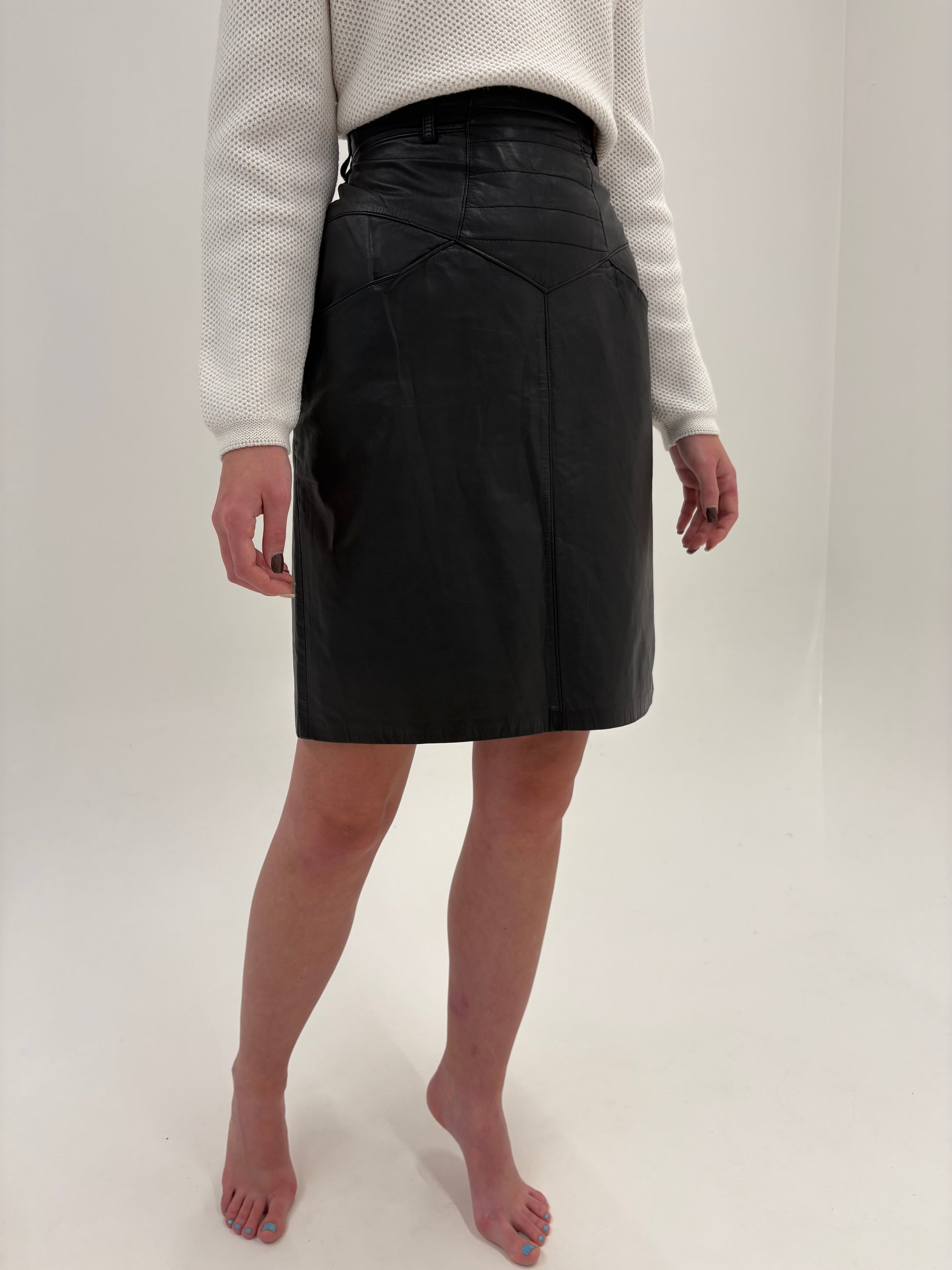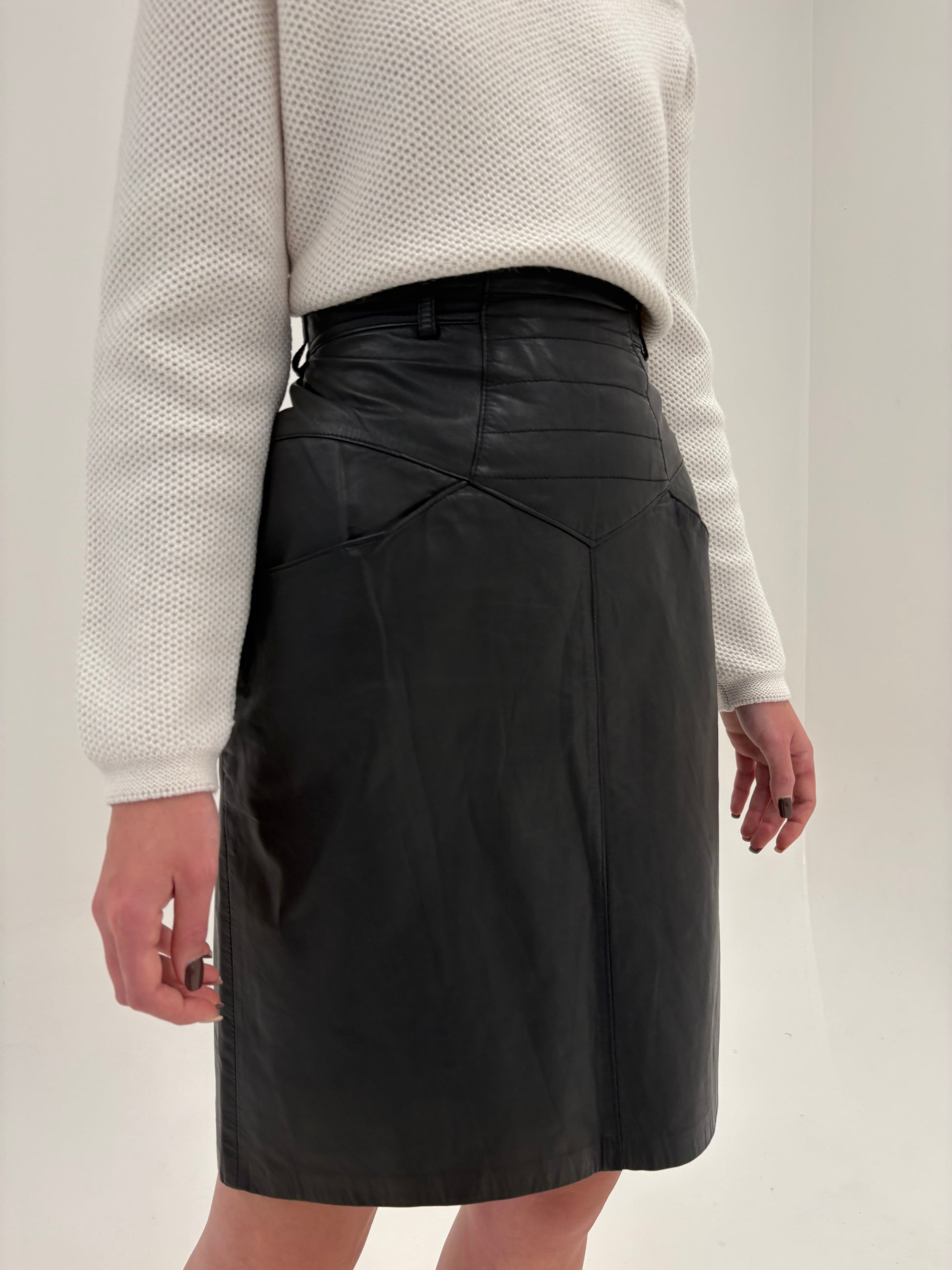 Fustă din piele naturală super moale cu talie intră marcată înaltă