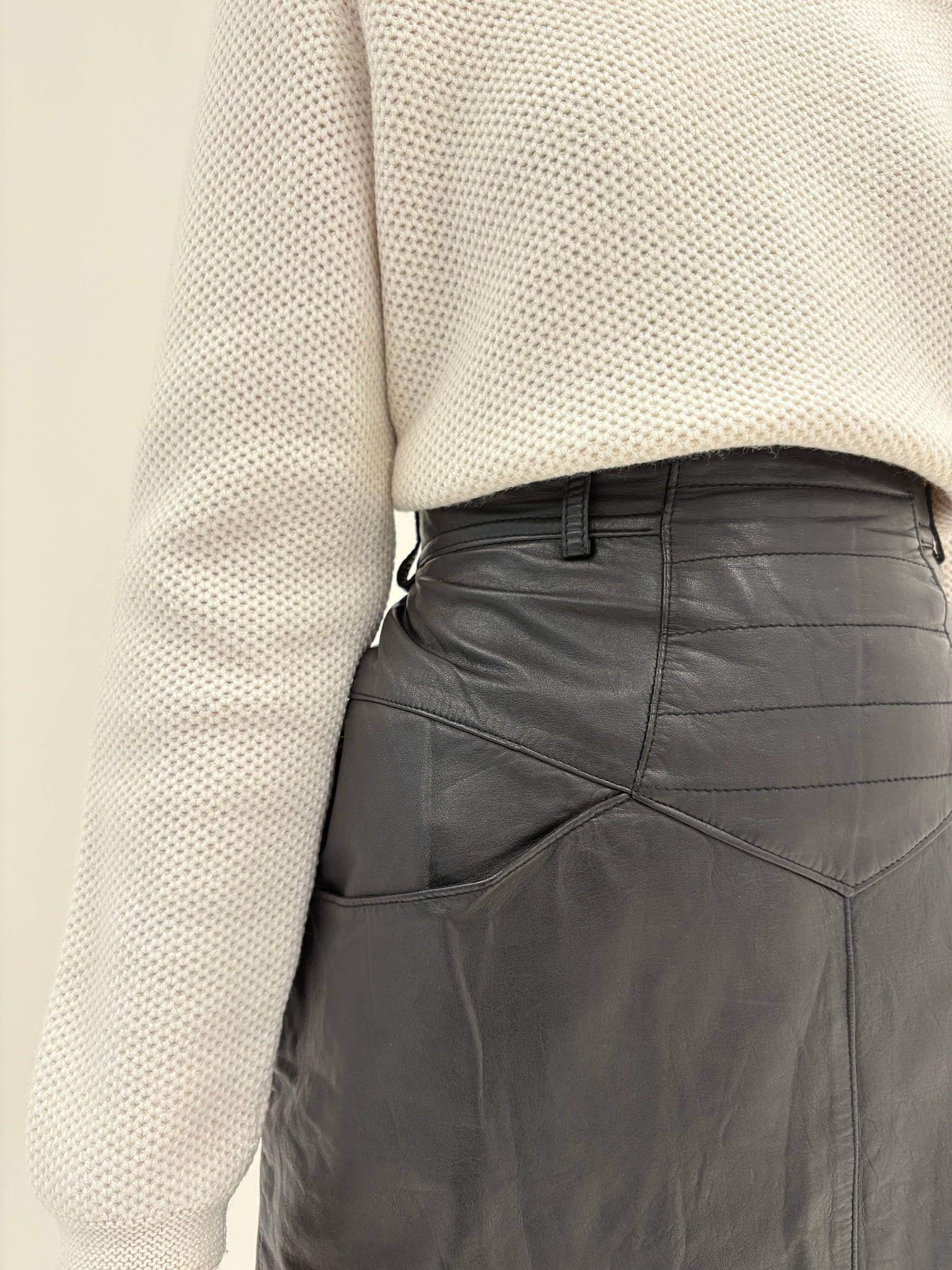 Piele super moale și buzunare oblice, împreună cu platca accentuează talia superb