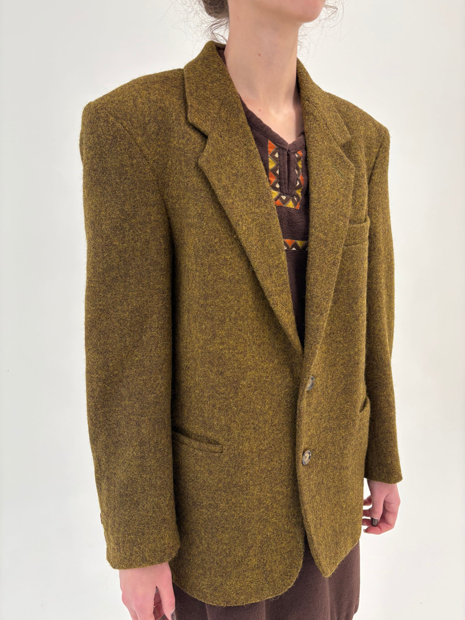Sacou high end italian din tweed de lana mustard green
