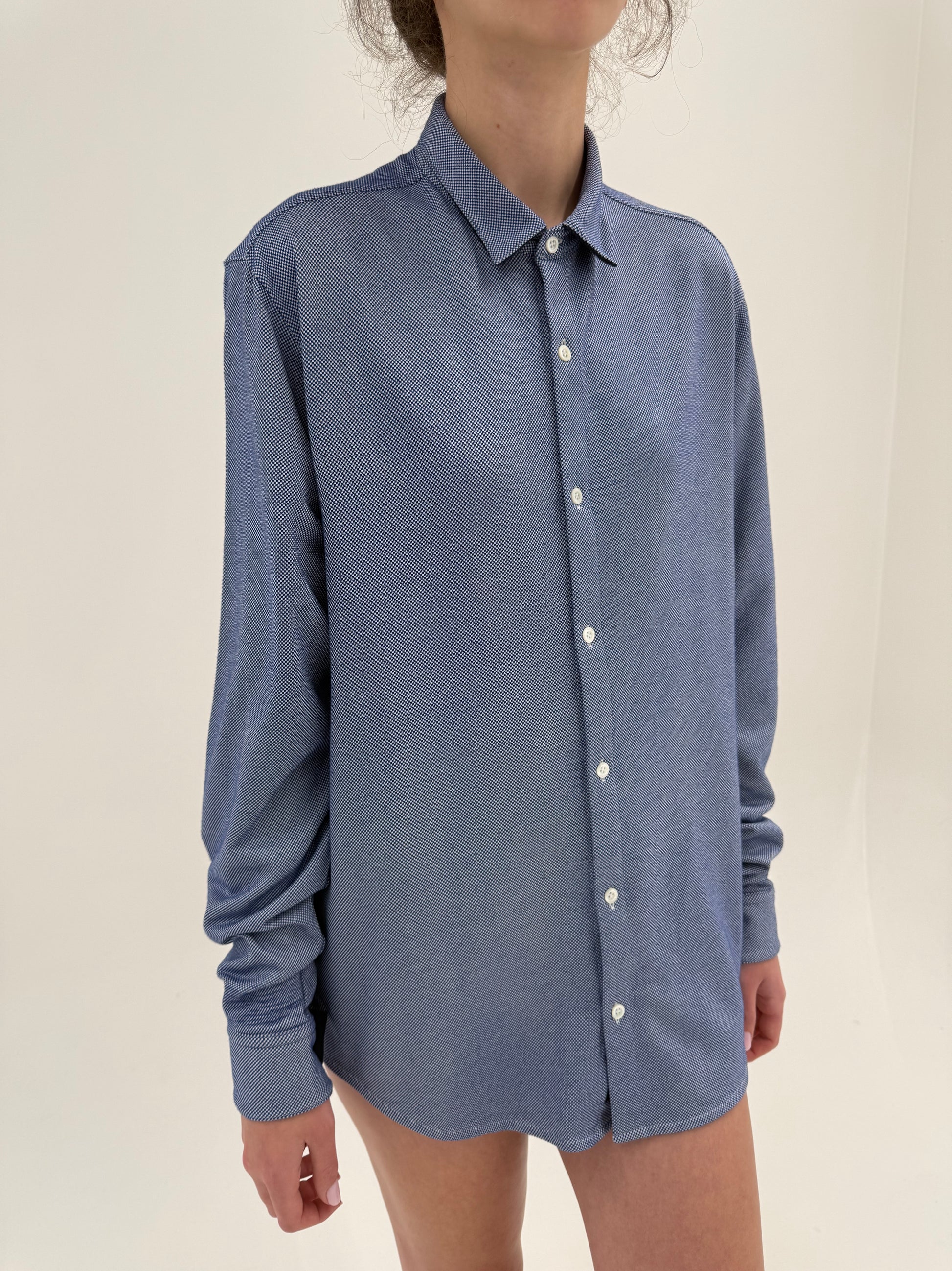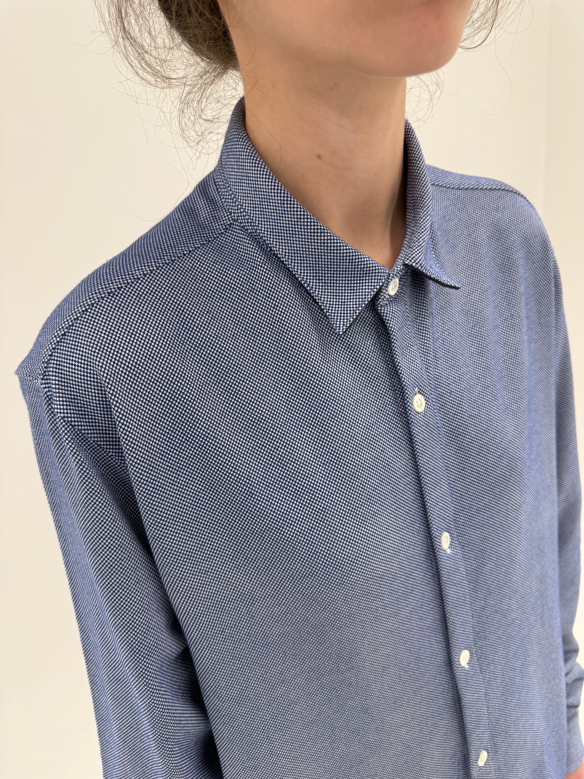 Cămașa jeans Blue Armani din poplin gros texturat ușor strech