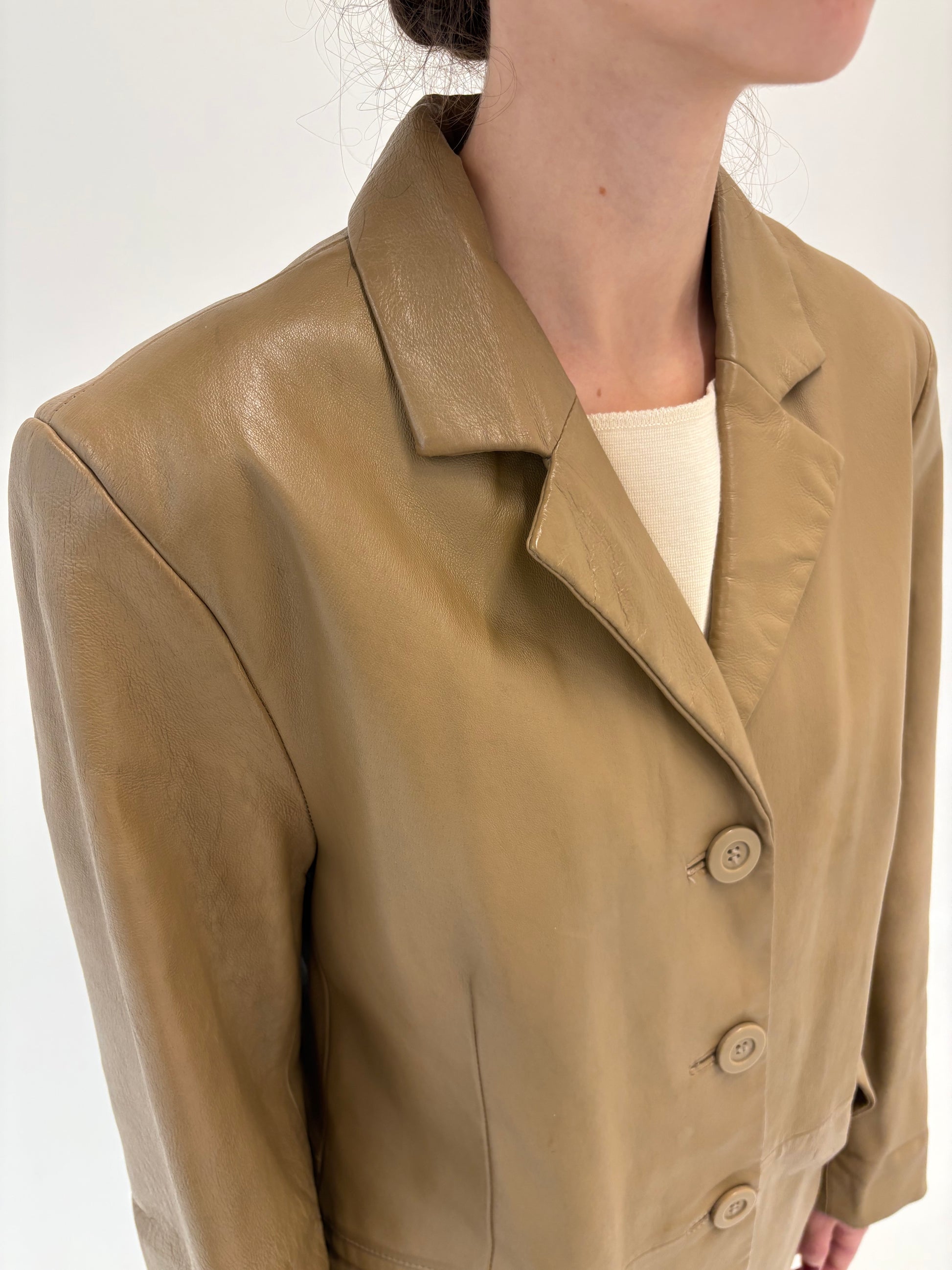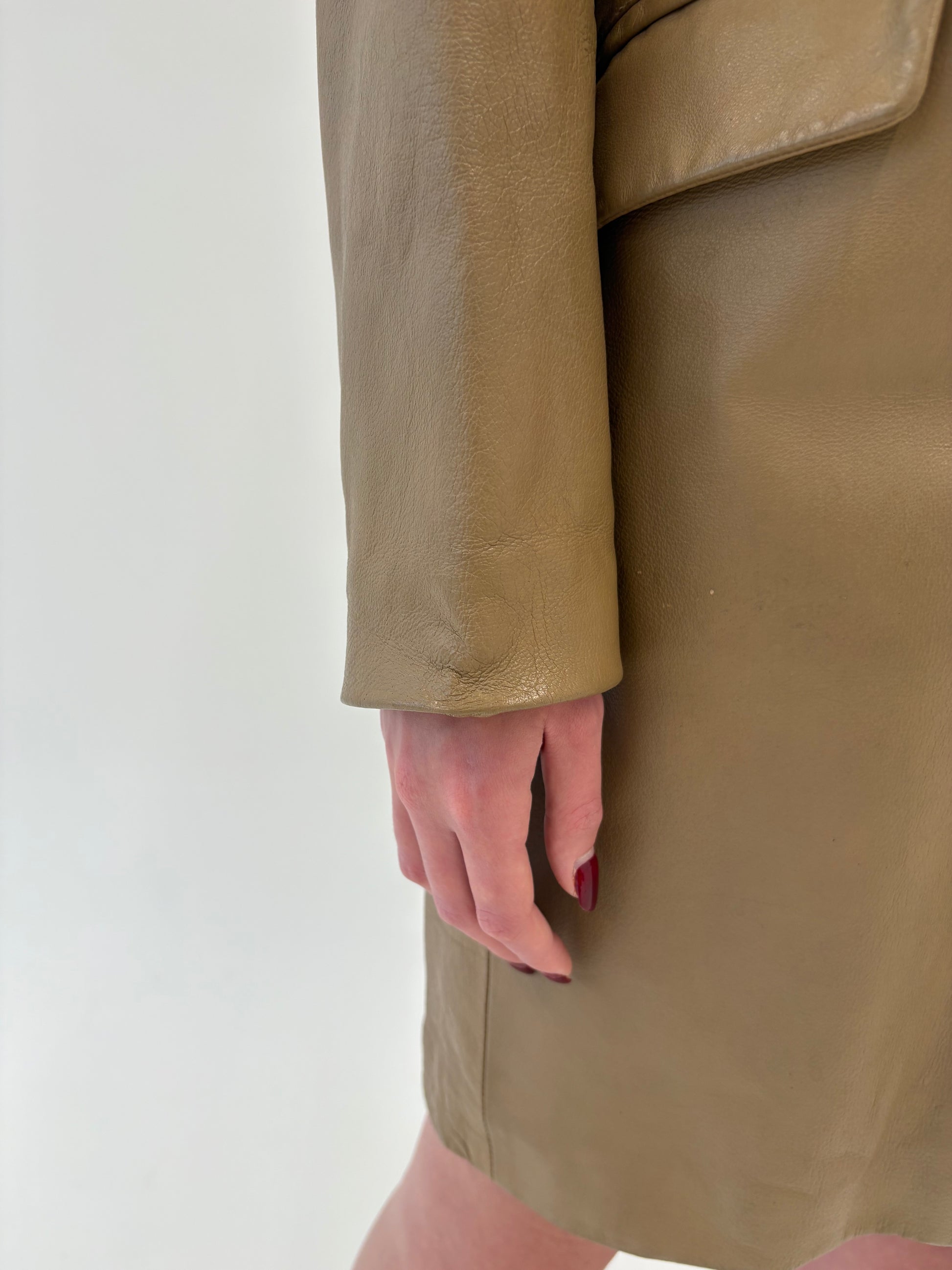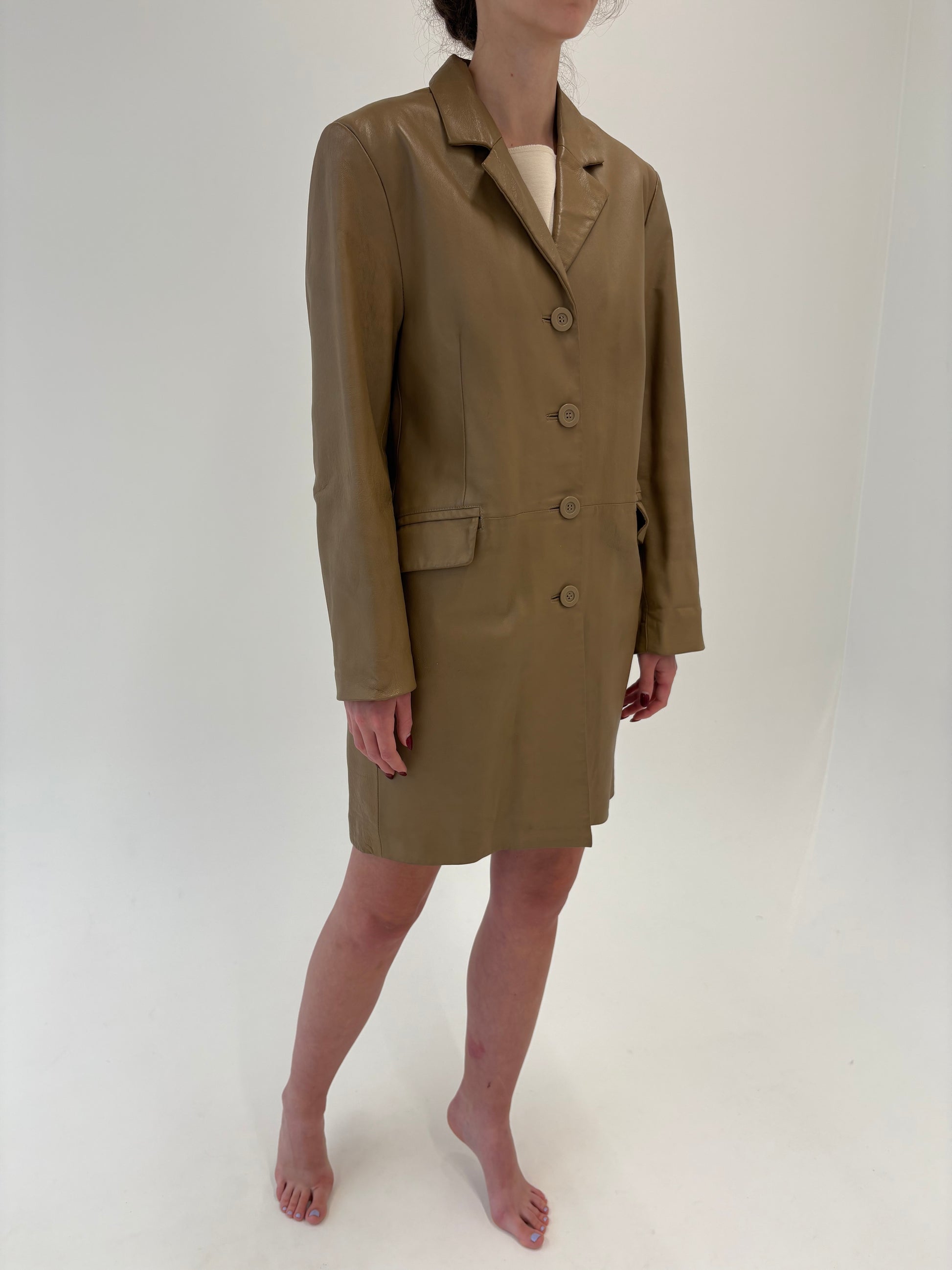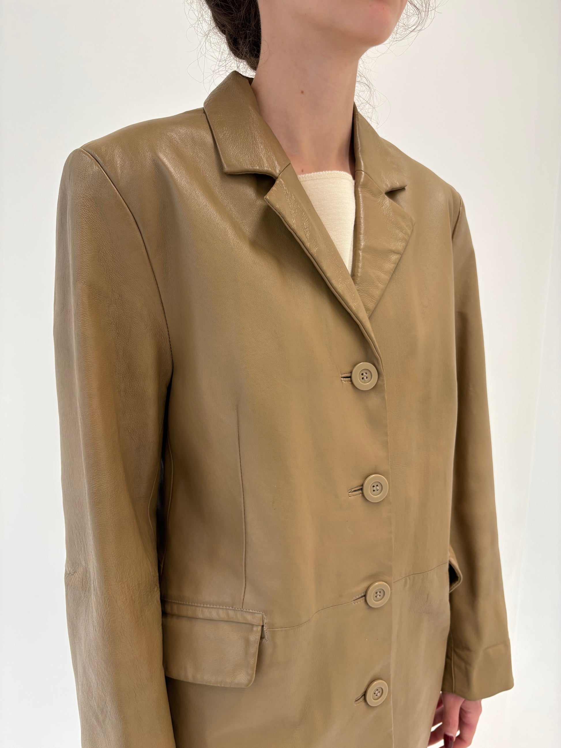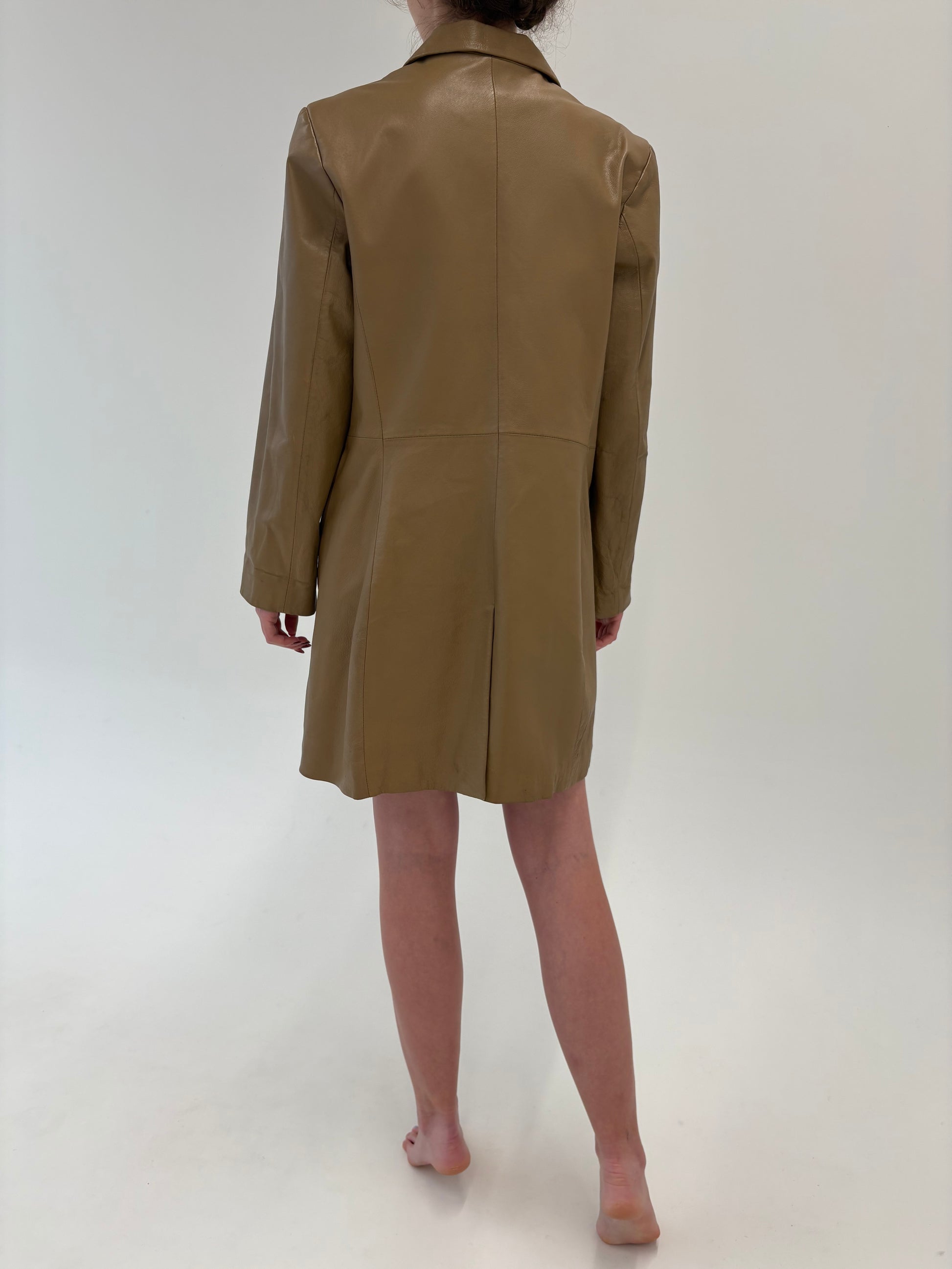 Pardesiu italian camel din piele naturală plină în croi clasic