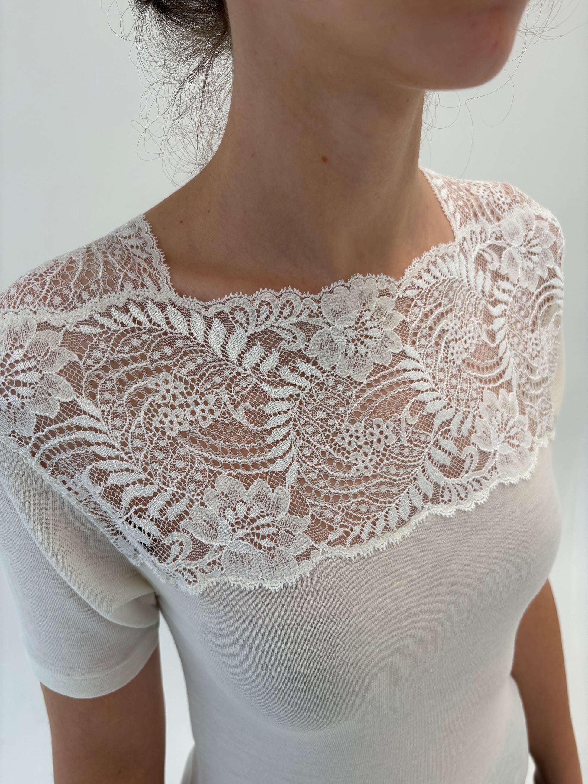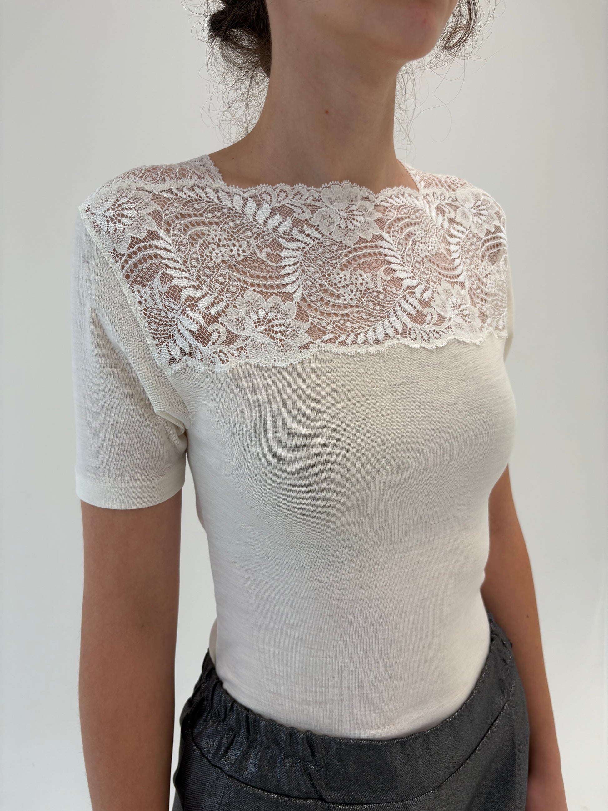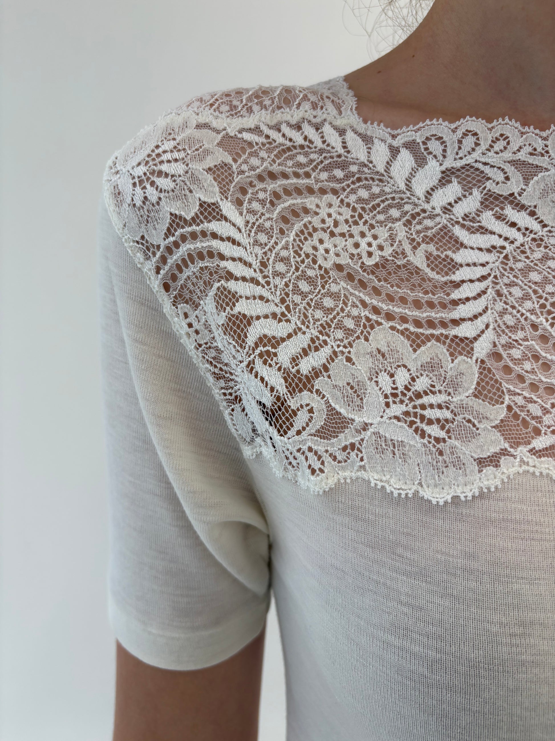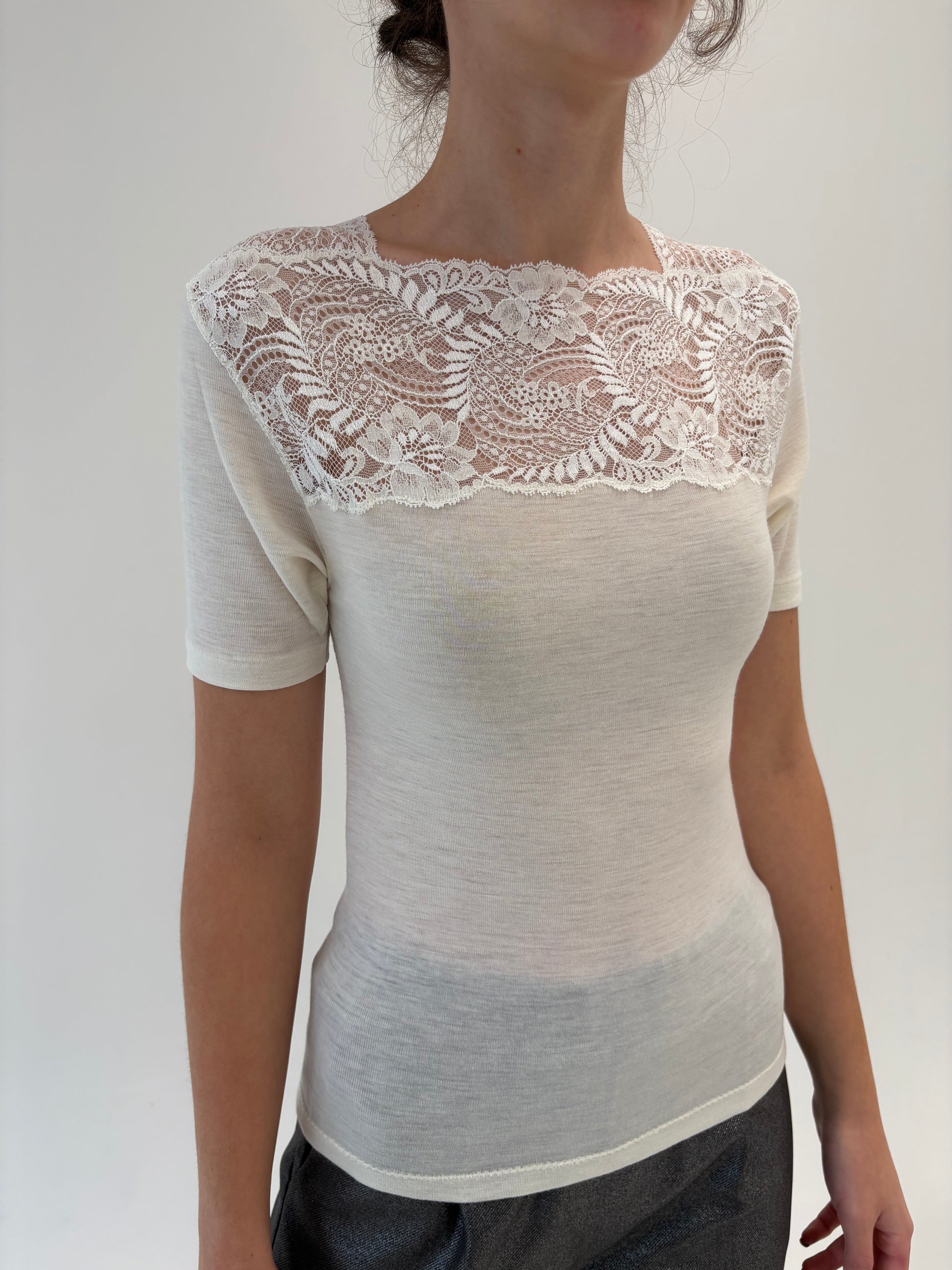 Top italian nou cu etichetă din lana pura extrafina certificată și dantelă