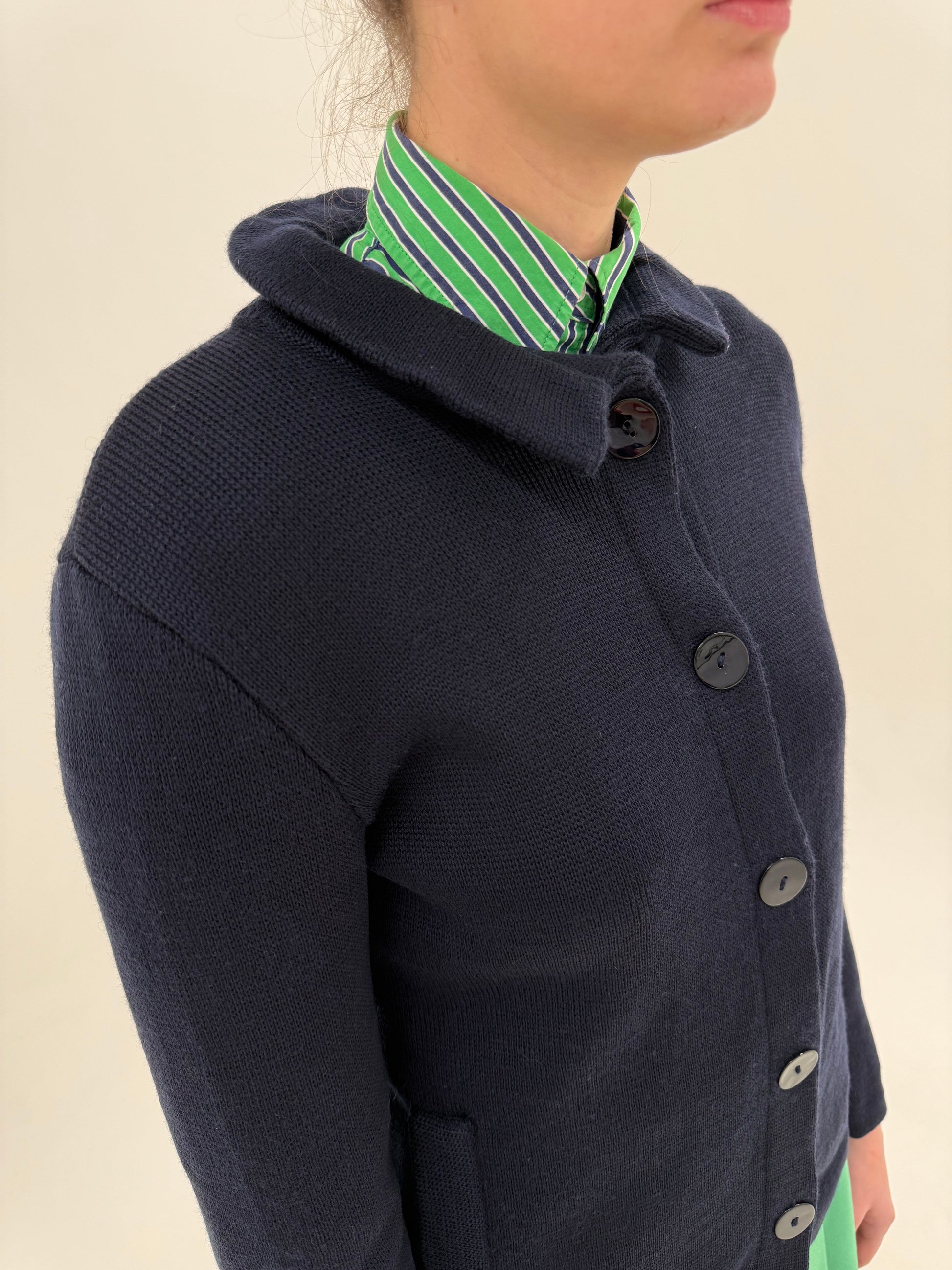 Jacheta din tricot de lana extrafina densa cu guleraș