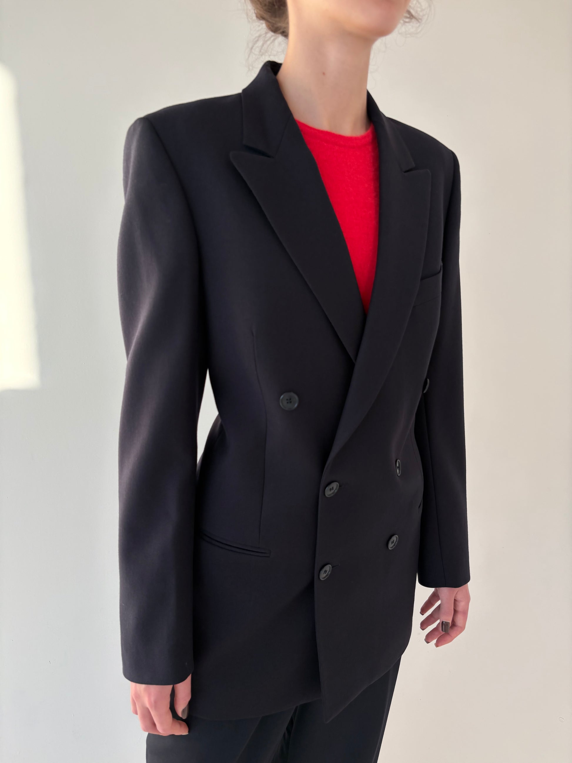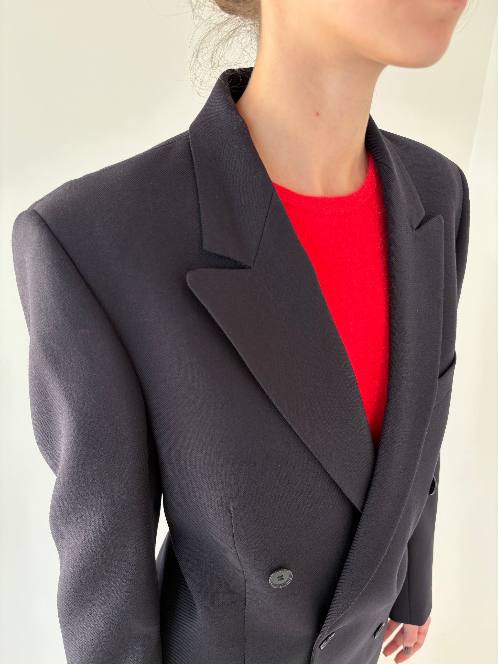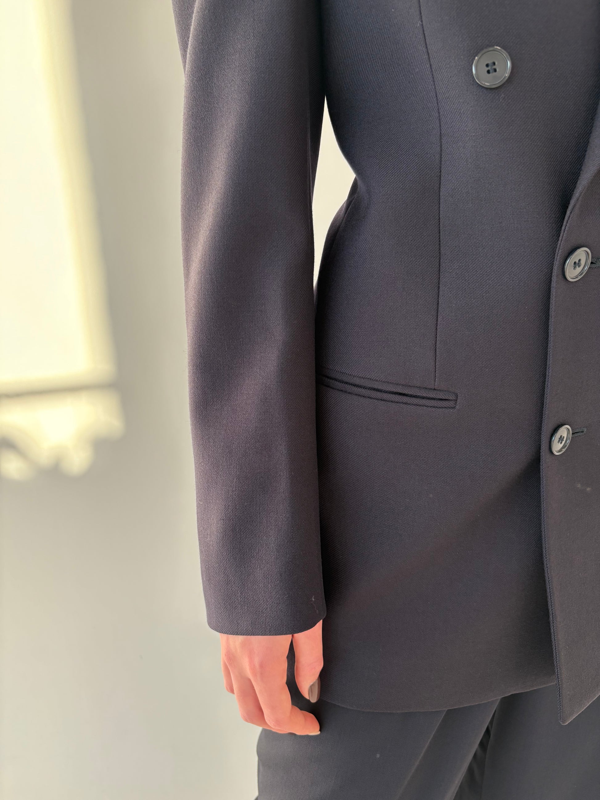 Sacou structurat în stil Prada din lana extrafina cu închidere dublă