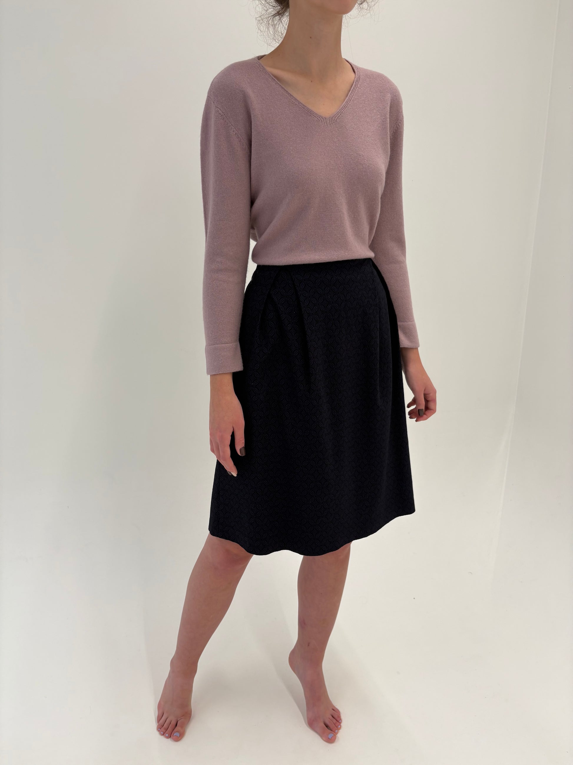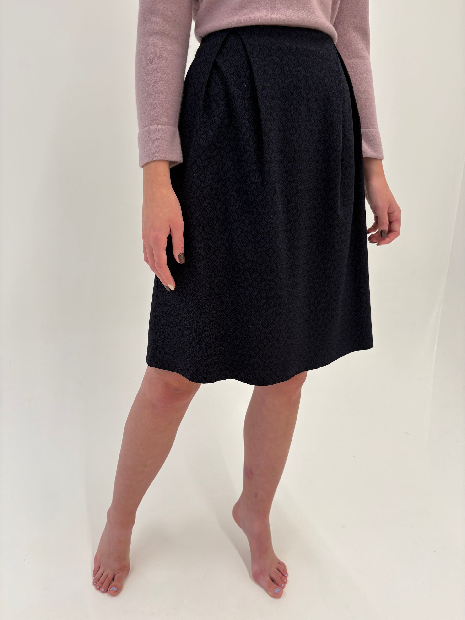 Fustă de la zi la seară din brocart de lana extrafina Navy cu negru