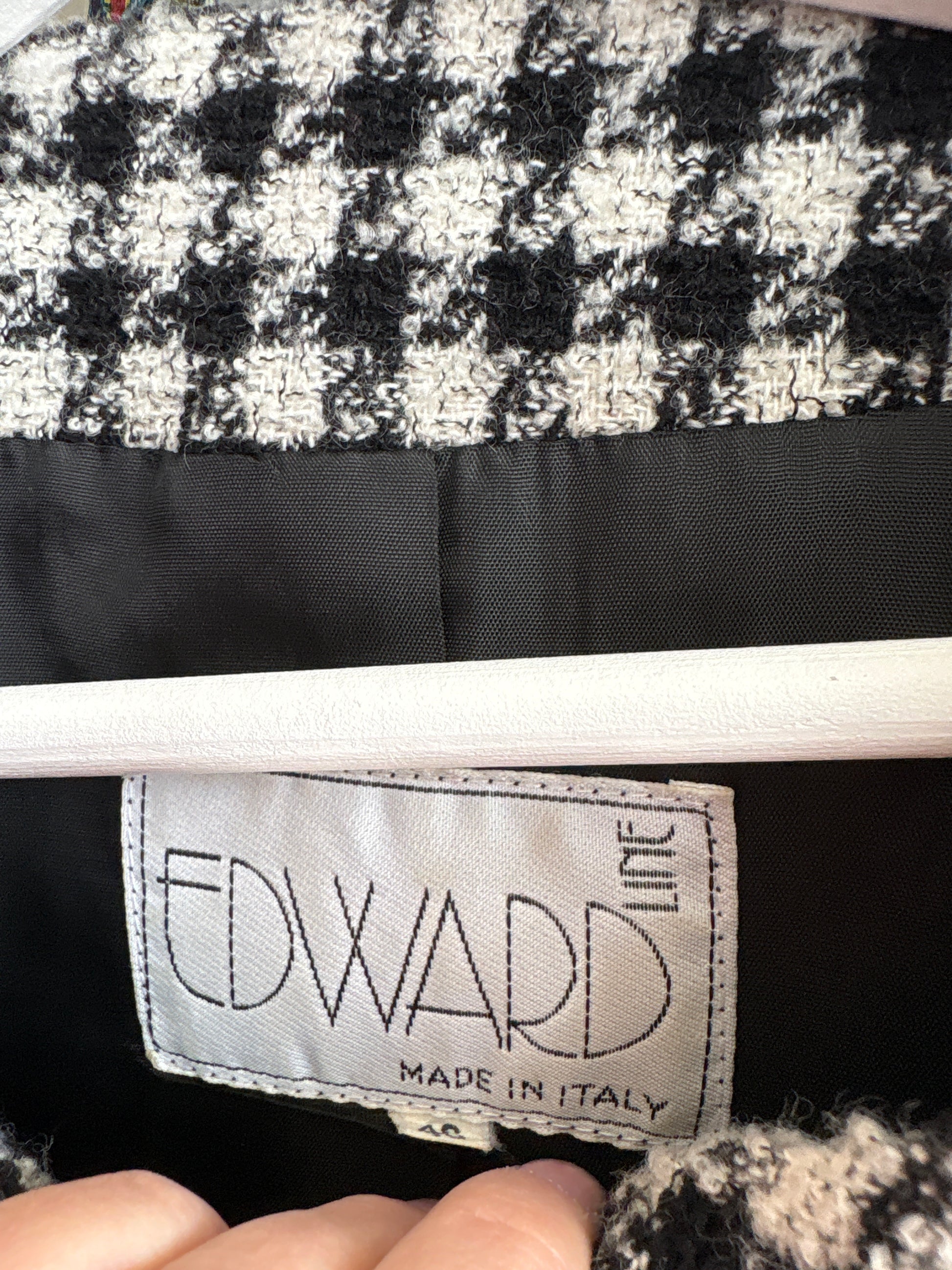 Imbraca mult mai bine mărimea reală , tweed pied de coq alb cu negru și nasturi bijuterie