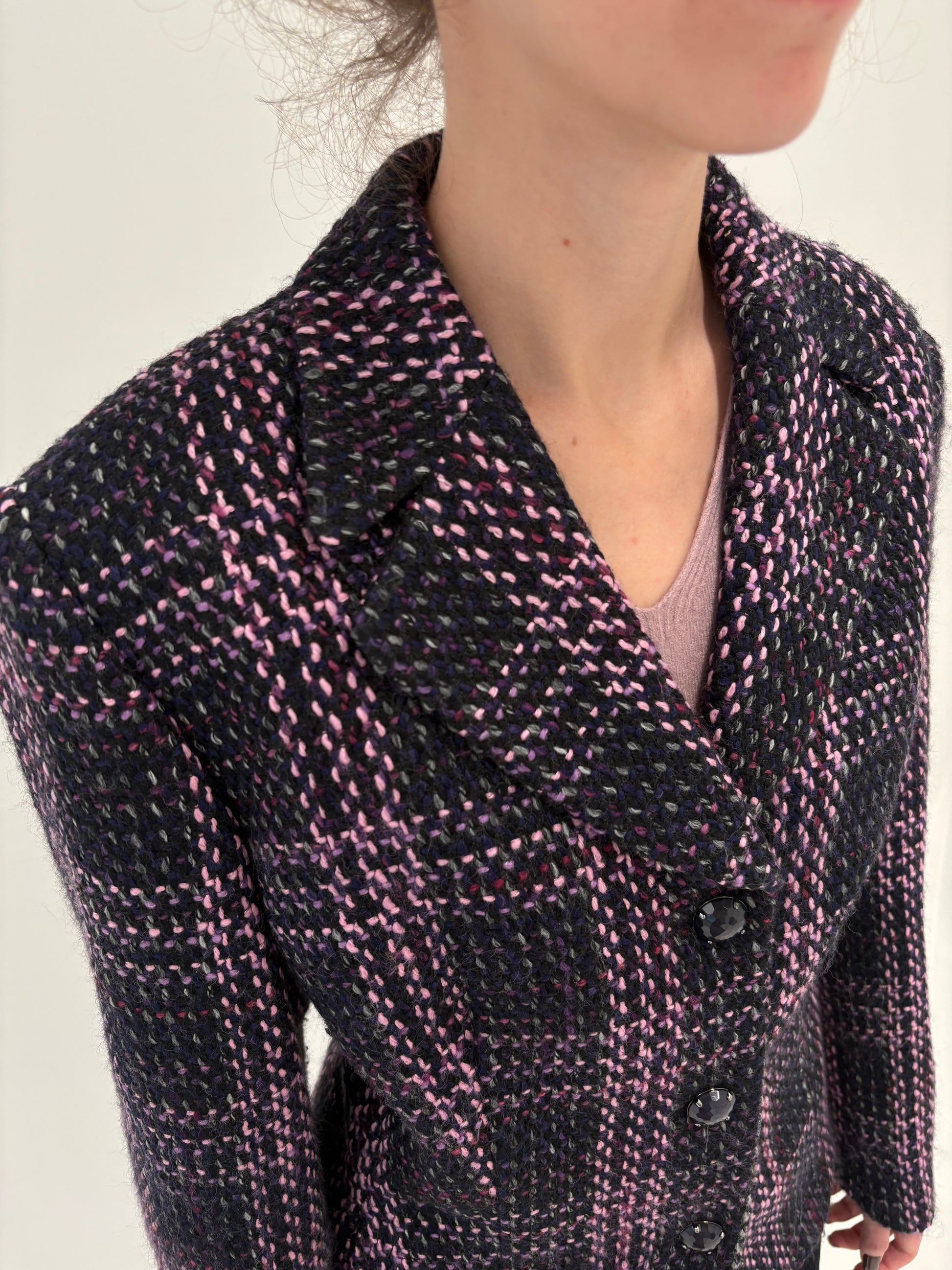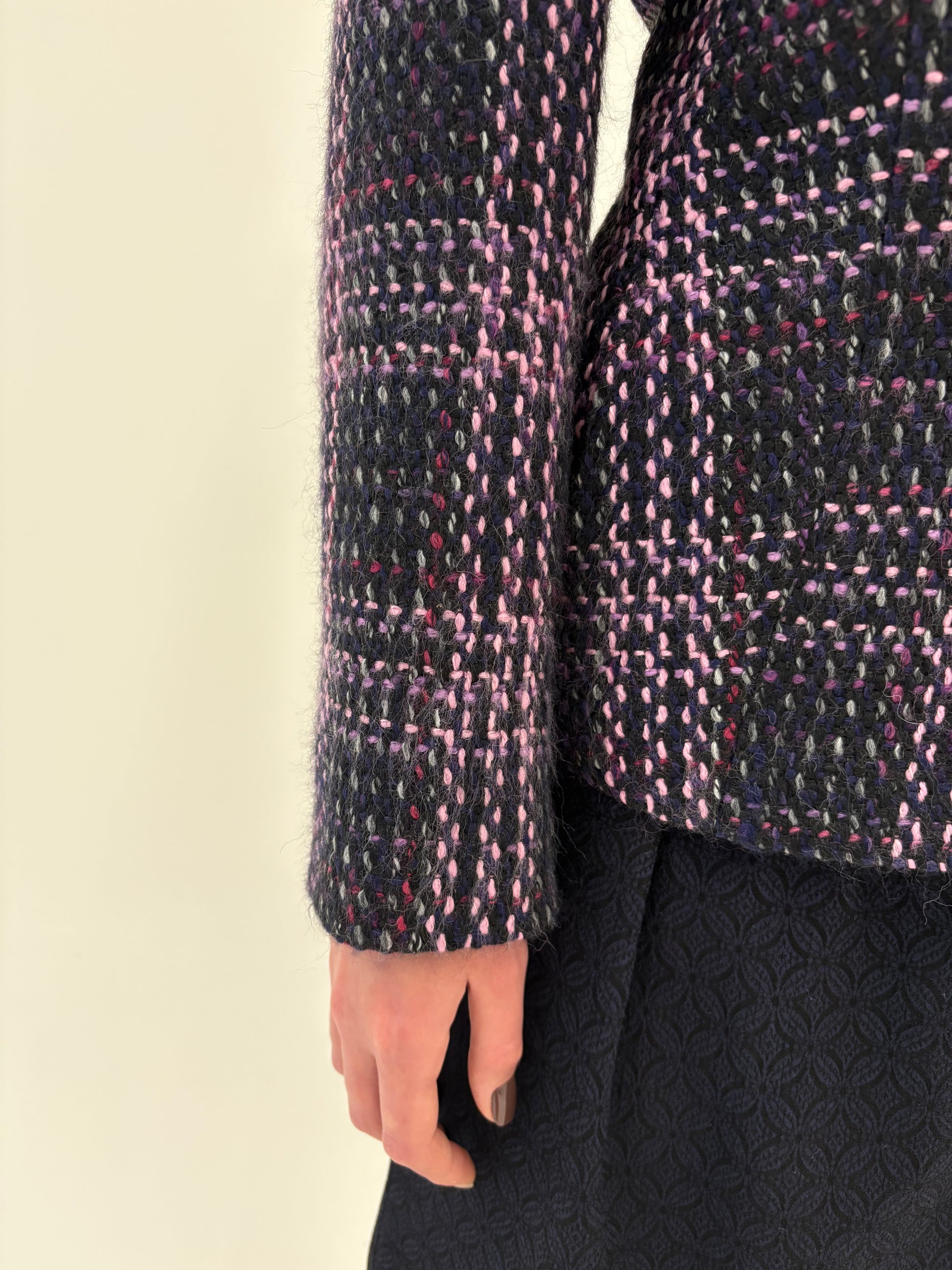 Sacou din tweed în stil Chanel în nuanțe superbe de mov și lavandă
