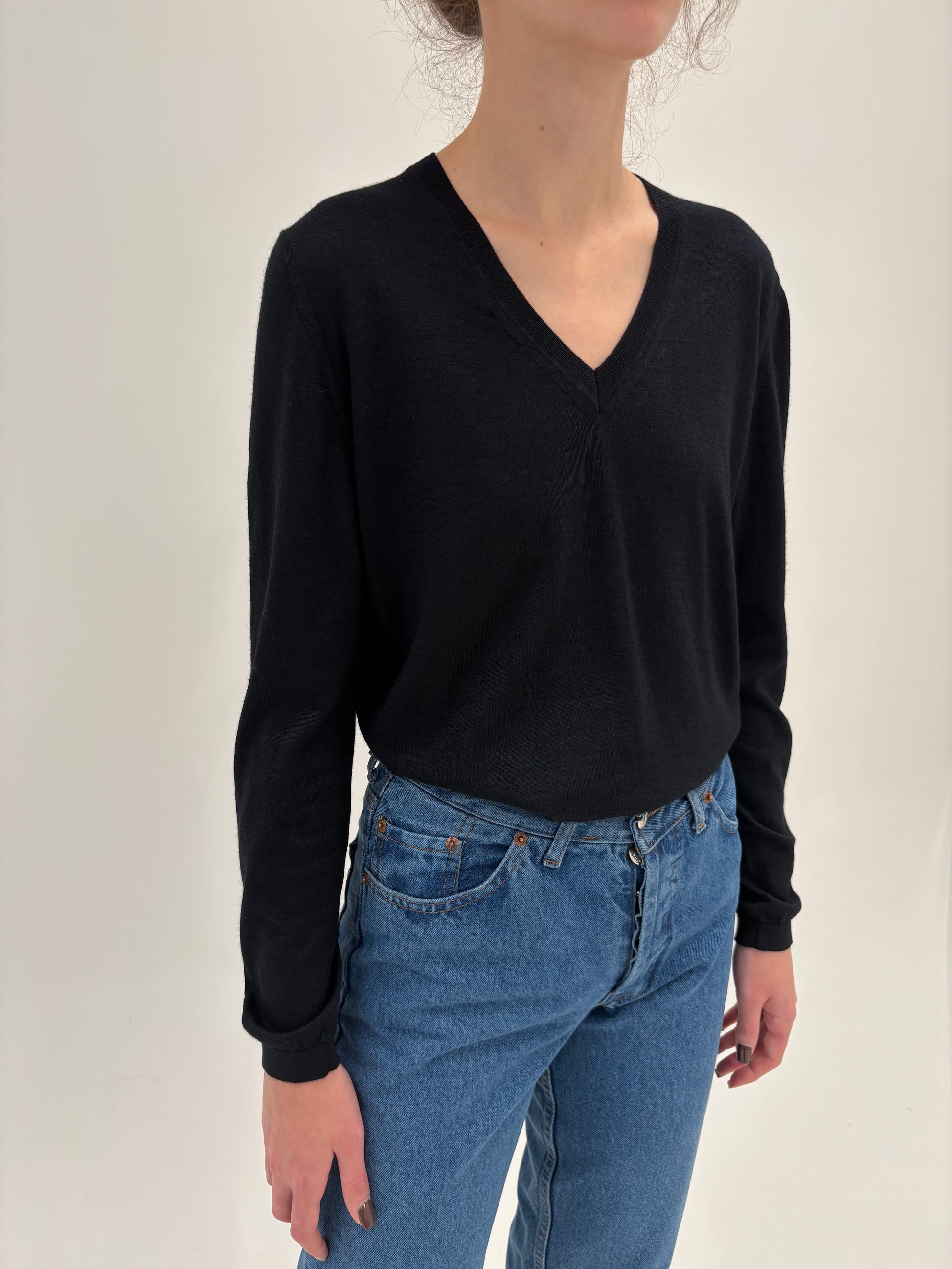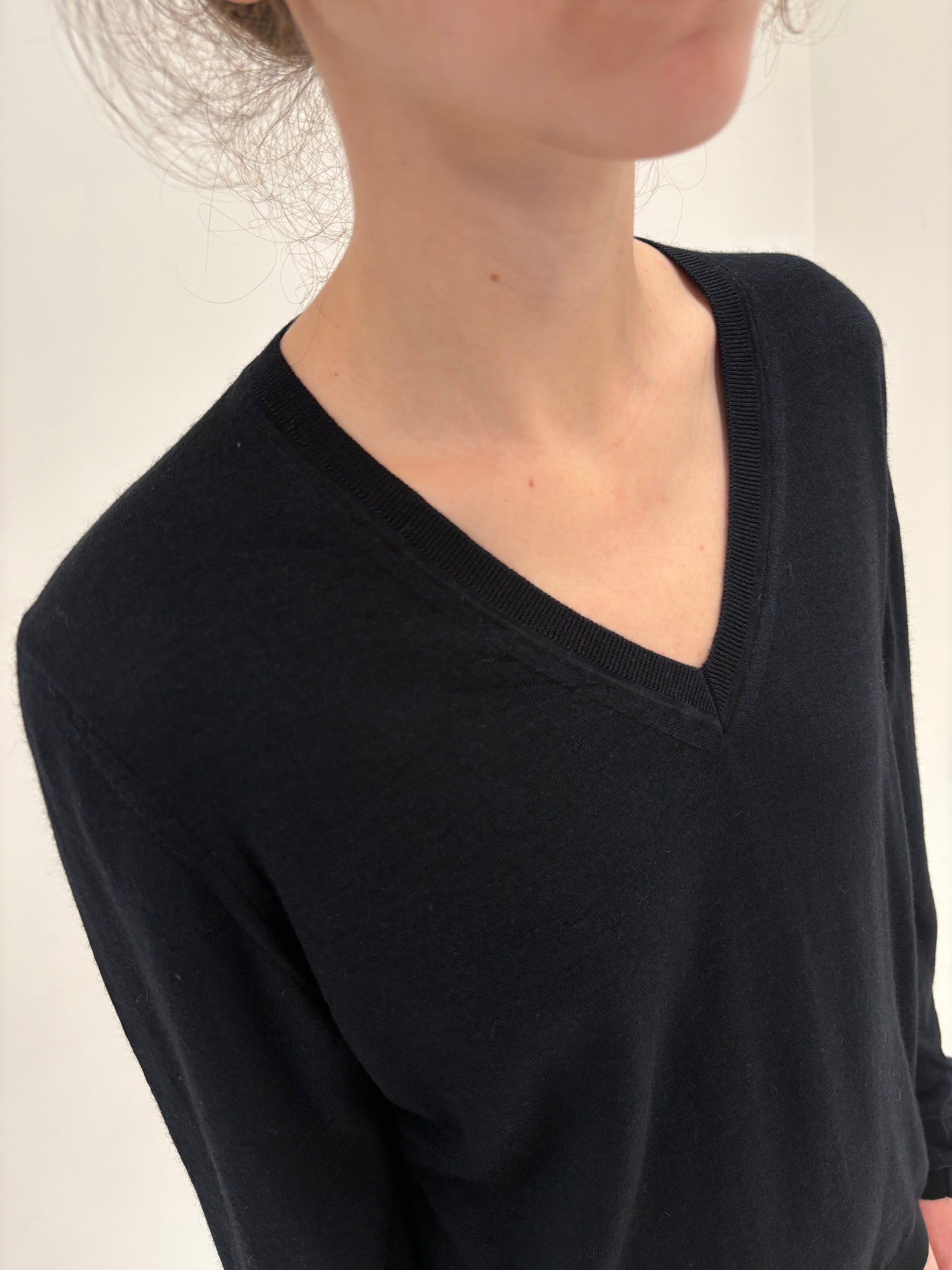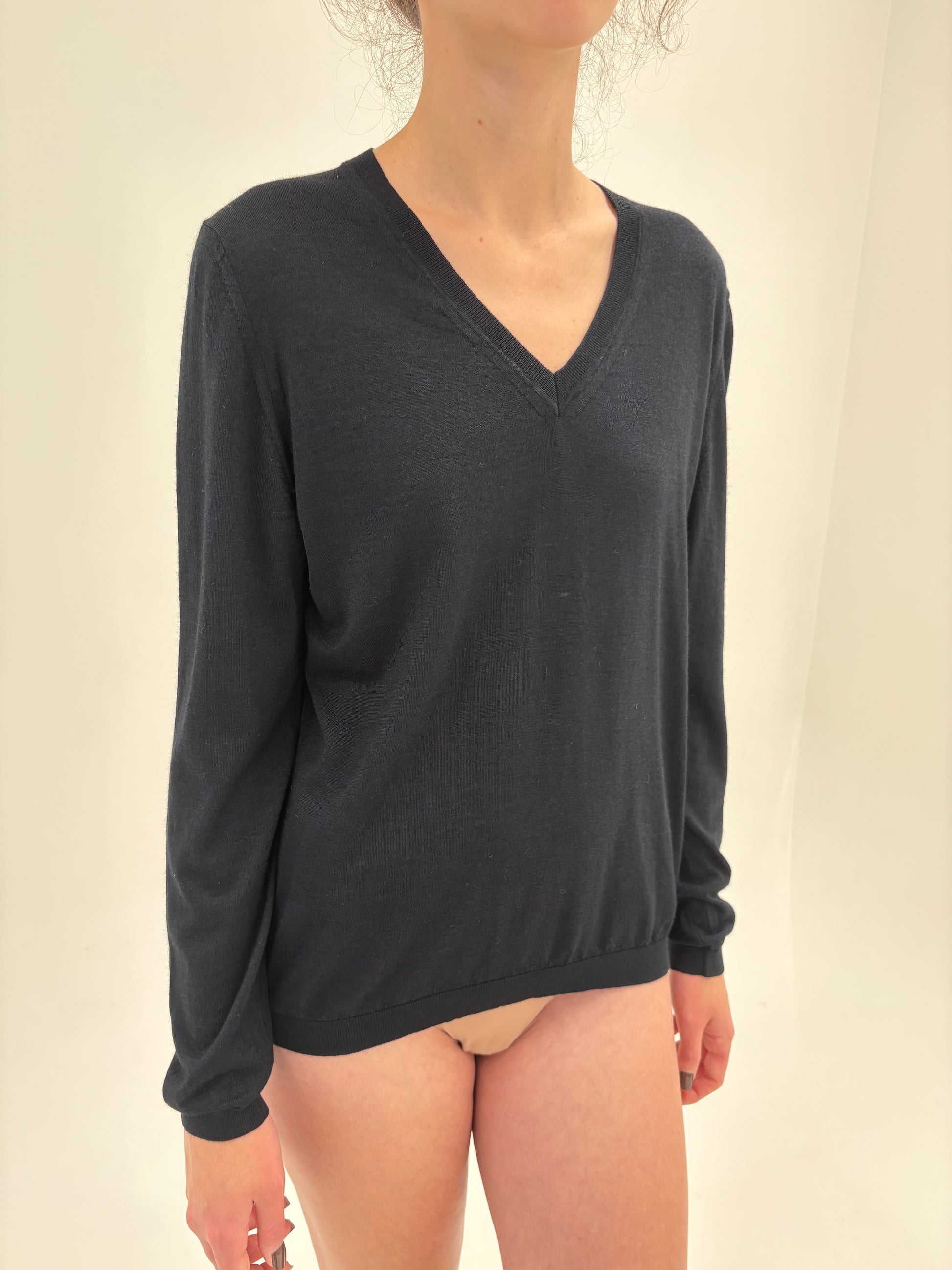 Pulover negru de brand din cașmir și mătase naturală