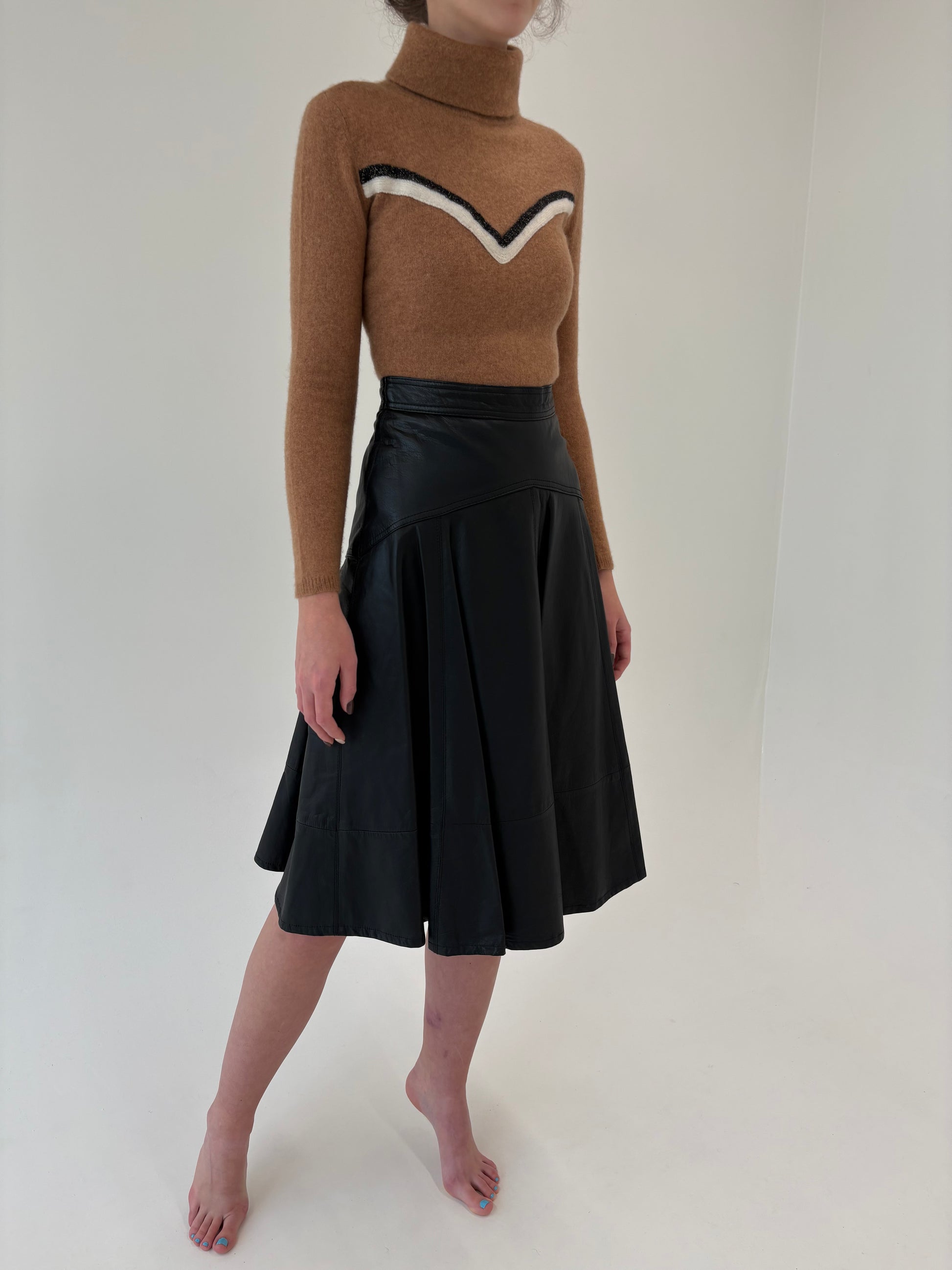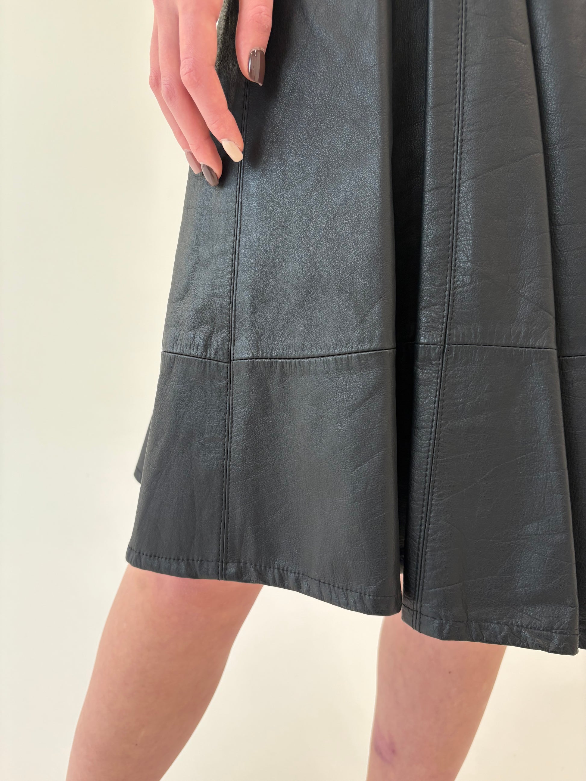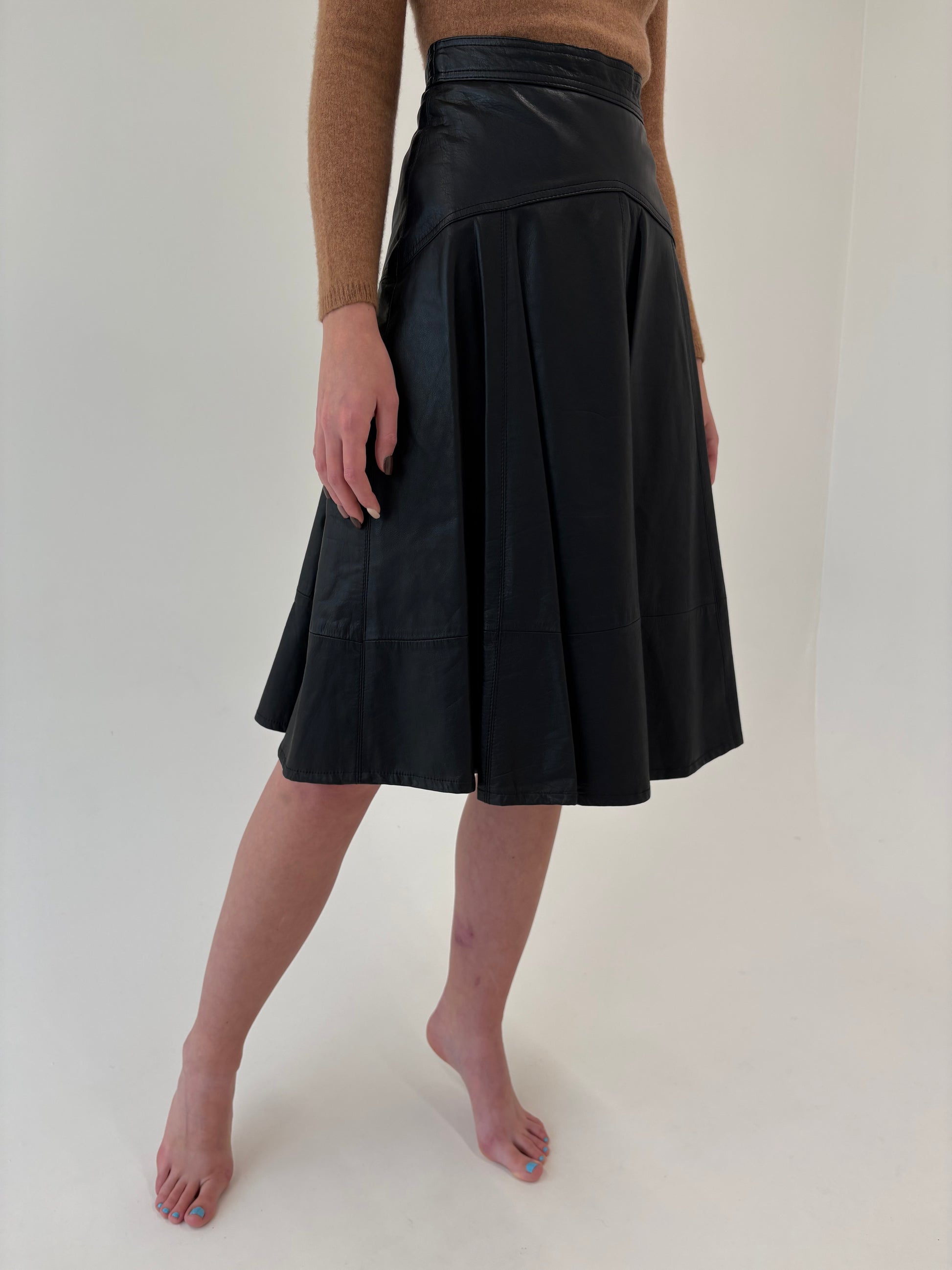 Fustă cu talie ultra înaltă marcată în croi amplu din piele naturală moale