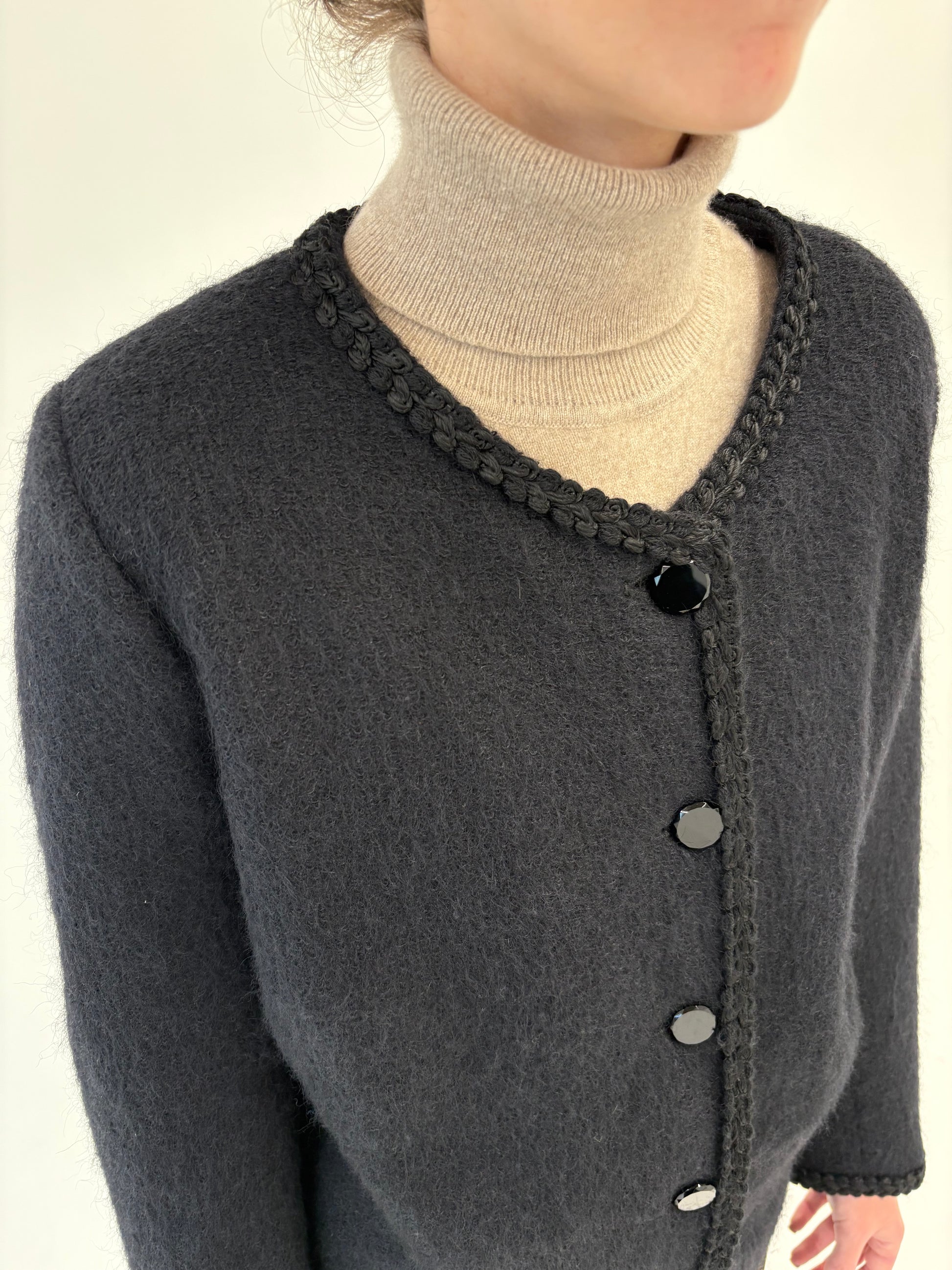 Sacou negru în stil Chanel de designer din baby mohair excepțional