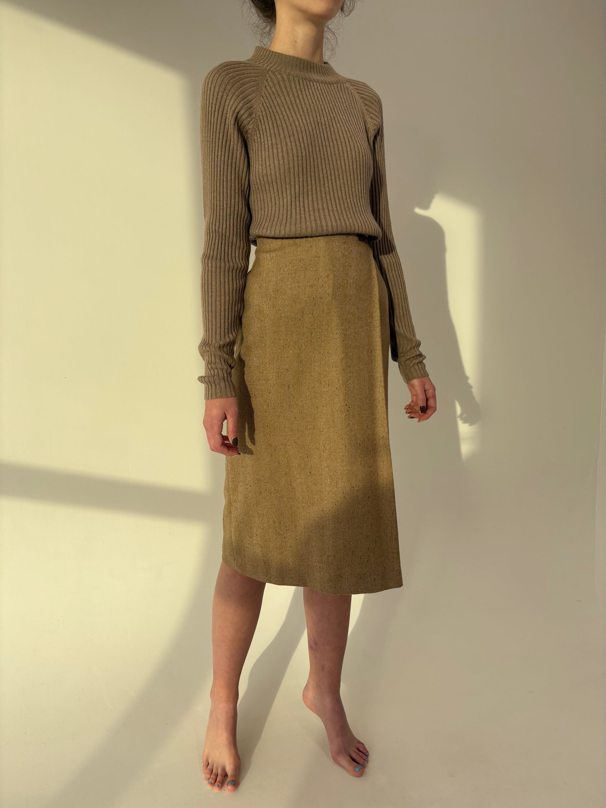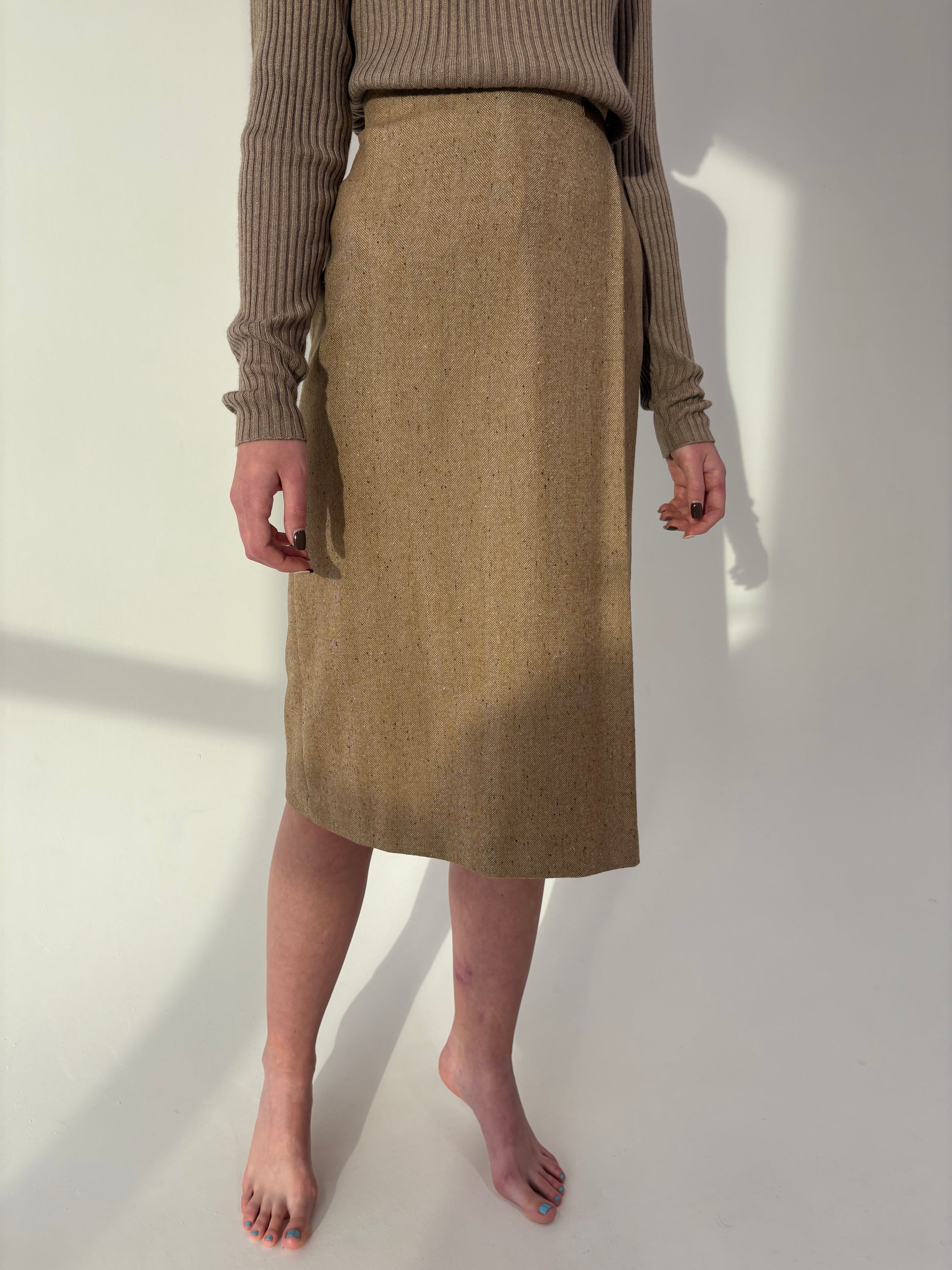 Fustă Camel de brand high end italian din stofă plină Chevron excepțională