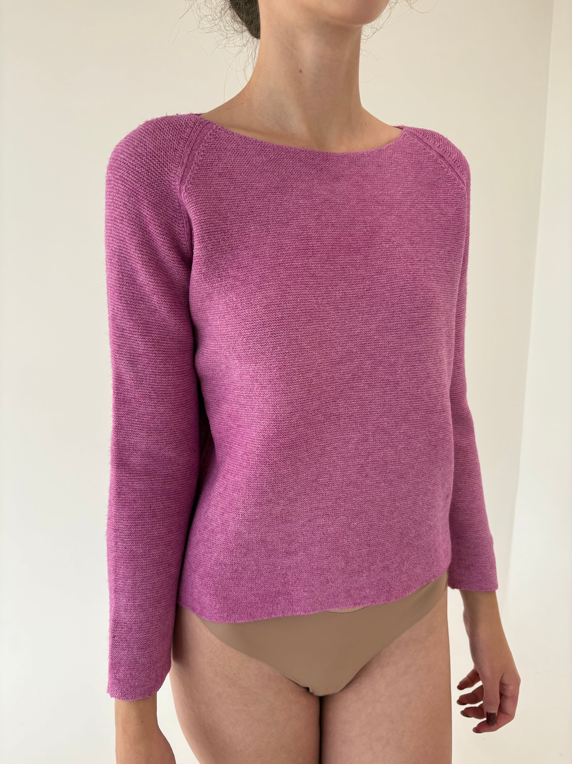 Pulover petite rosebud pink din lana merino extrafina de gramaj mare