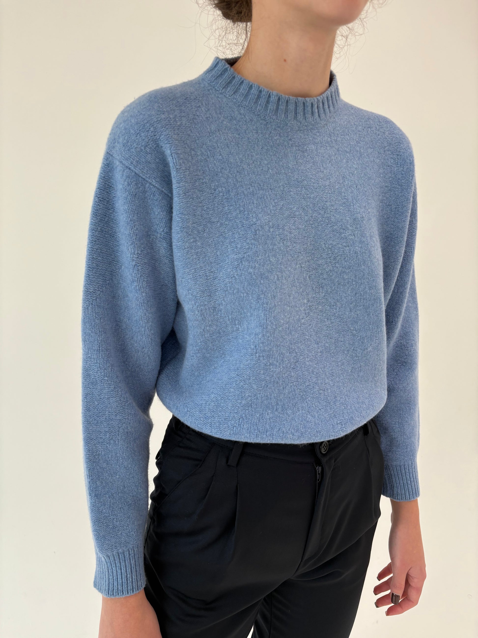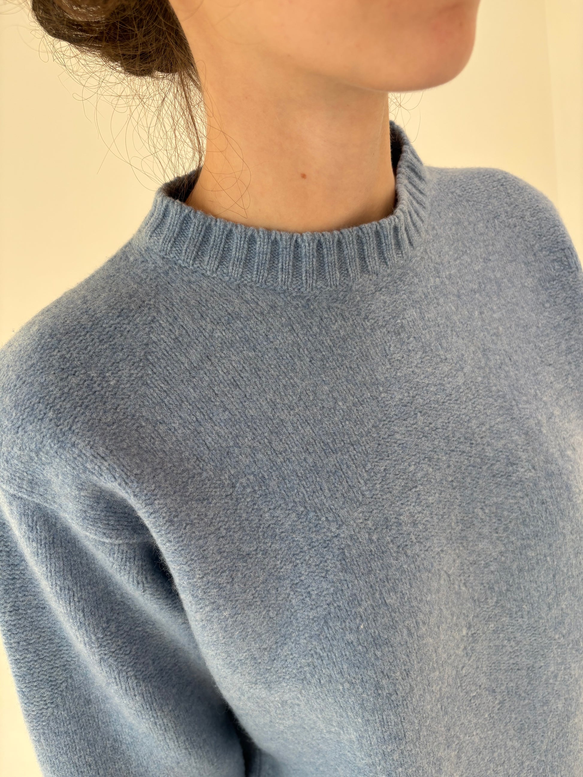 Pulover gros baby blue petite din cașmir și lana extrafina de gramaj mare