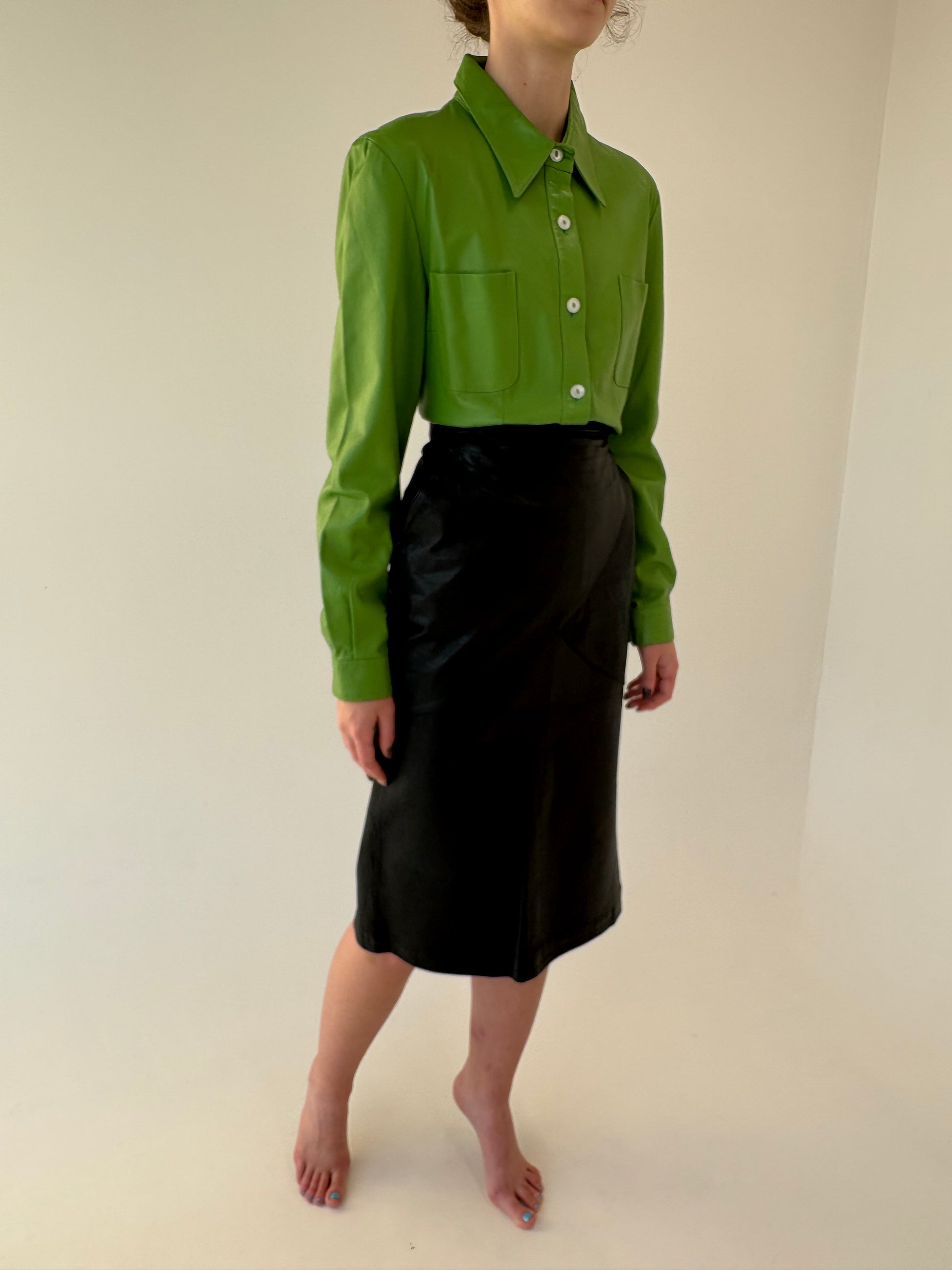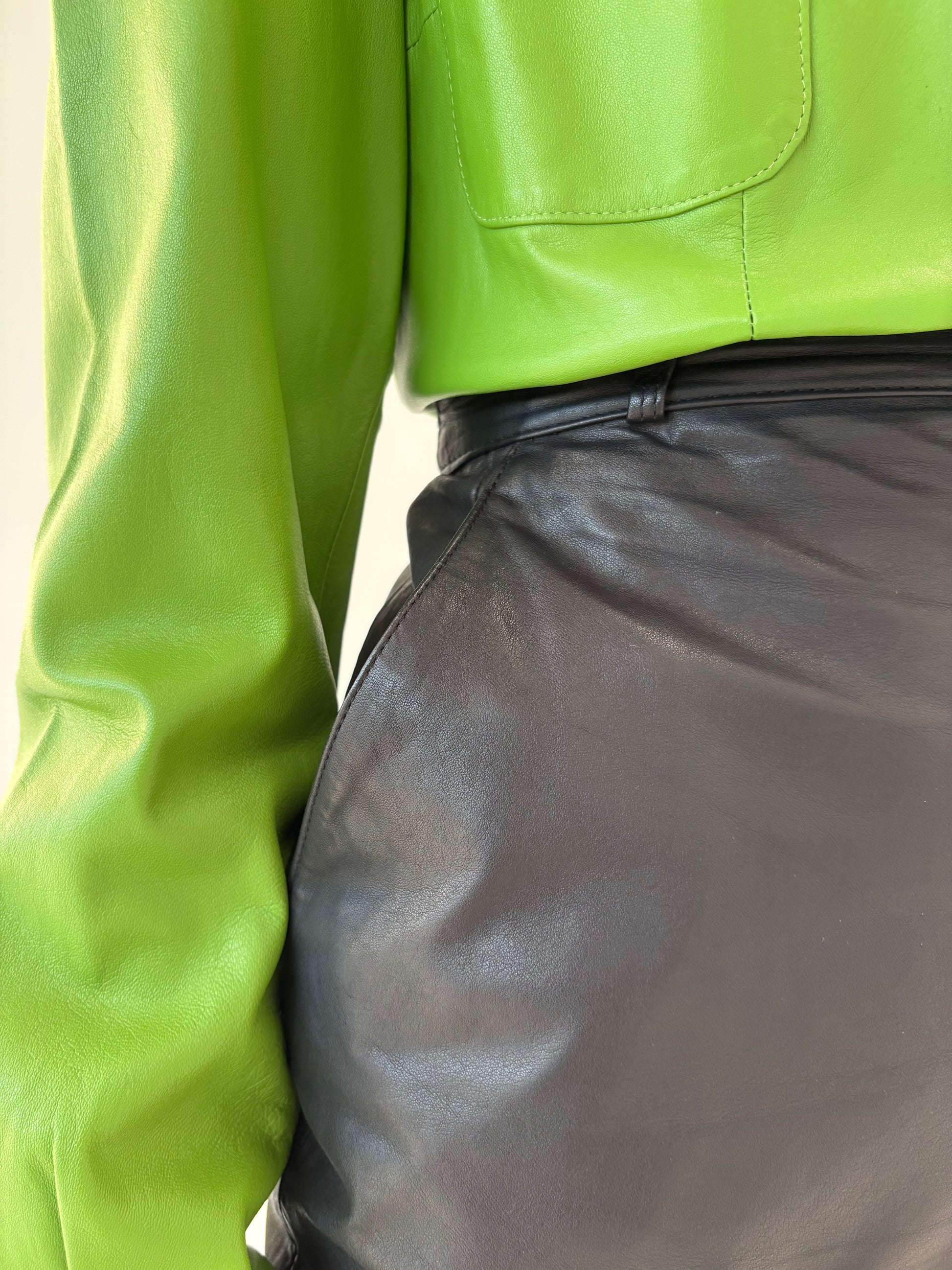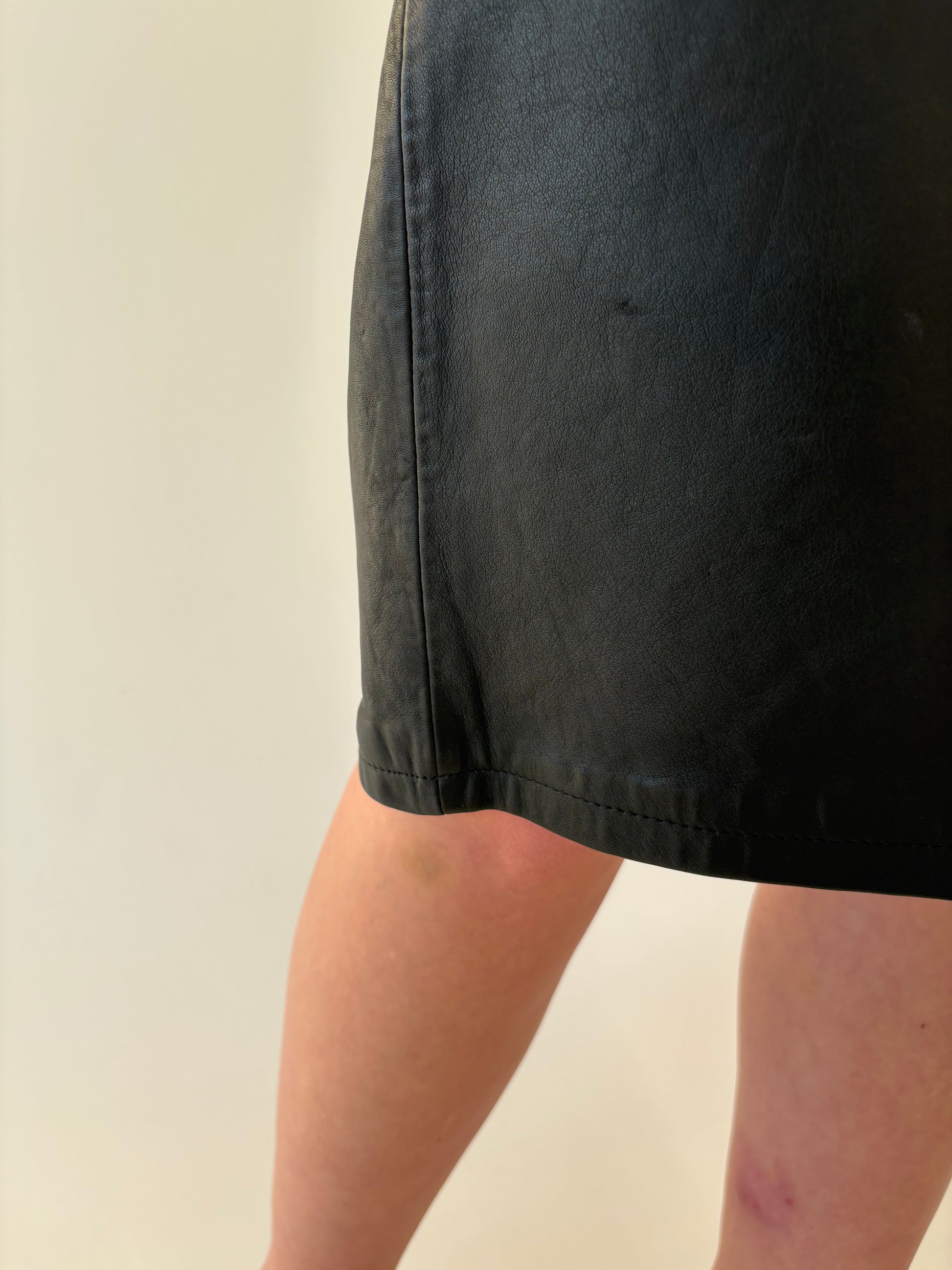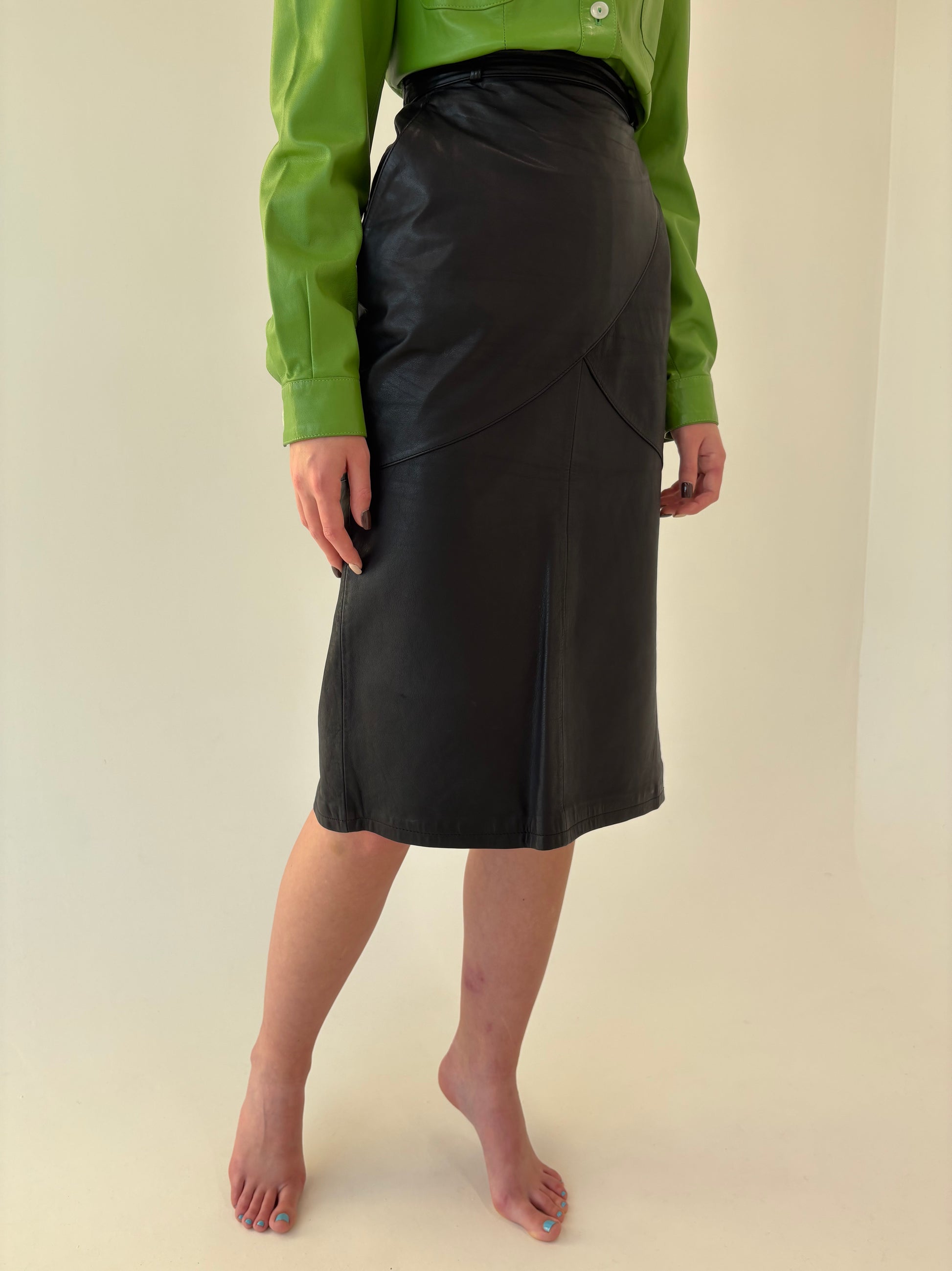 Fustă din piele naturală cu buzunare și talie ultra înaltă