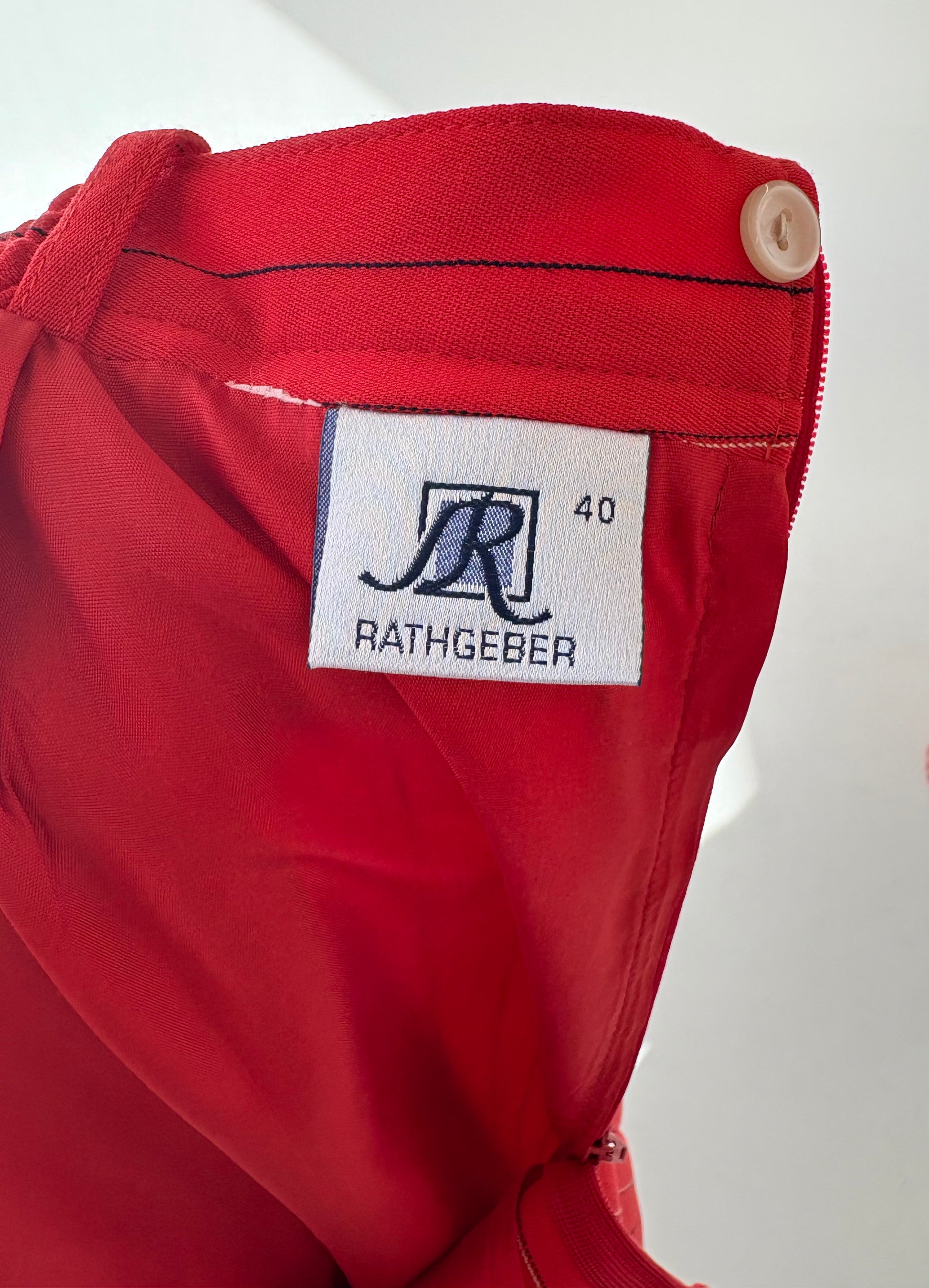 Fustă cherry red midi spre maxi din stofă de lana extrafina cu dungi fine