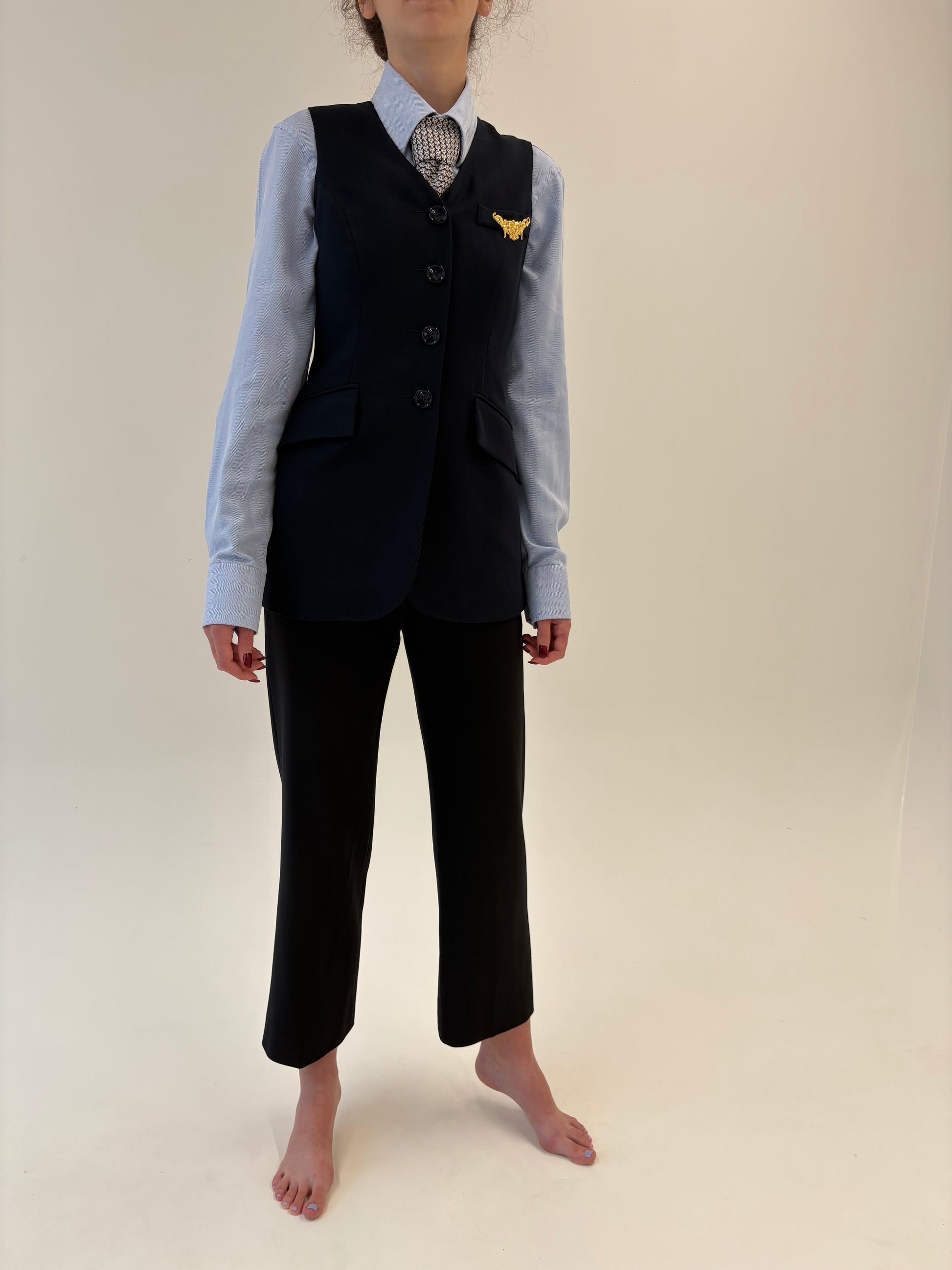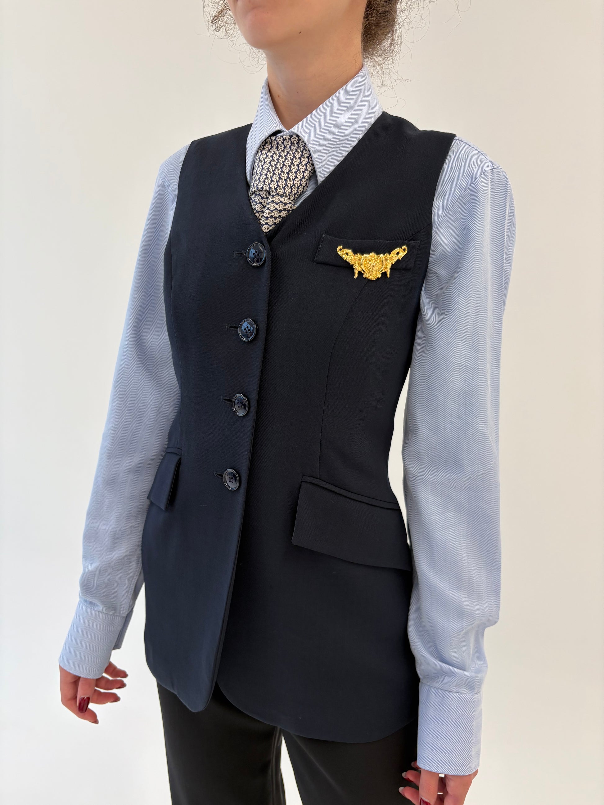 Vestă vintage cambrata din lana cu decorațiune metalică aurie