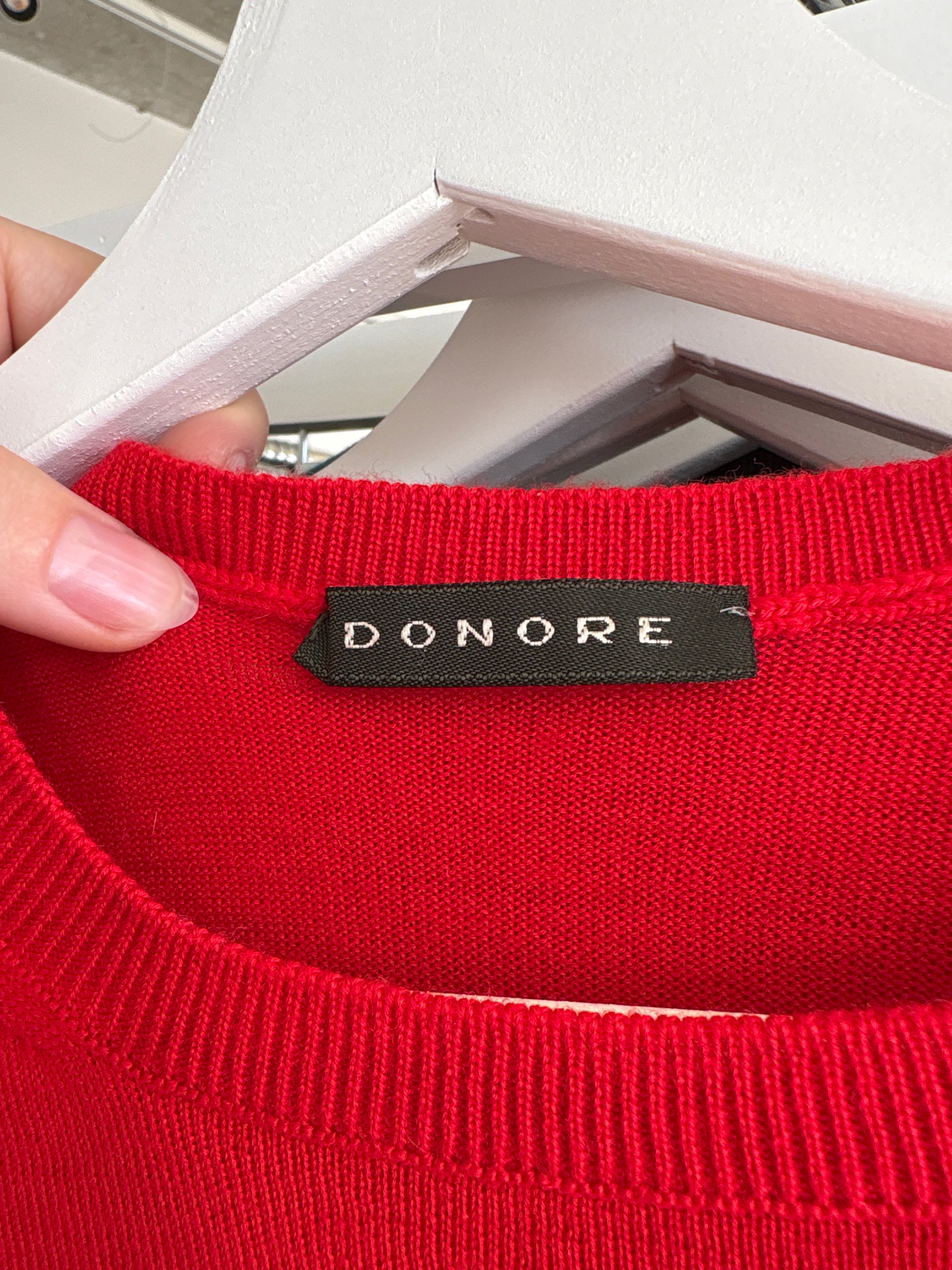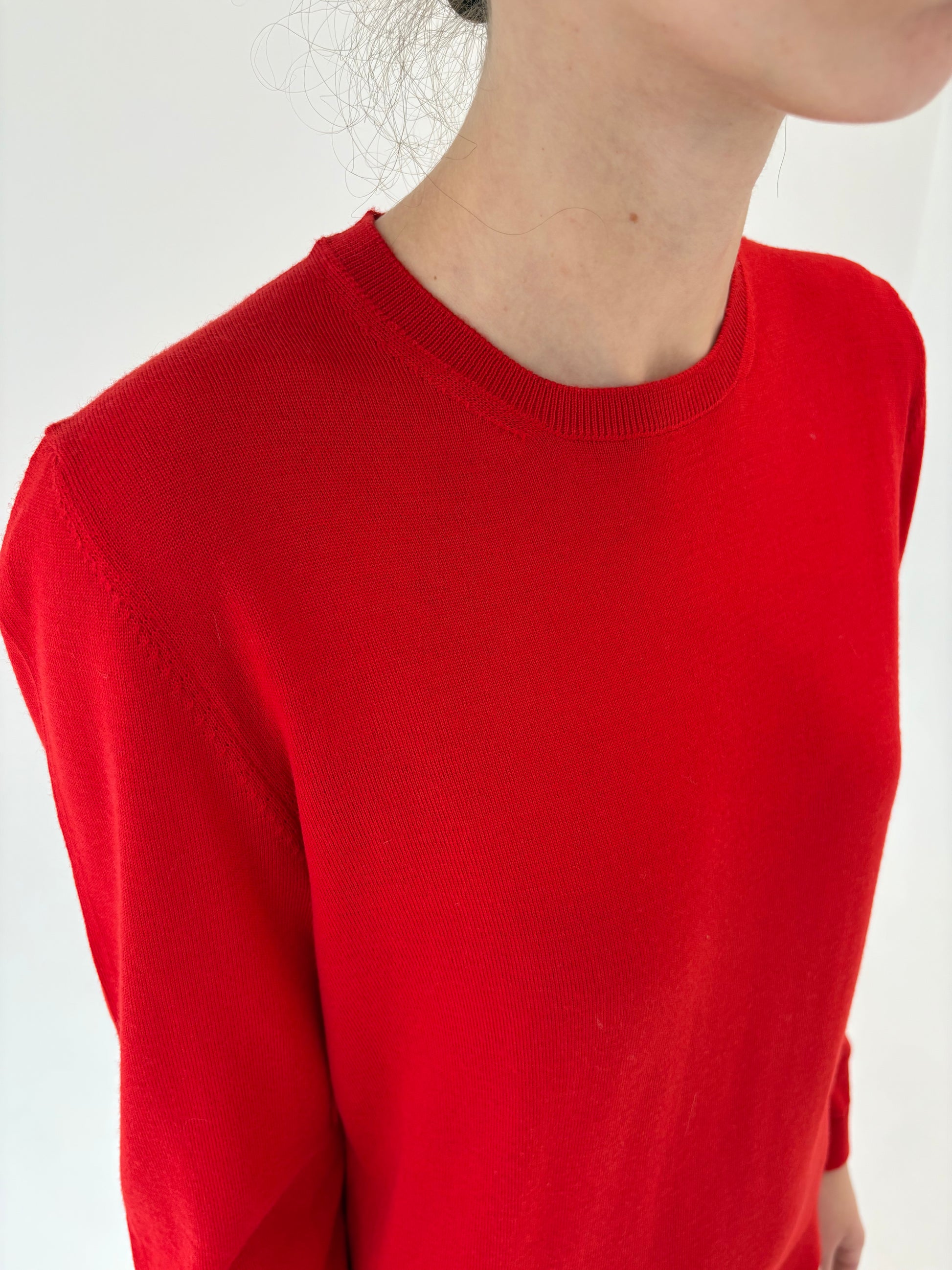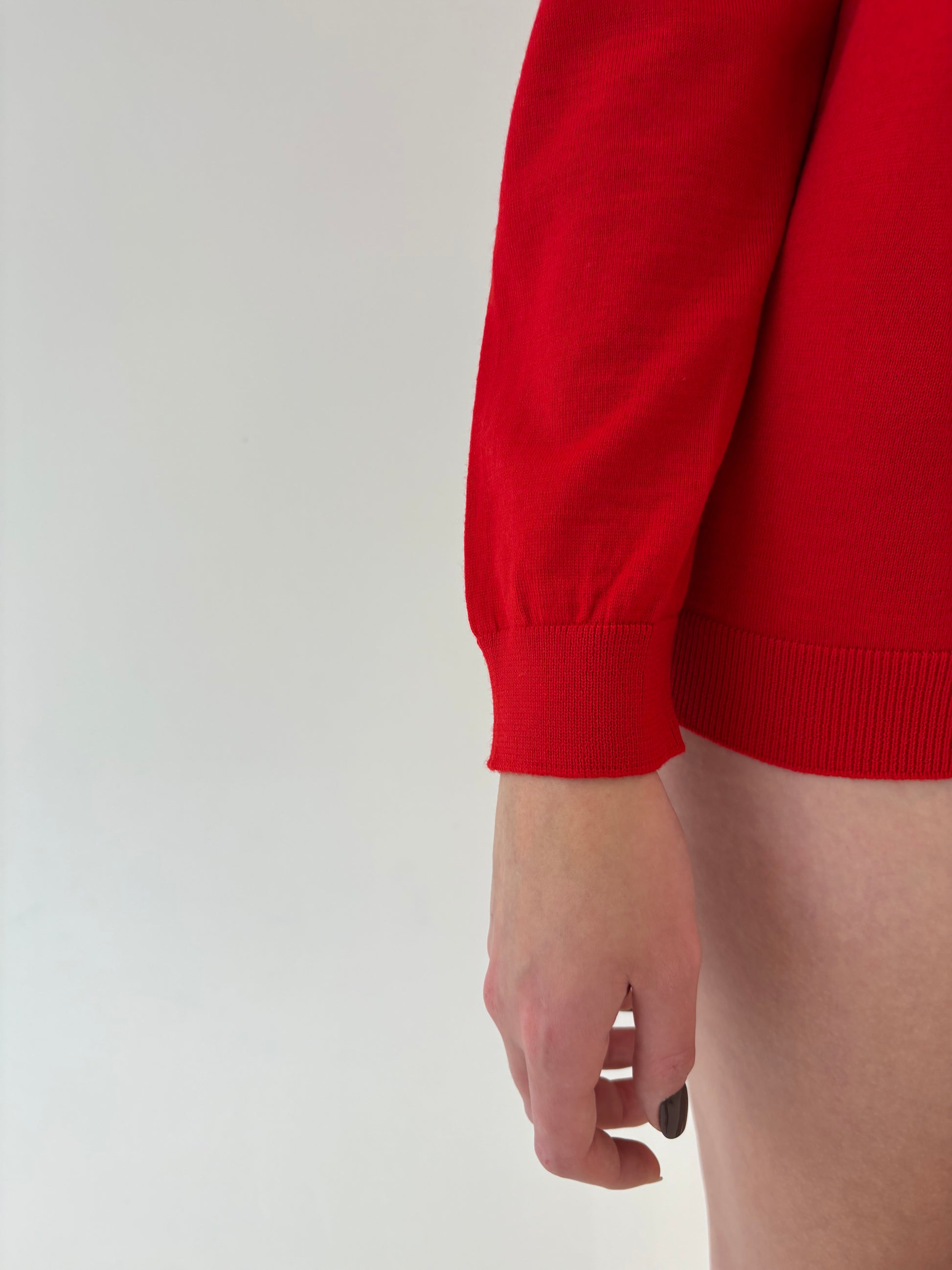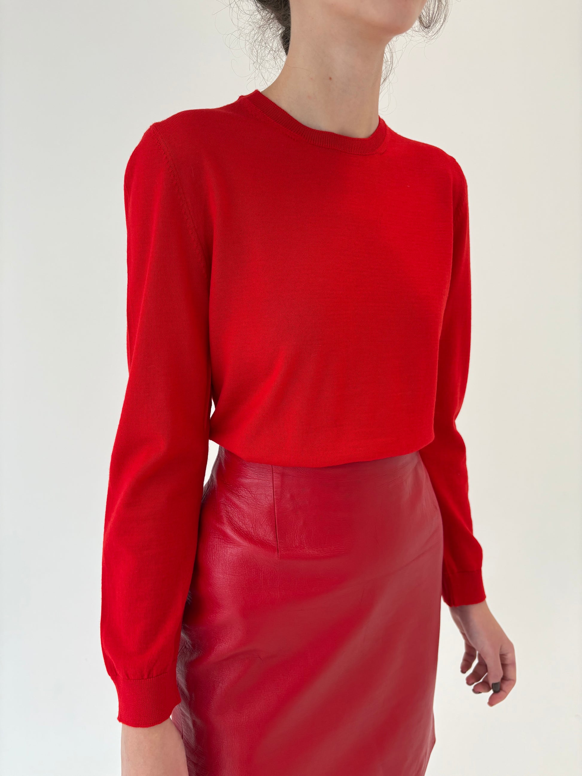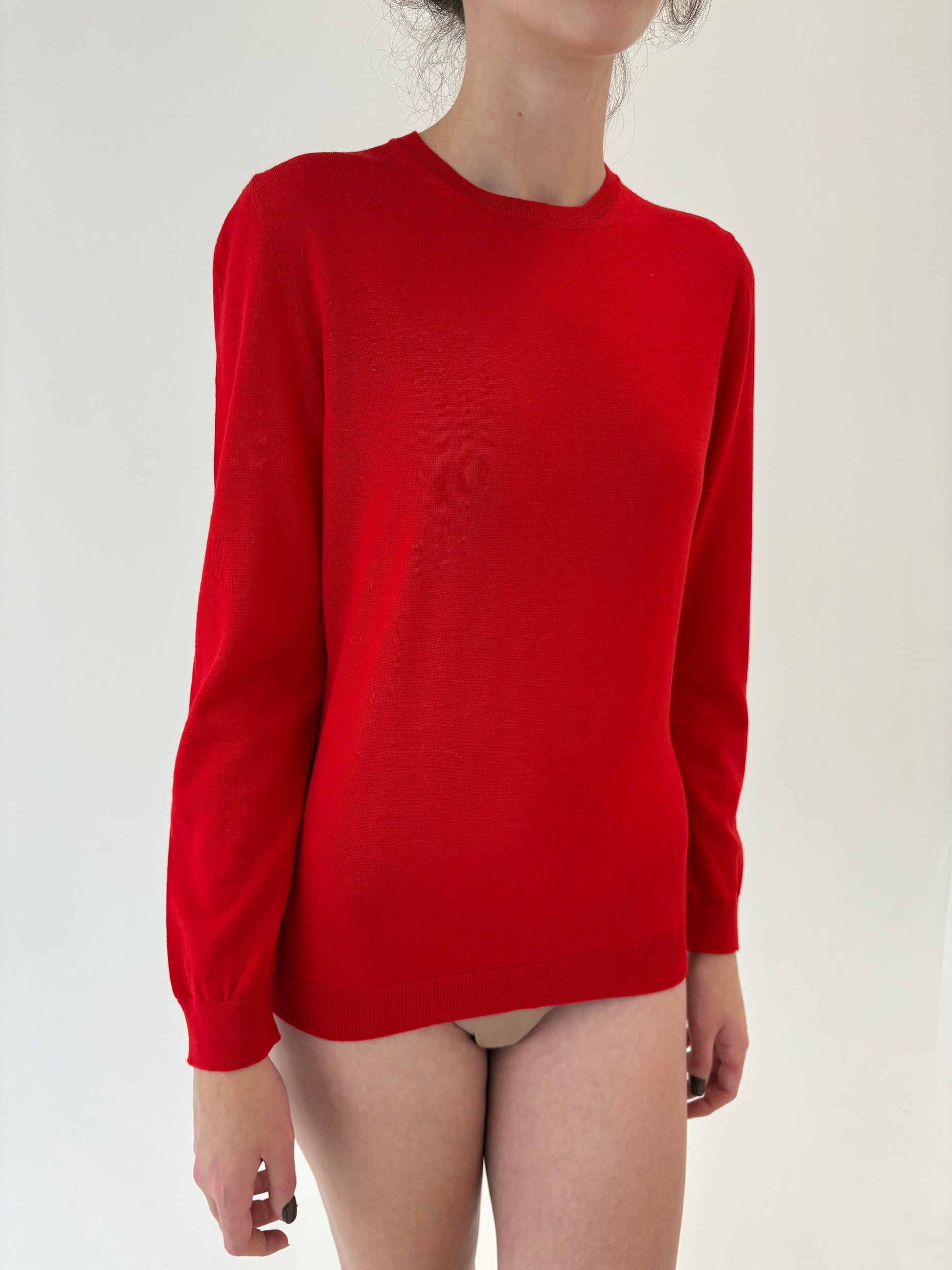 Pulover italian roșu tare clasic din lana merino extrafina