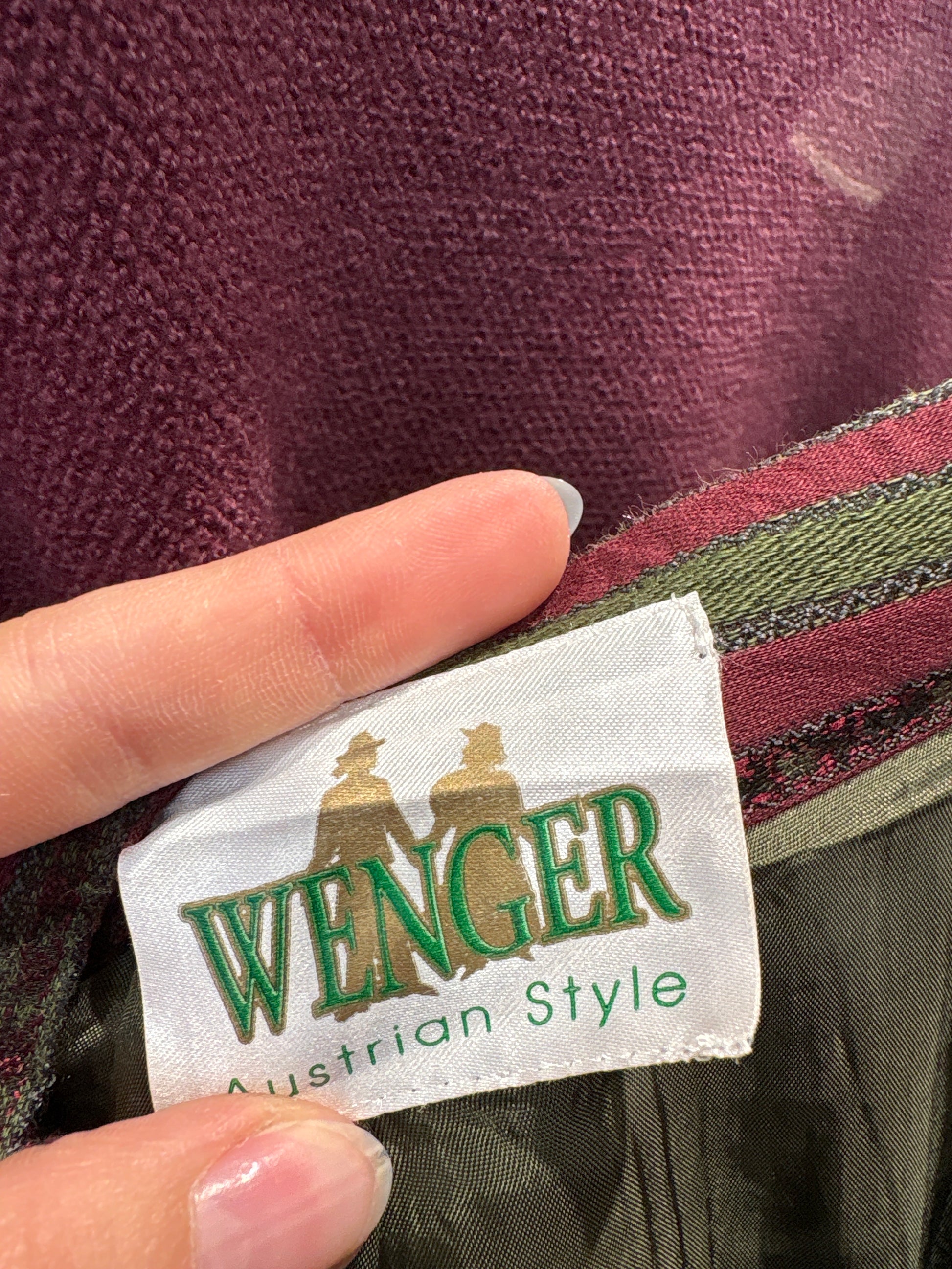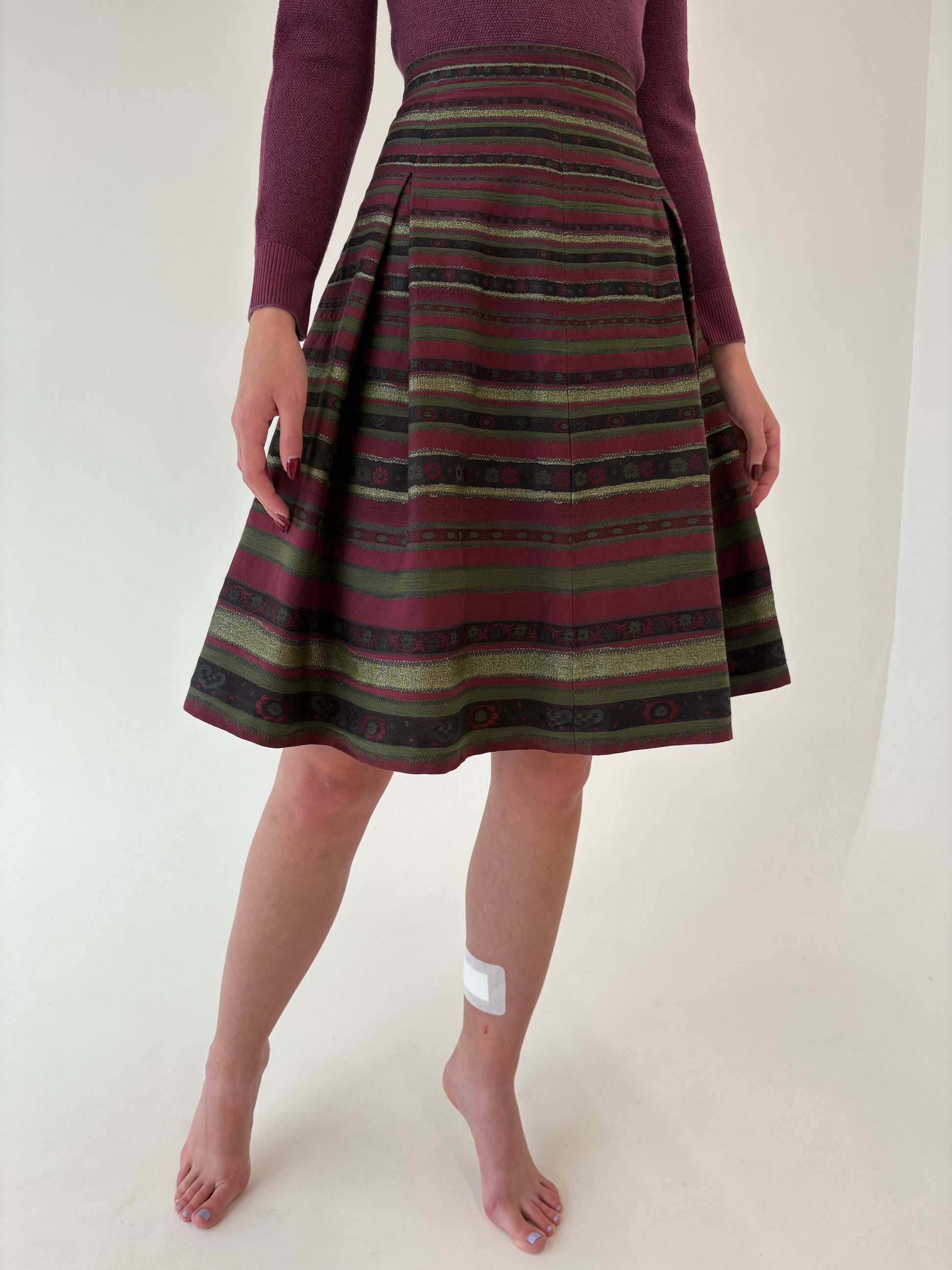 Fustă vintage din brocart de lans burgundy cu forest green
