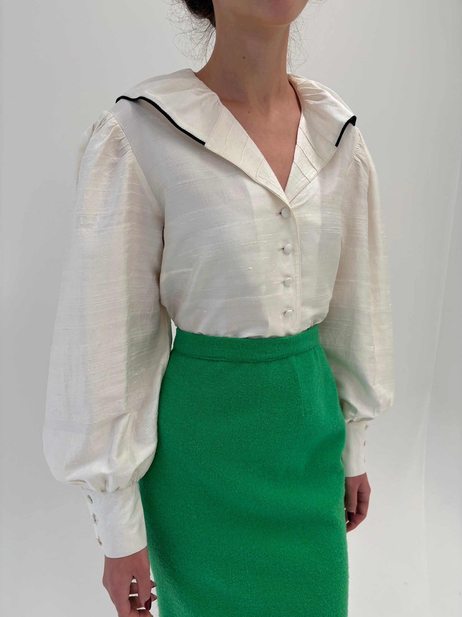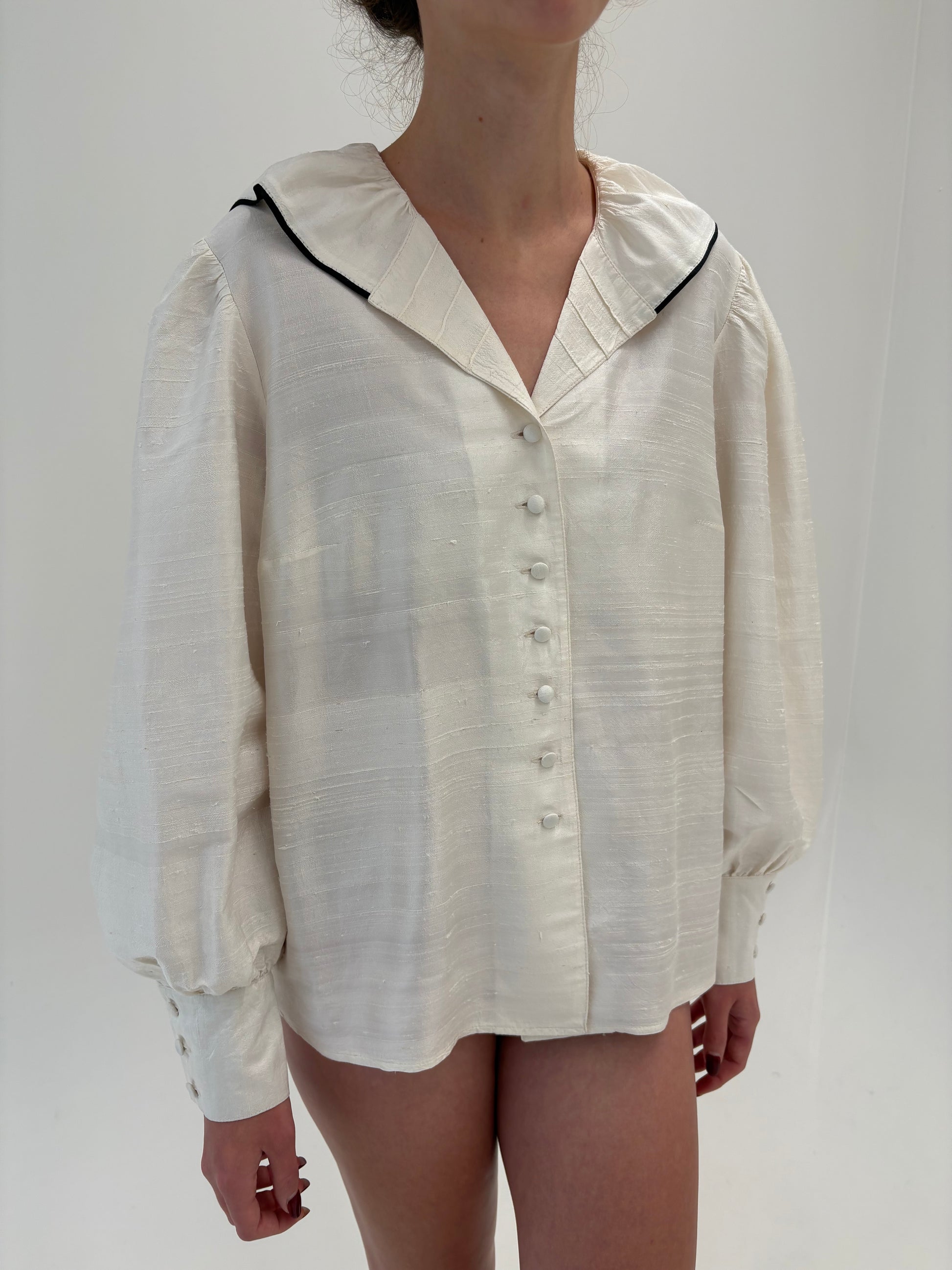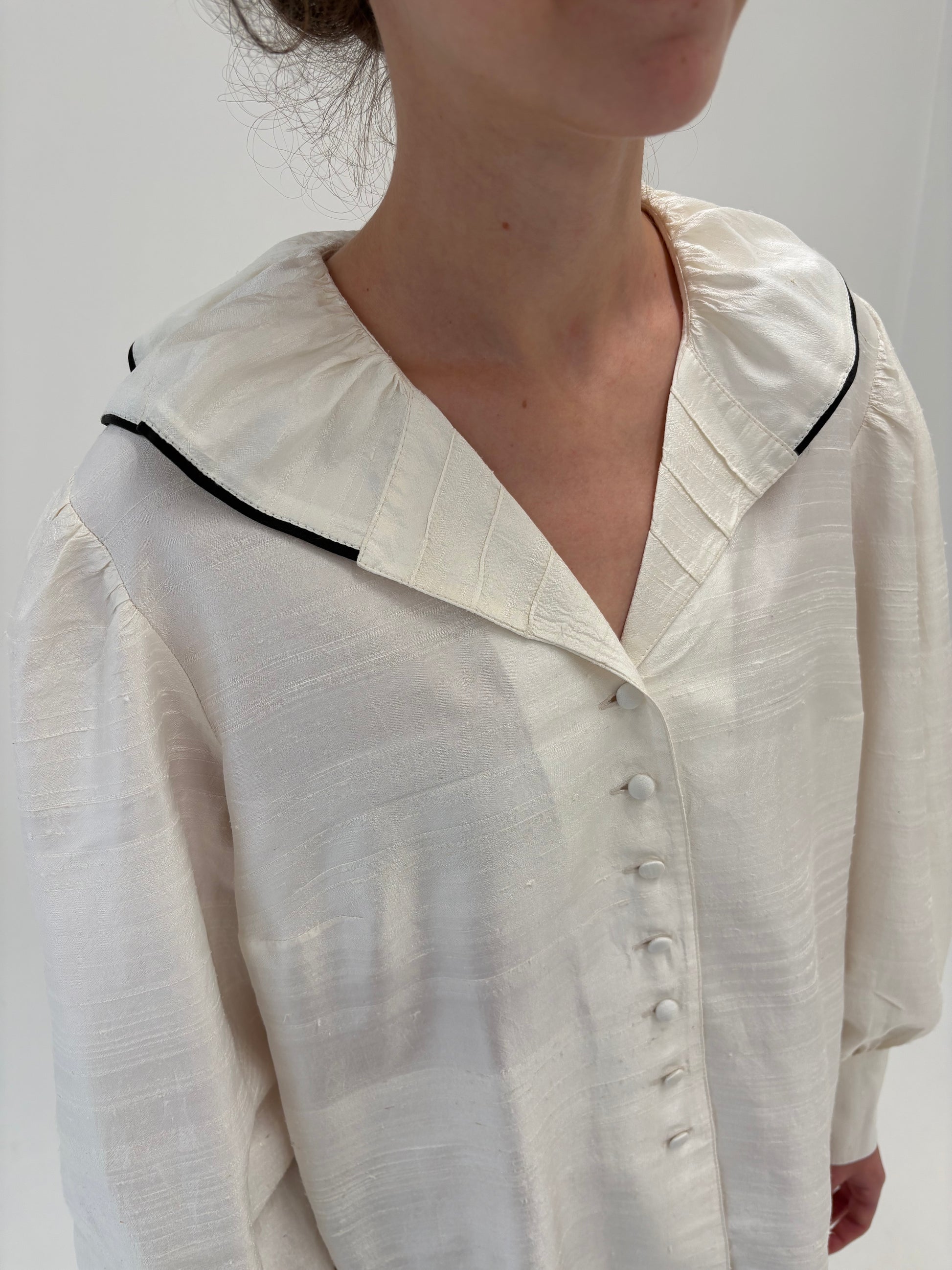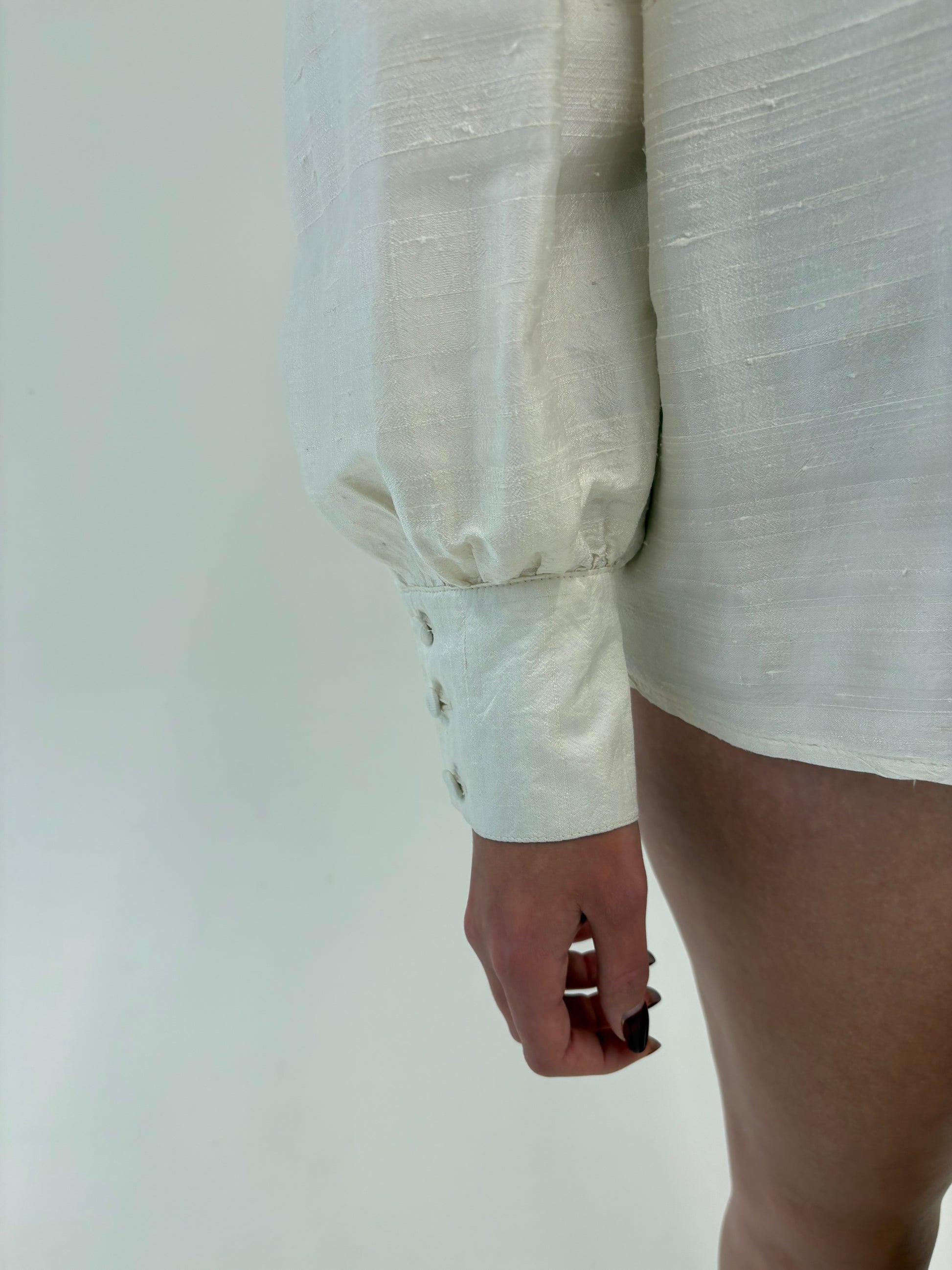 Cămașa butter white din mătase naturală dupioni ușor perlata