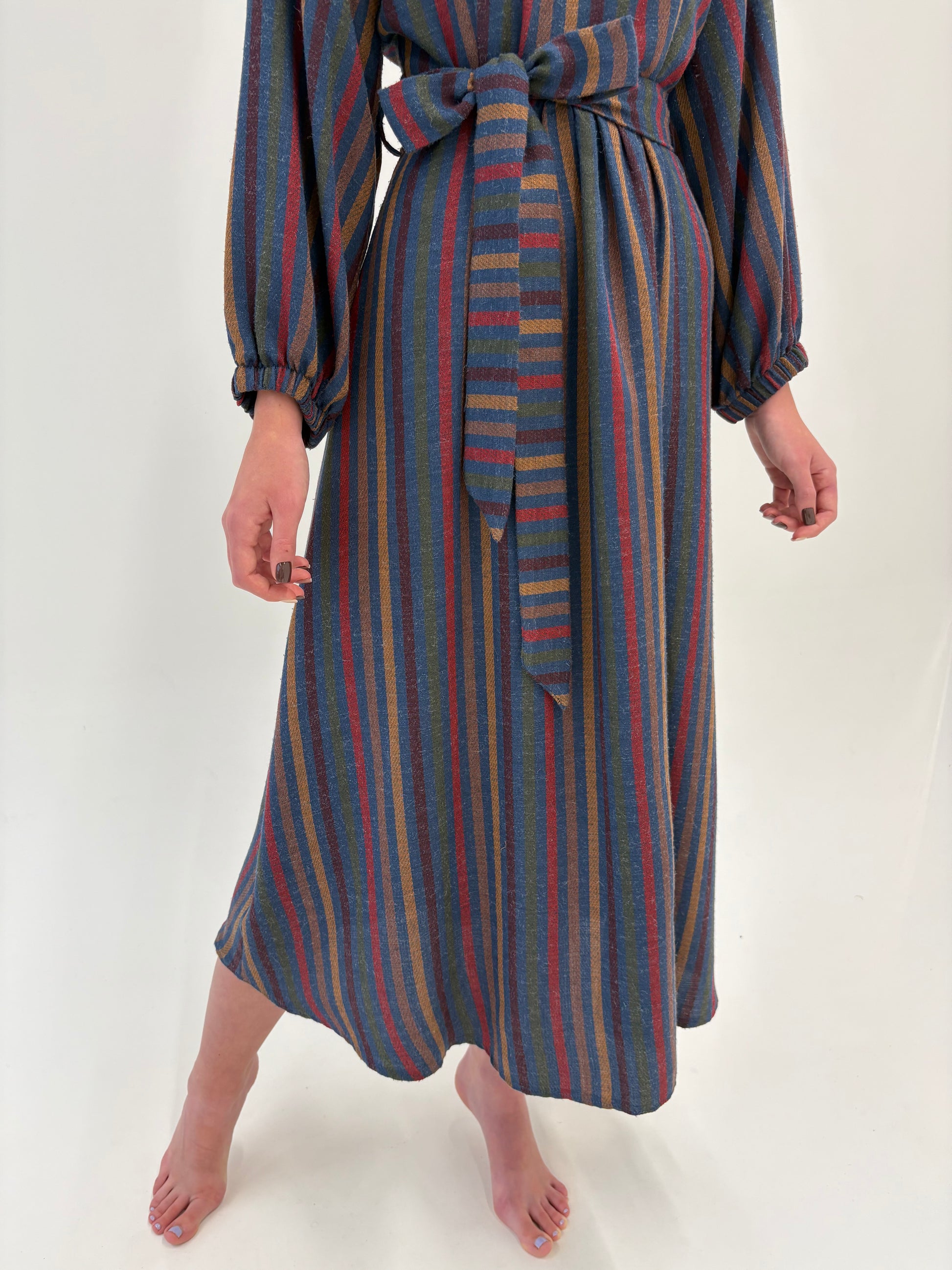 Rochie maxi old vintage sfârșit de ani 70 din lana extrafina cu talie reglabilă