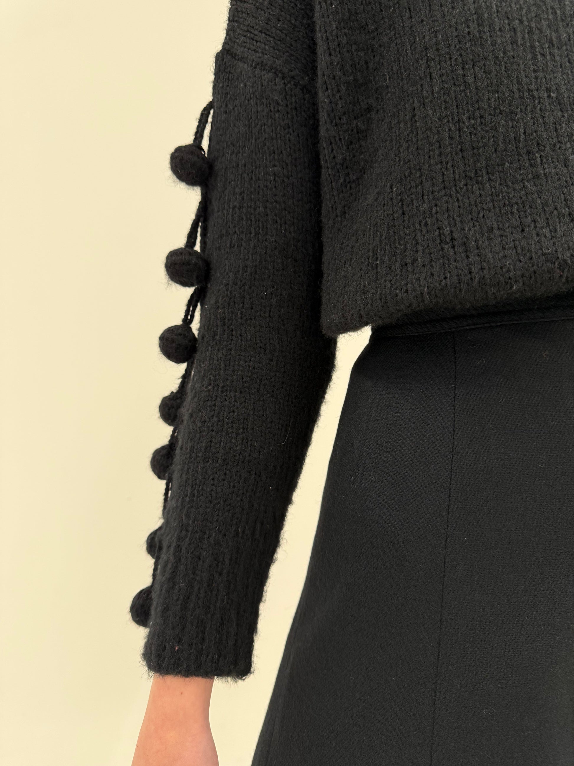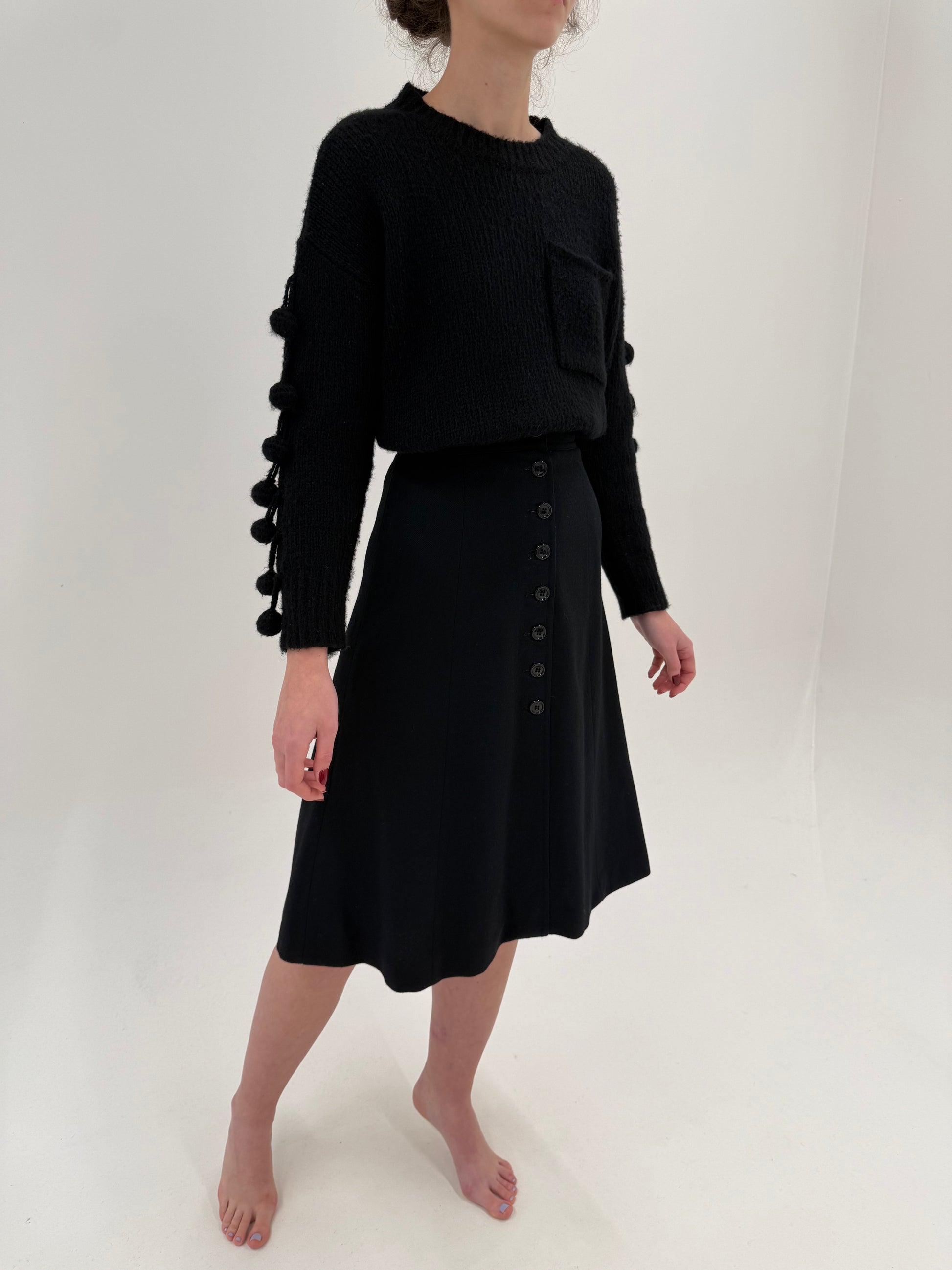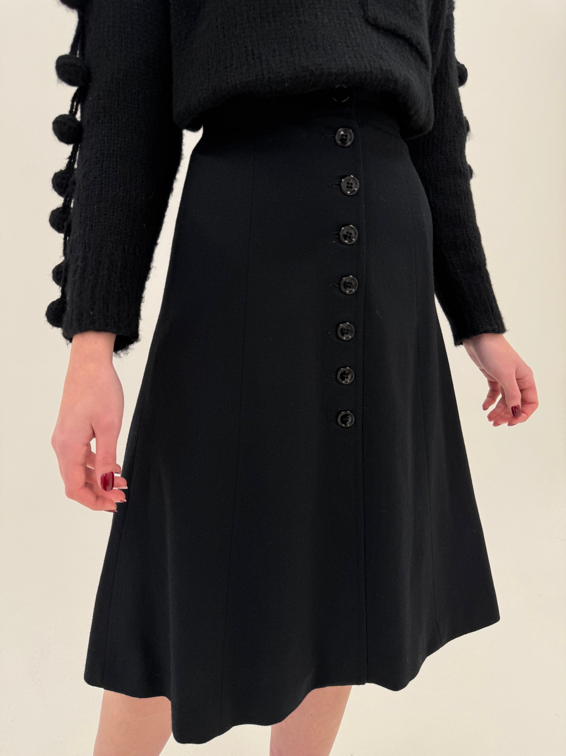 Fustă neagră în croi A-line din lana extrafina cu talie ultra înaltă