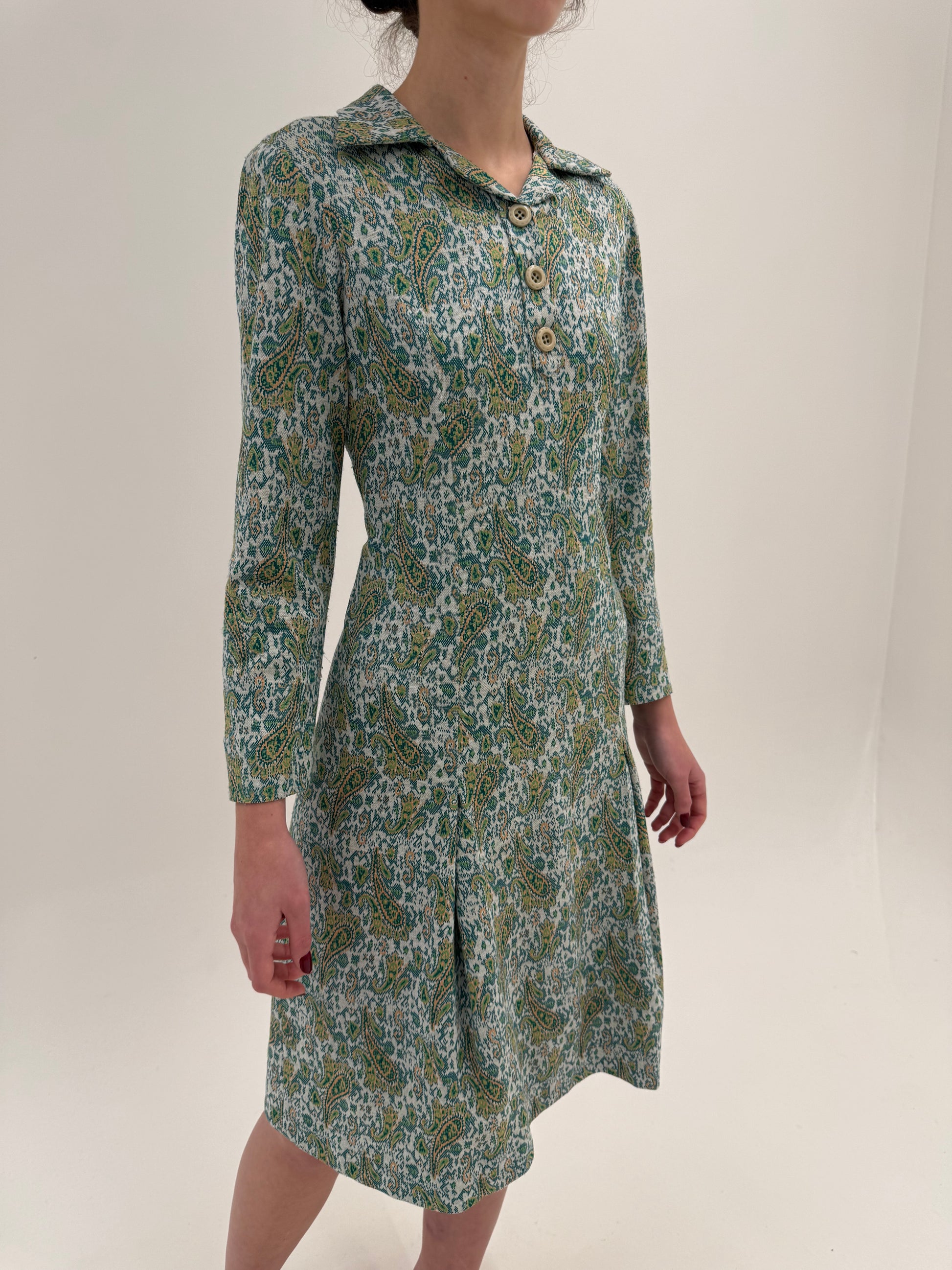 Robe chemise vintage din tricot cu print paisley în nuanțe superbe de verde