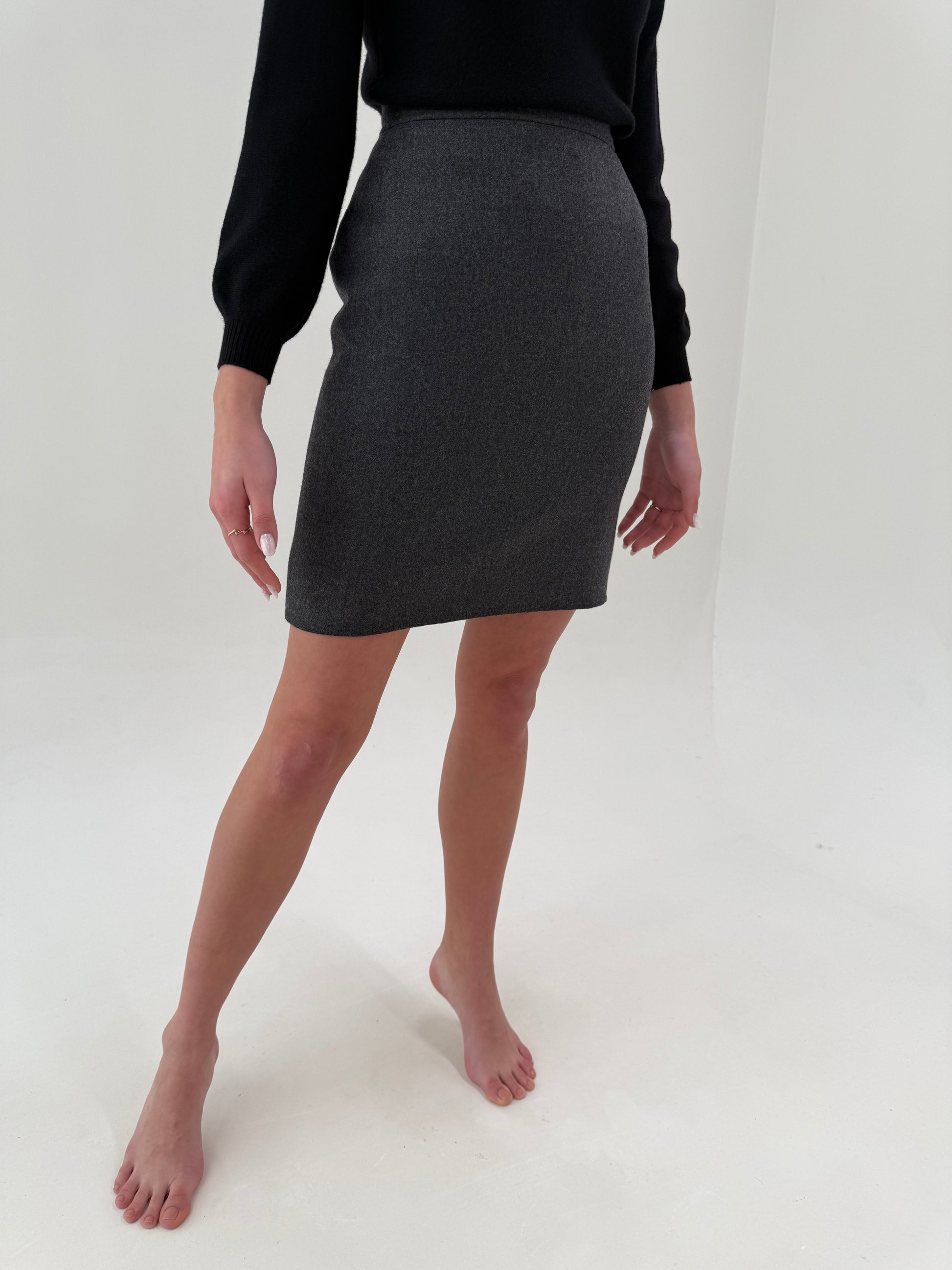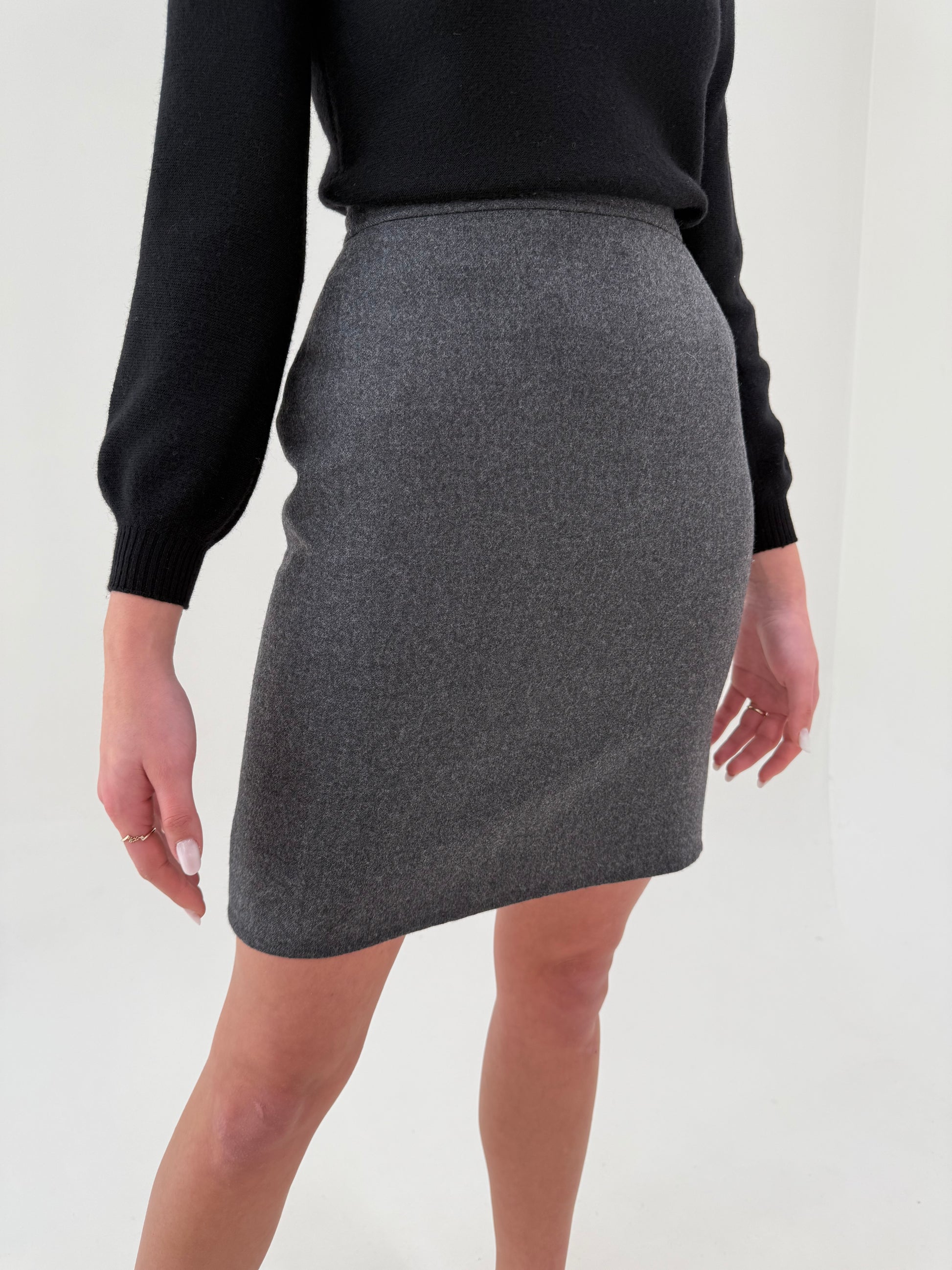 sacou cambrat în croi lung cu închidere dublă , fustă cu talie ultra înaltă conică