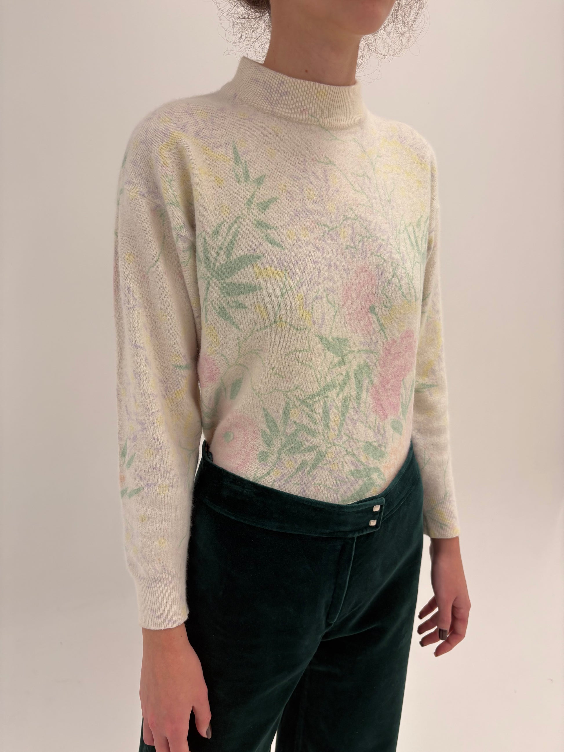 Maleta vintage petite butter white cu print sublim din lana extrafina și Angora