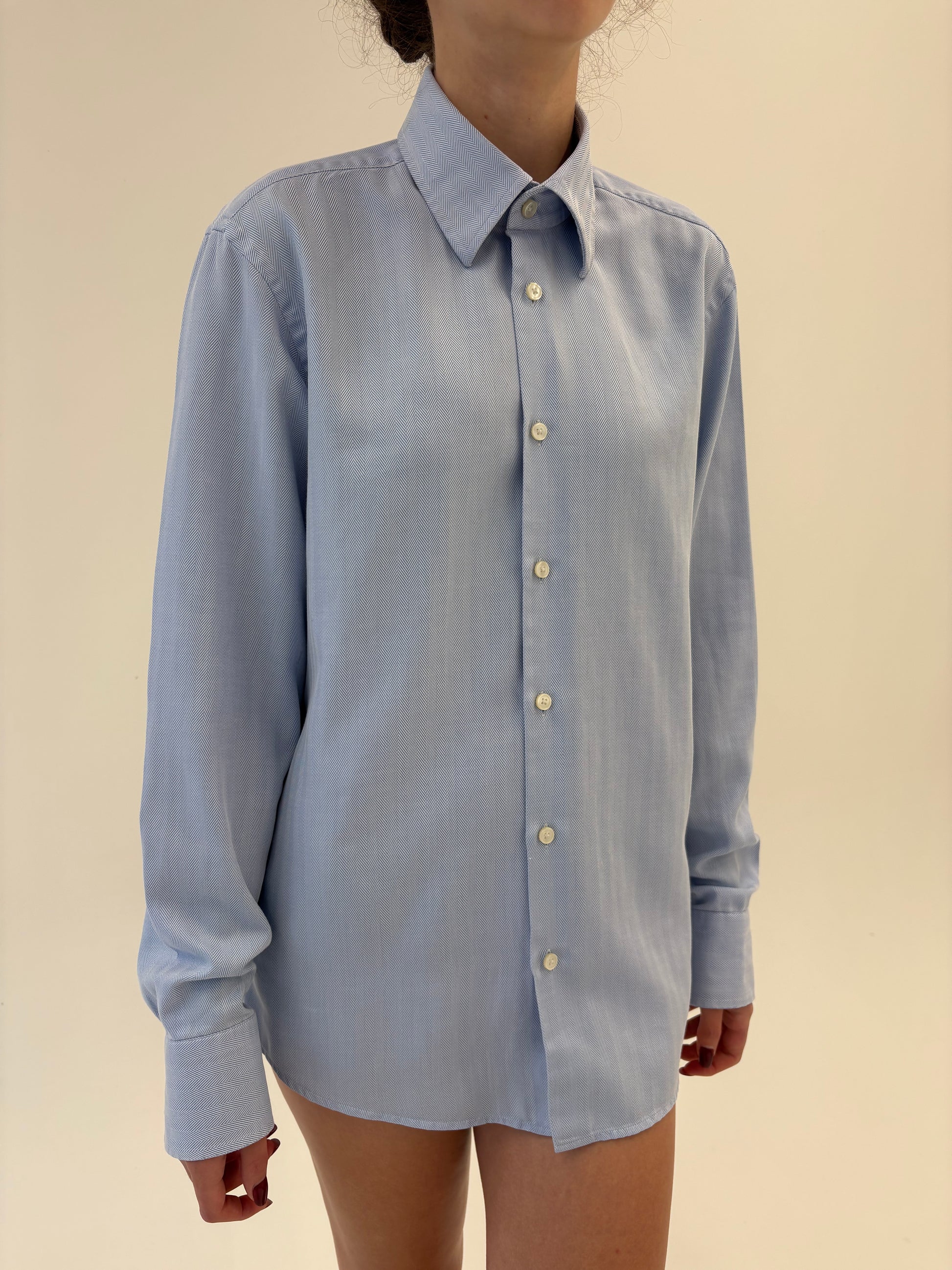 Cămașa Hugo Boss din poplin excepțional gros baby blue