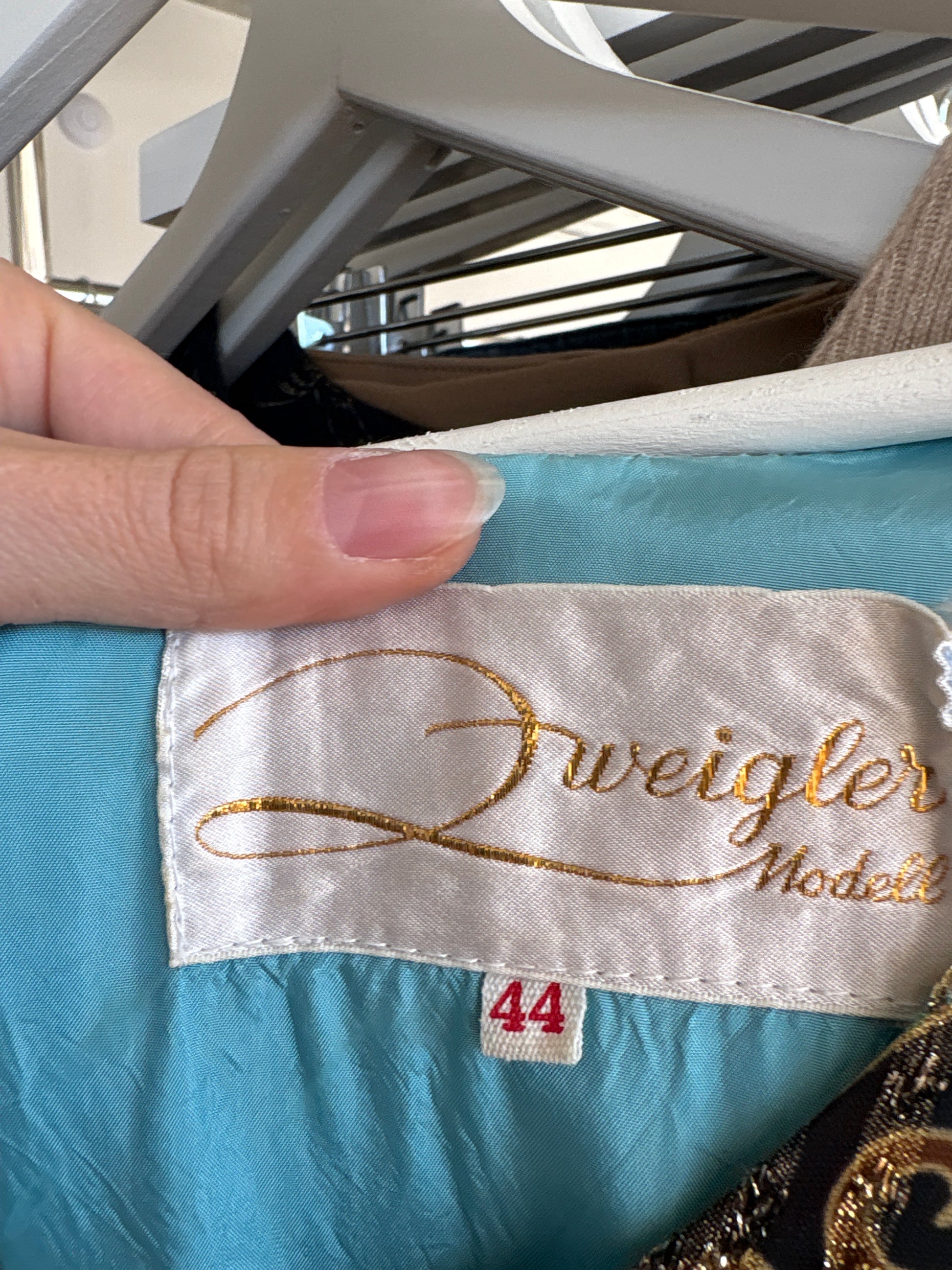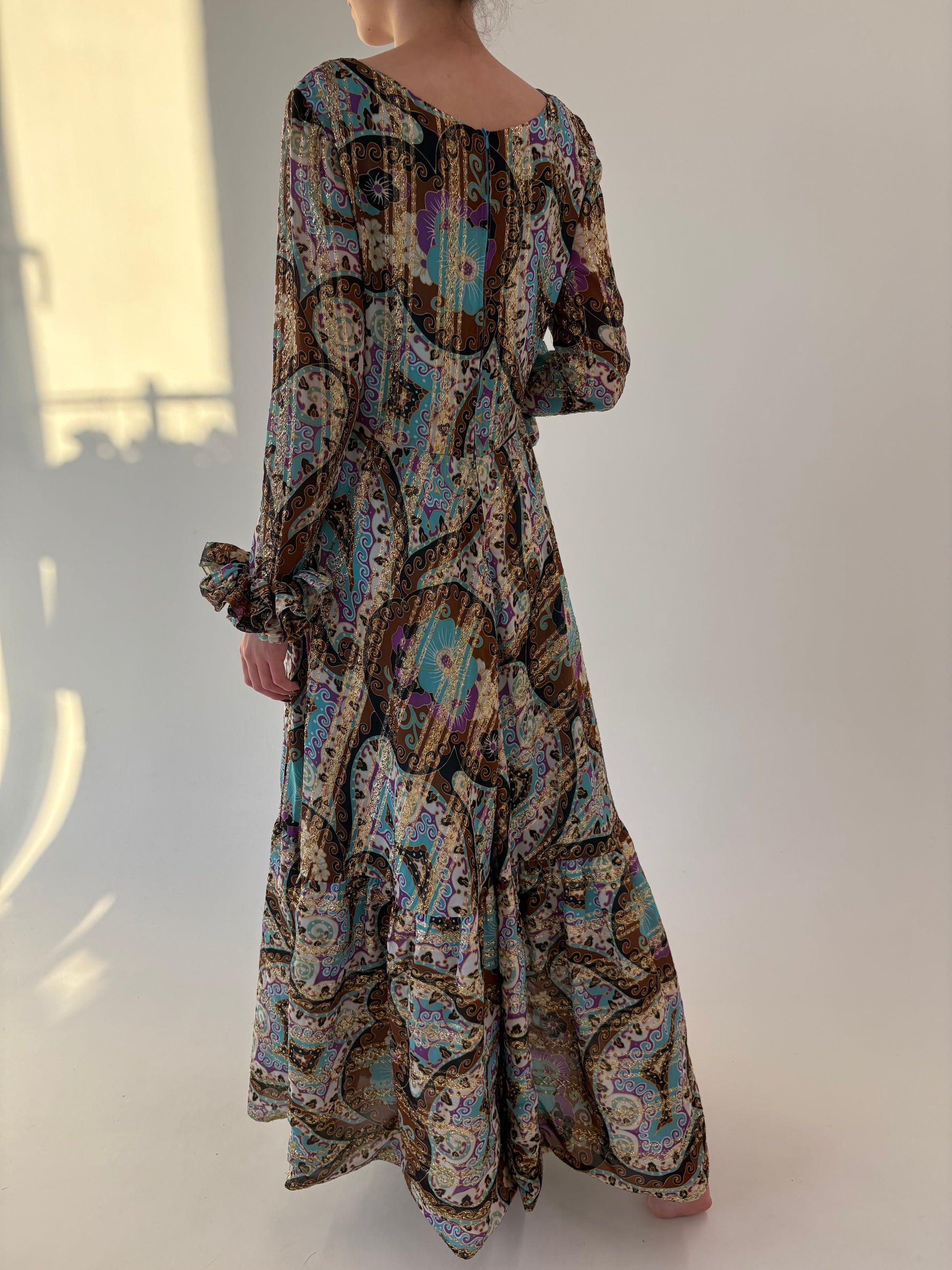 Rochie vintage maxi de seară cu print paisley și inserții fine aurii