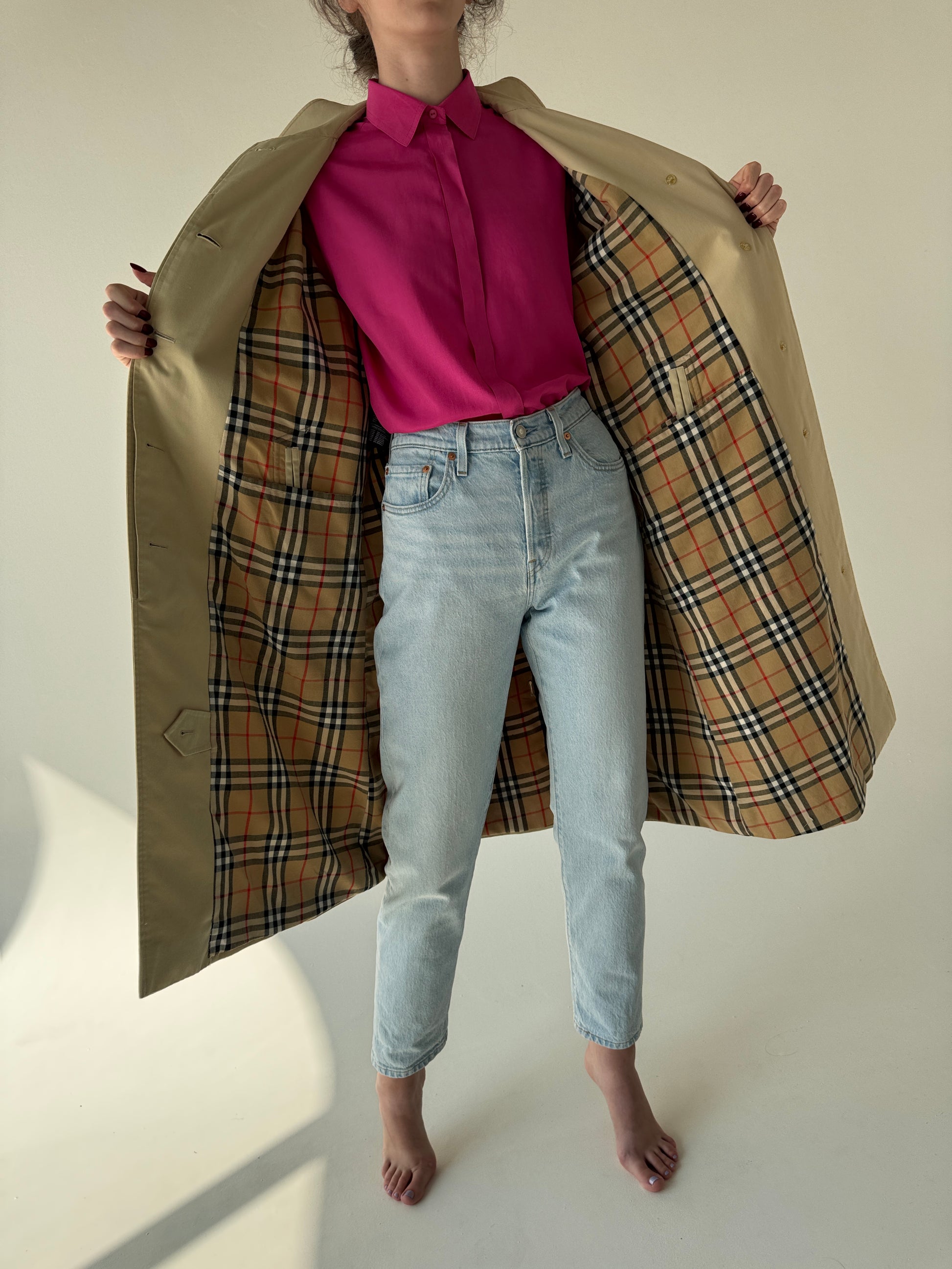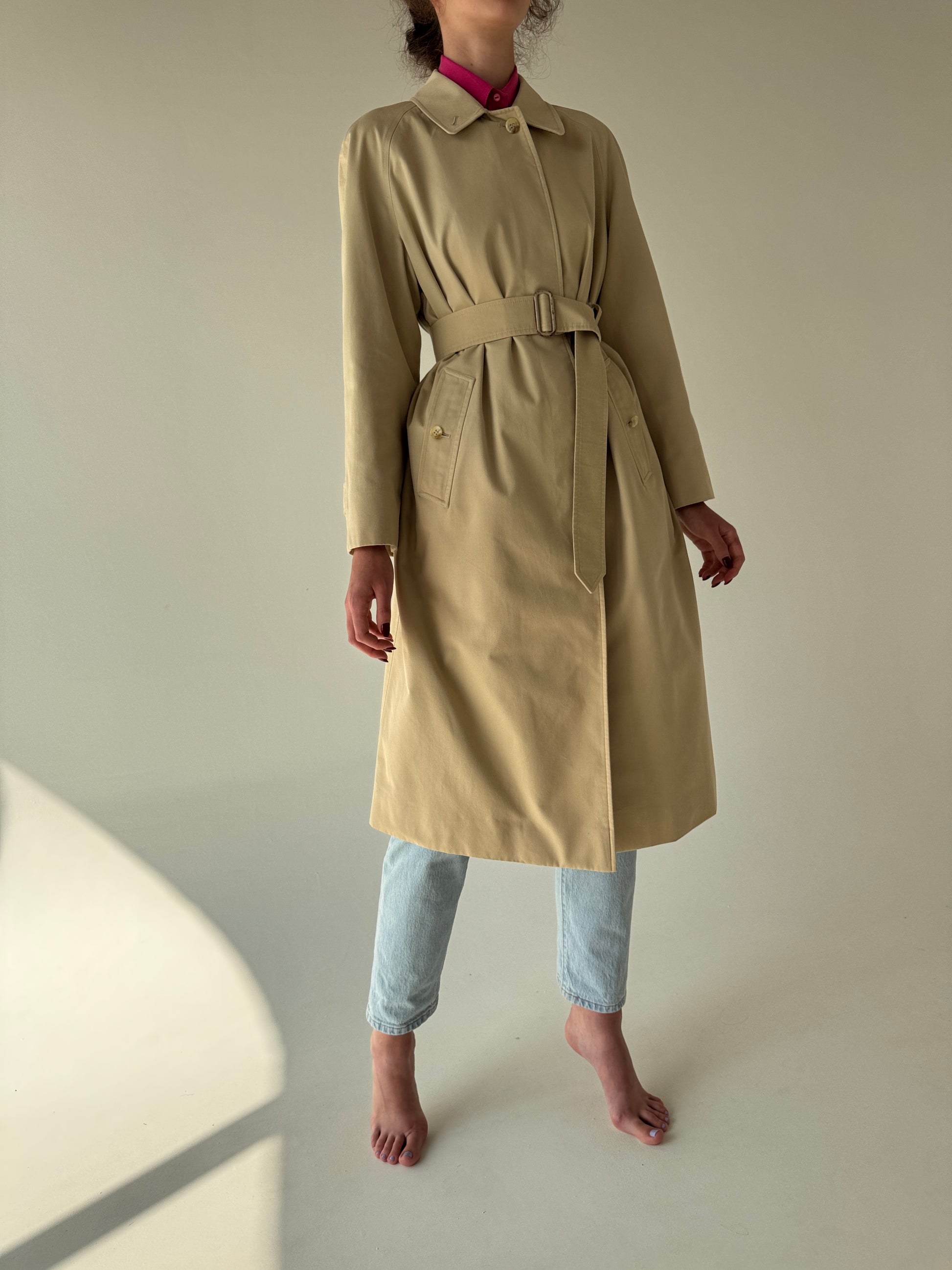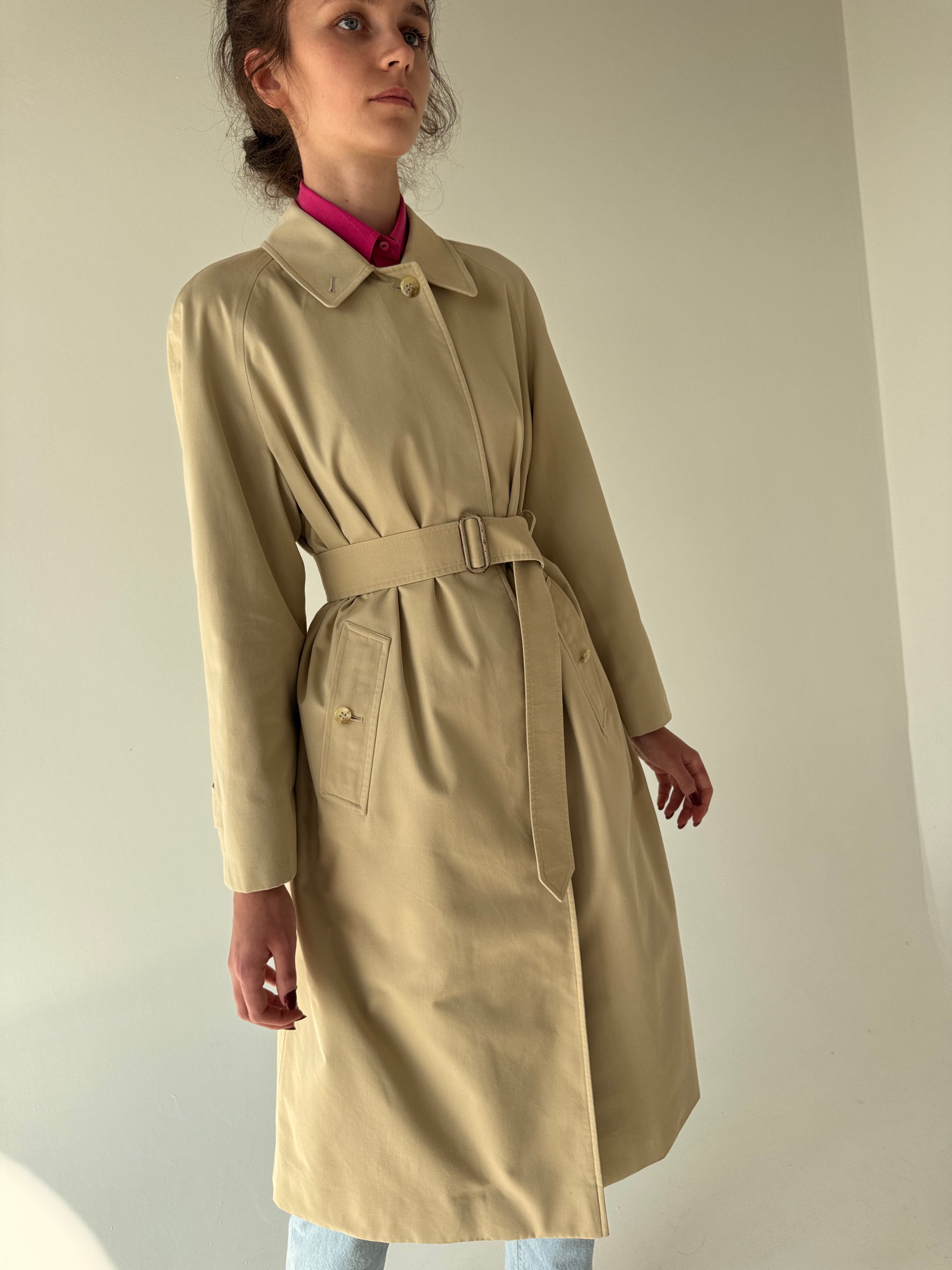 Trench vintage Burberry camel impermeabil cu talie marcată reglabilă