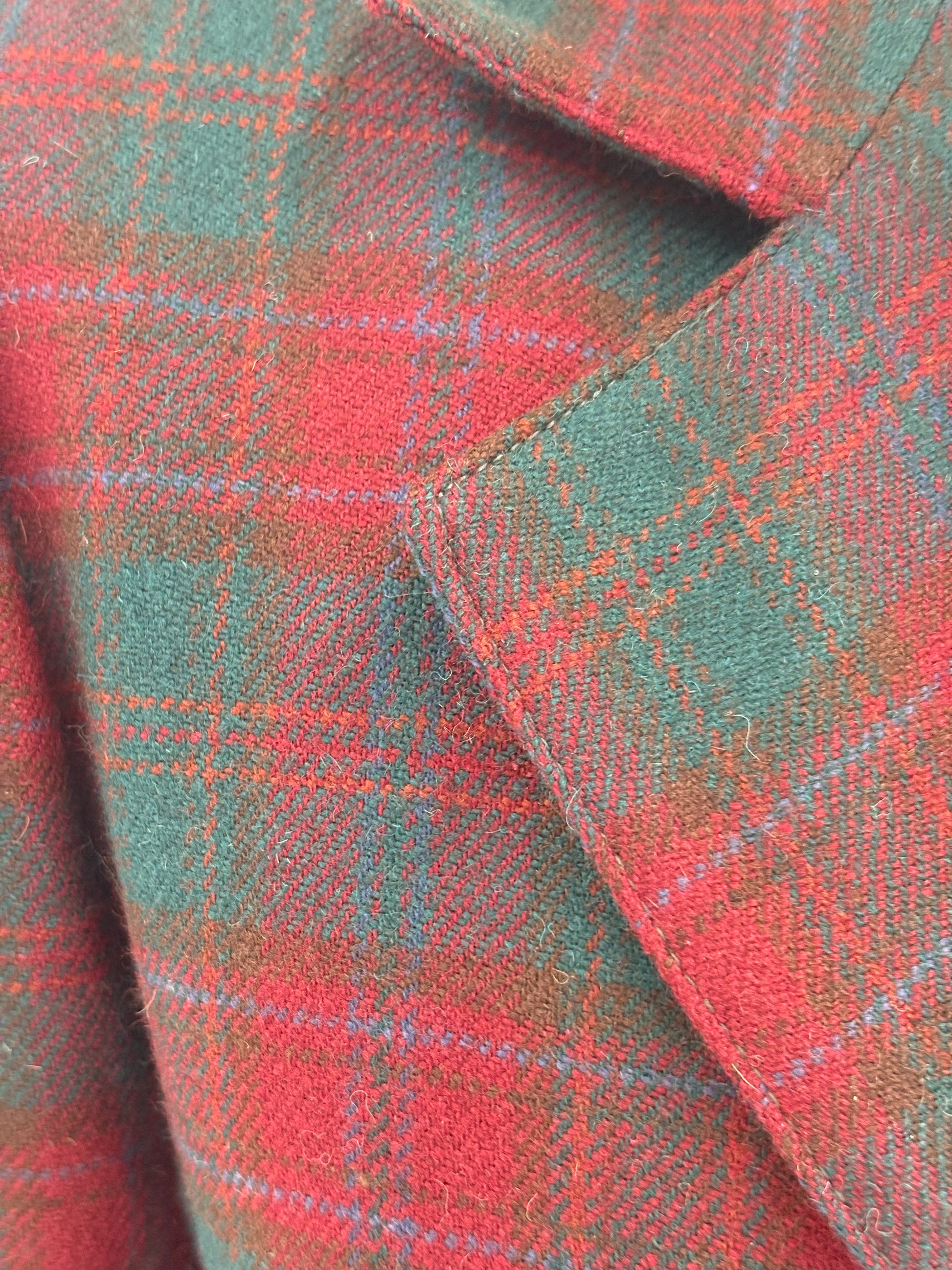 Sacou vintage cambrat din tweed burgundy cu forest green
