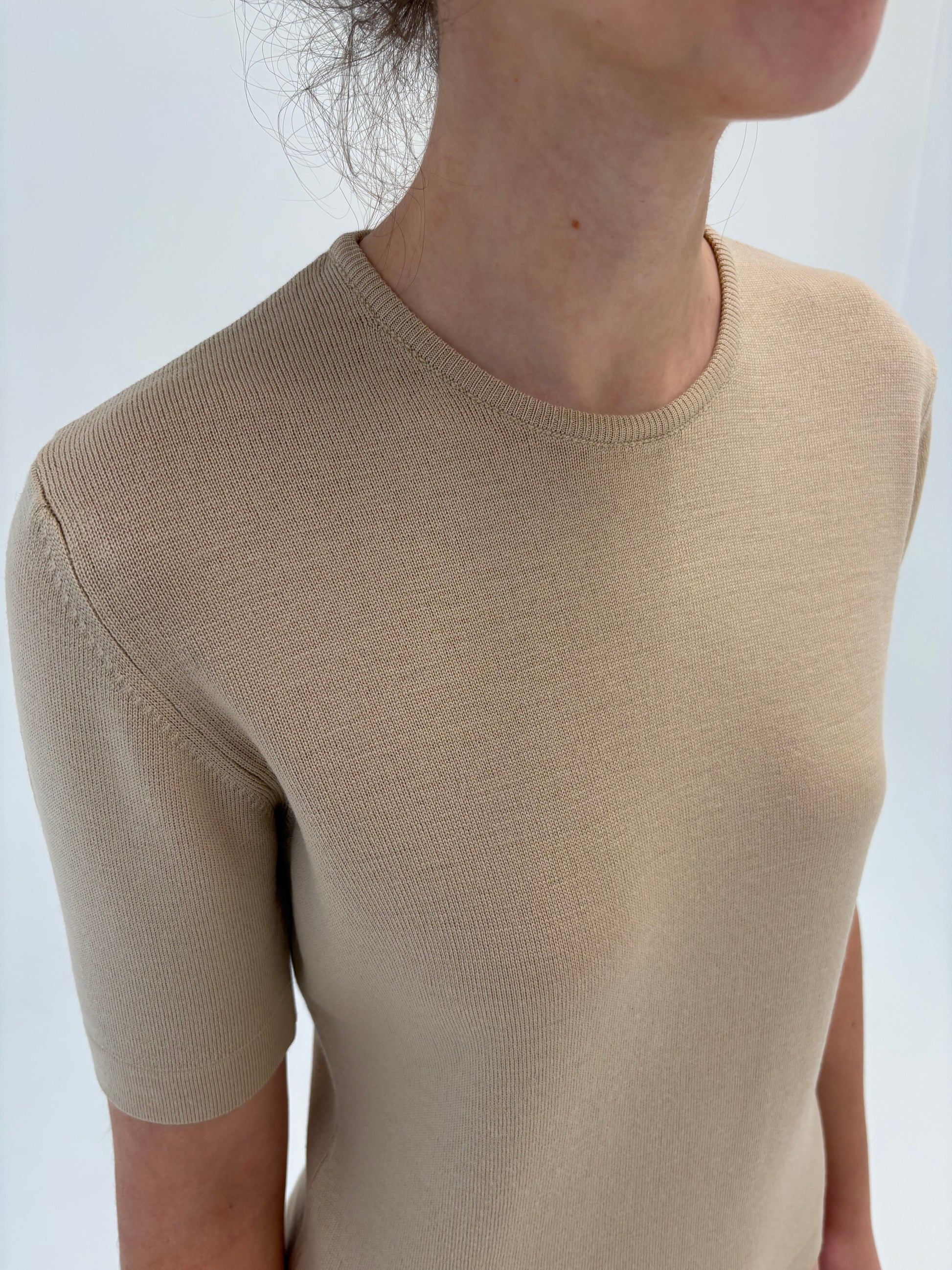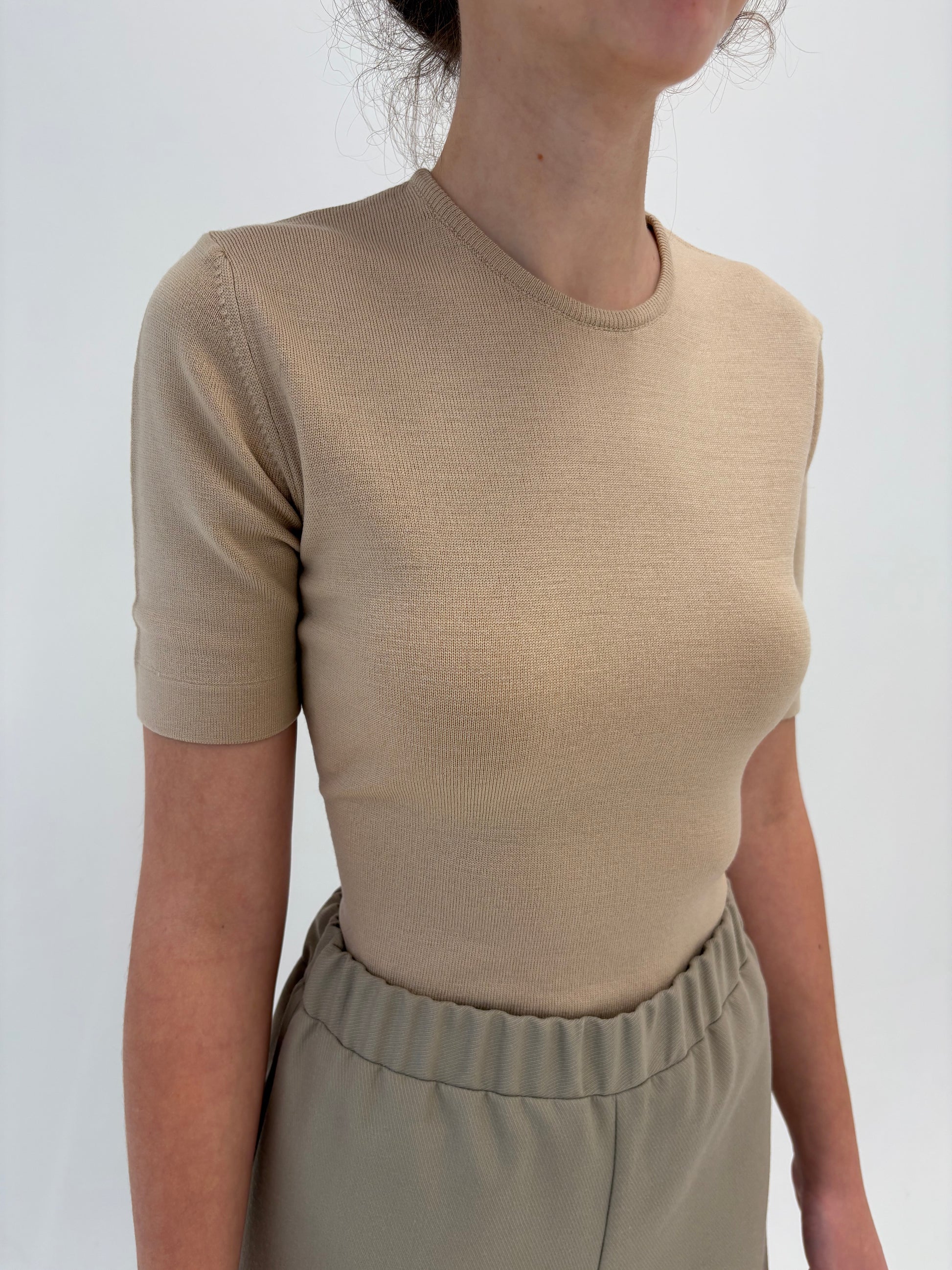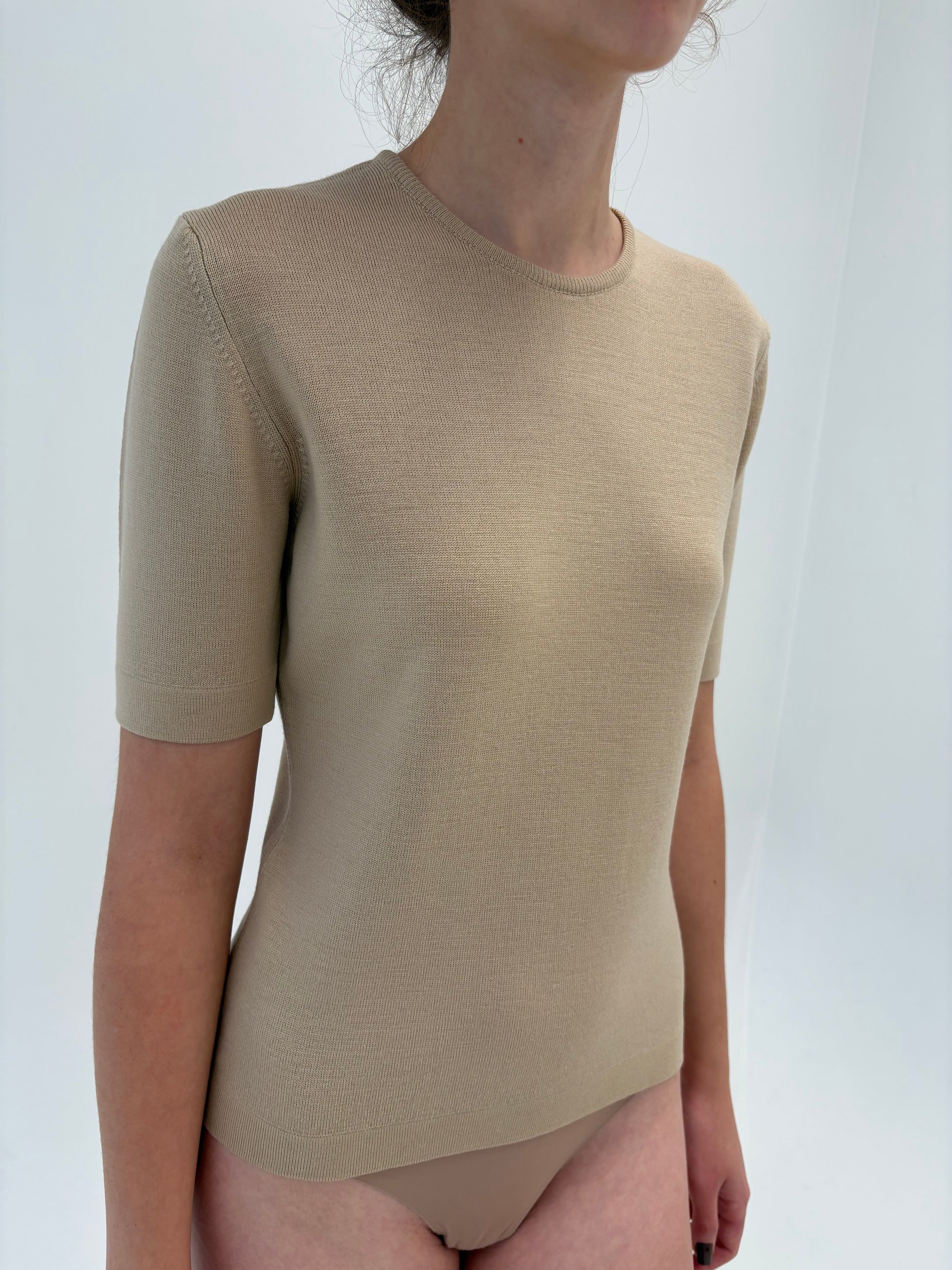 Top light camel din lana merino extrafina de gramaj mare