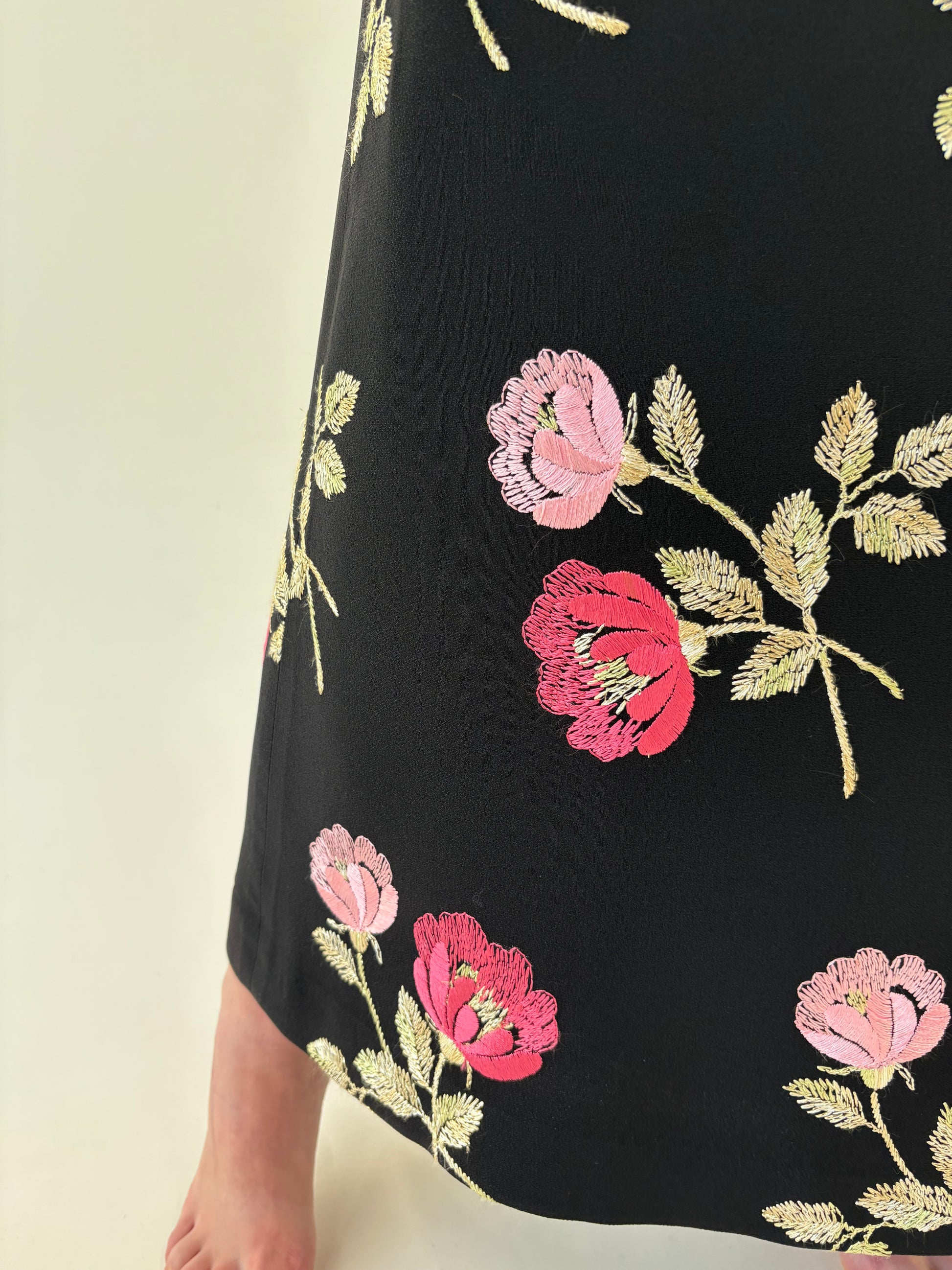 LBD vintage maxi cu broderie excepțională cu bujori și talie marcată