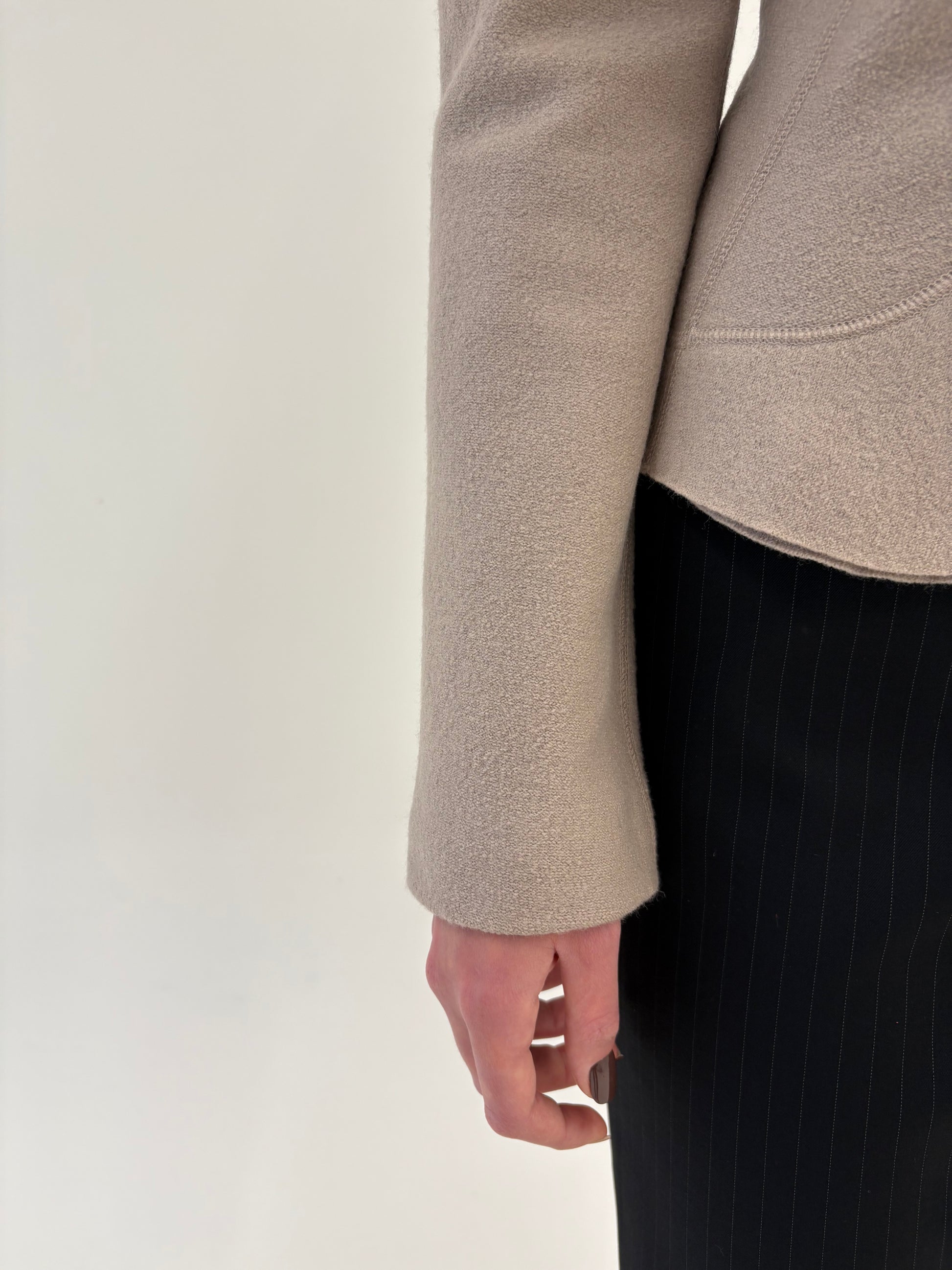 Sacou luxury Marc Cain cambrat pink nude din lana extrafina