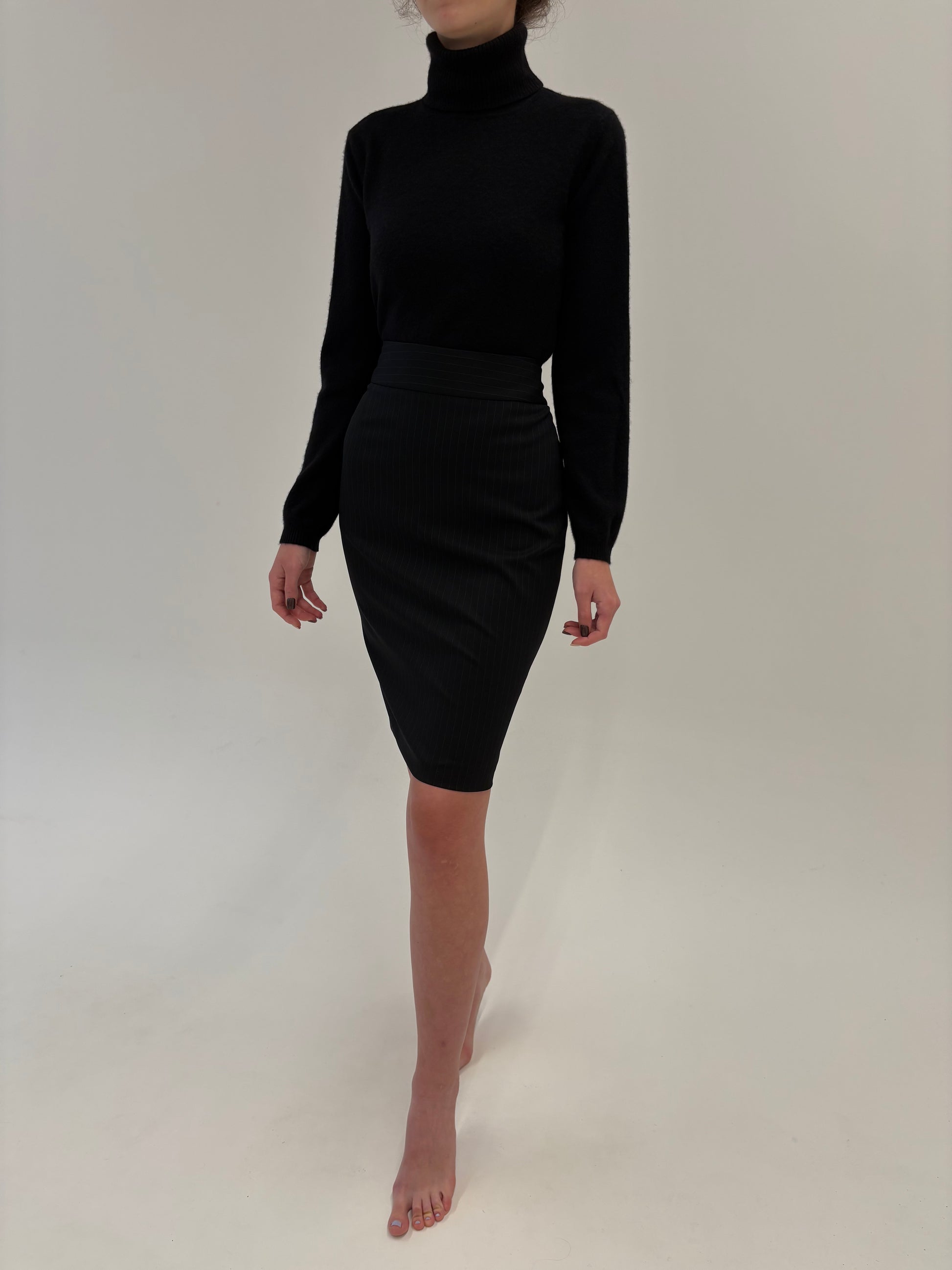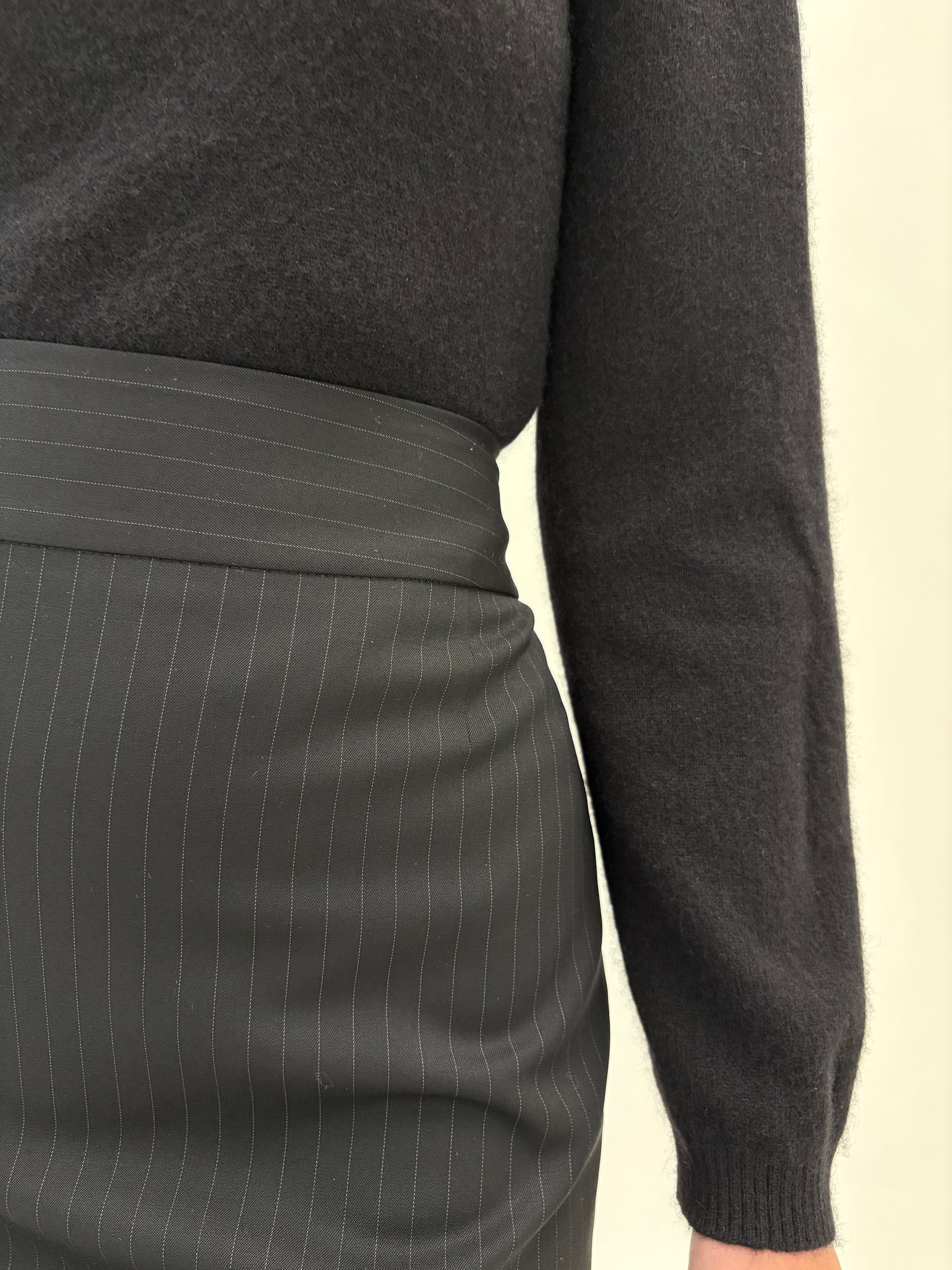 Fustă Hugo Boss din lana extrafina cu dungi fine ivoire verticale