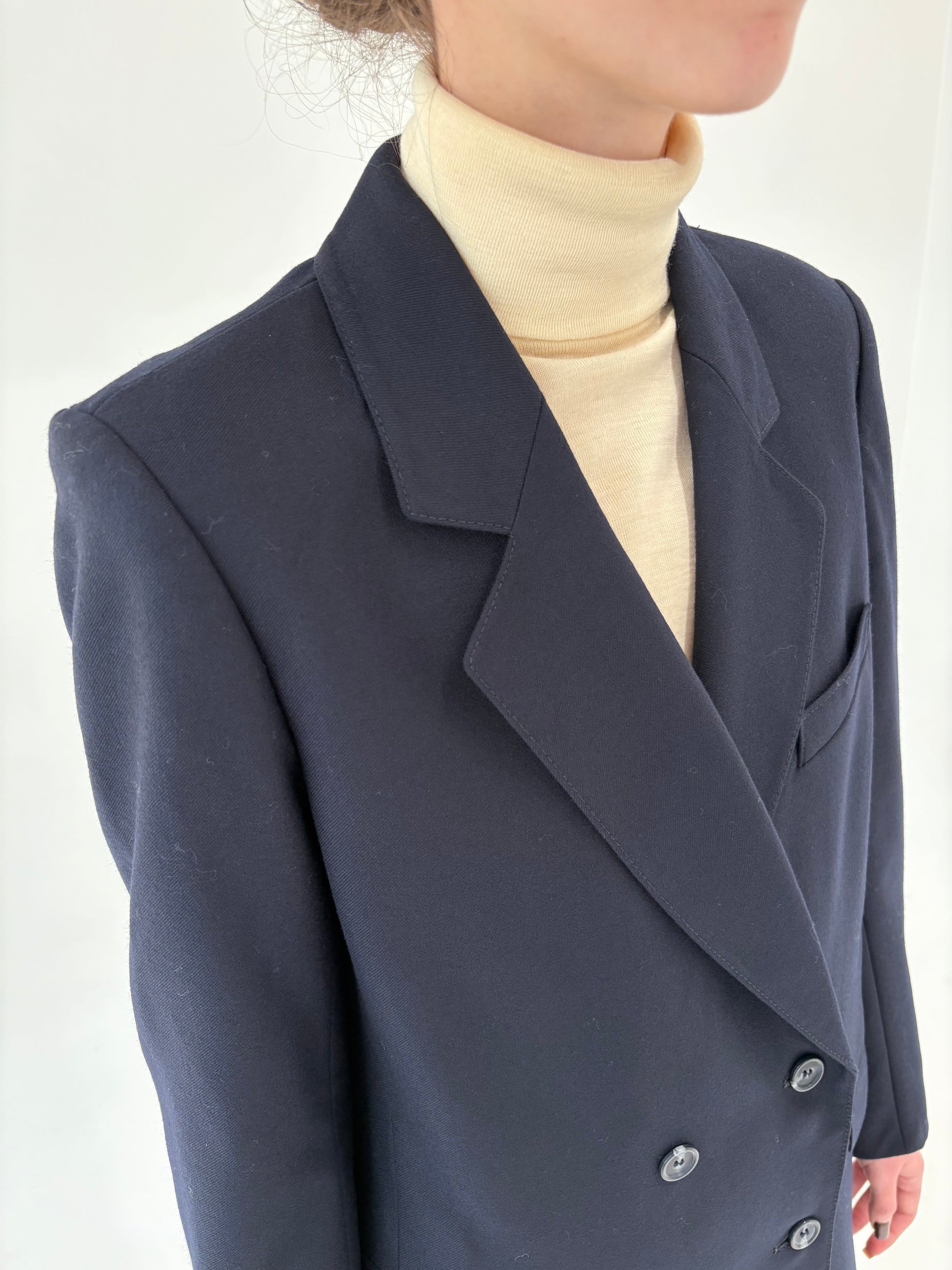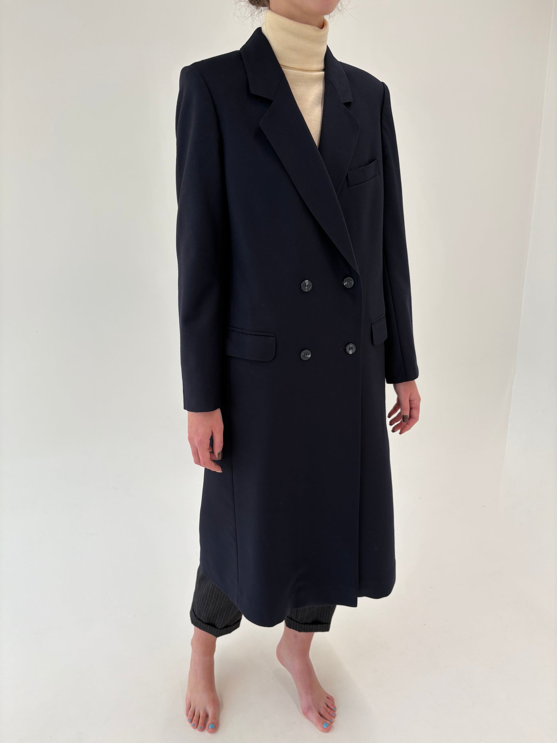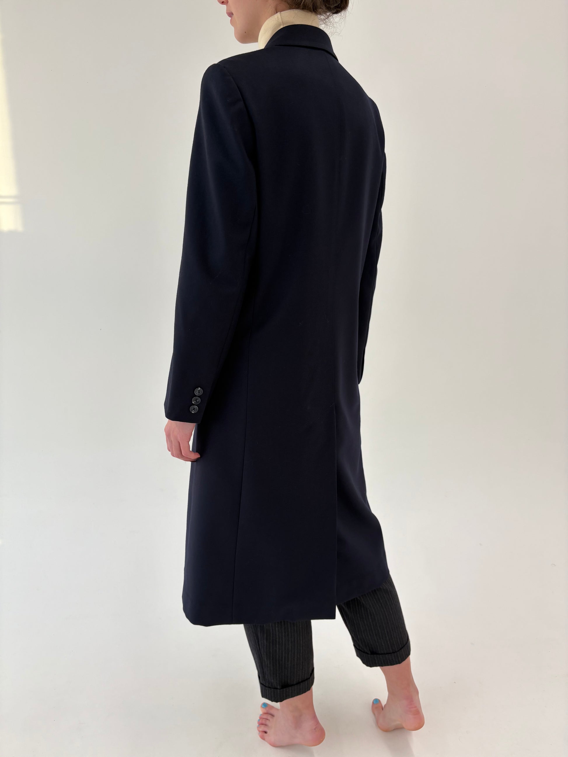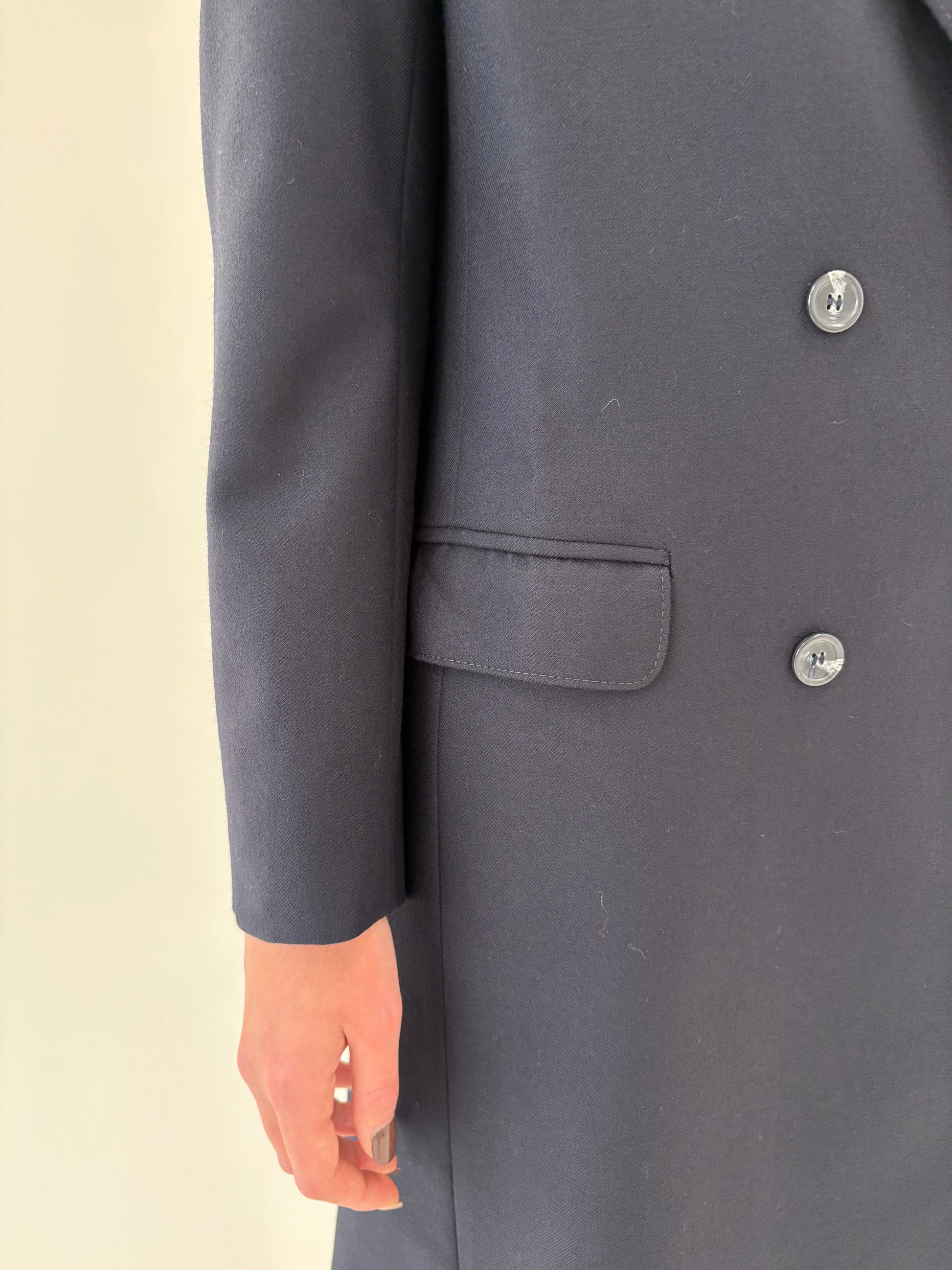 Palton din lana worsted certificata în croi lung cu închidere dublă