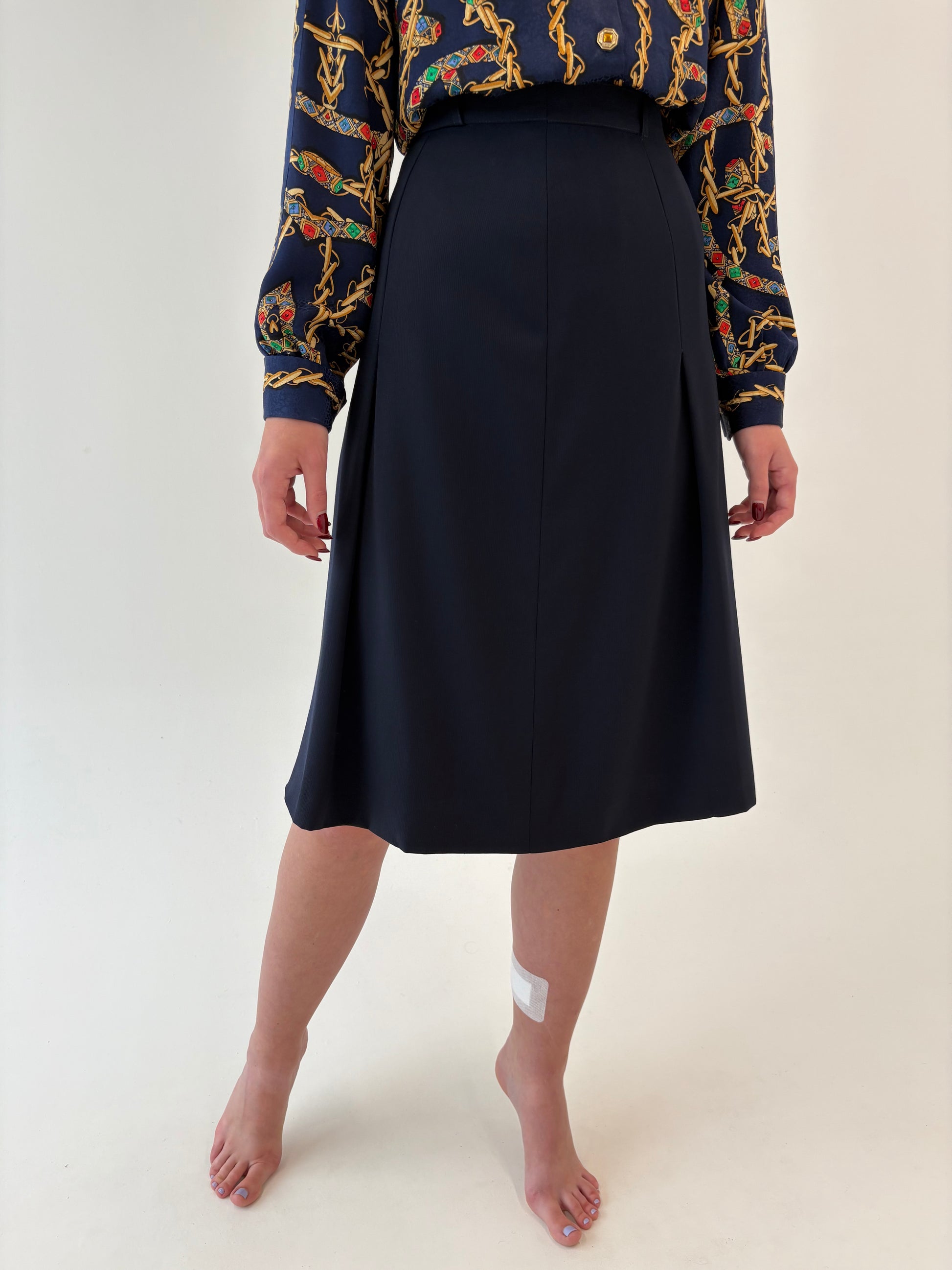 Fustă vintage Navy italiana în croi A-line din lana pura extrafina