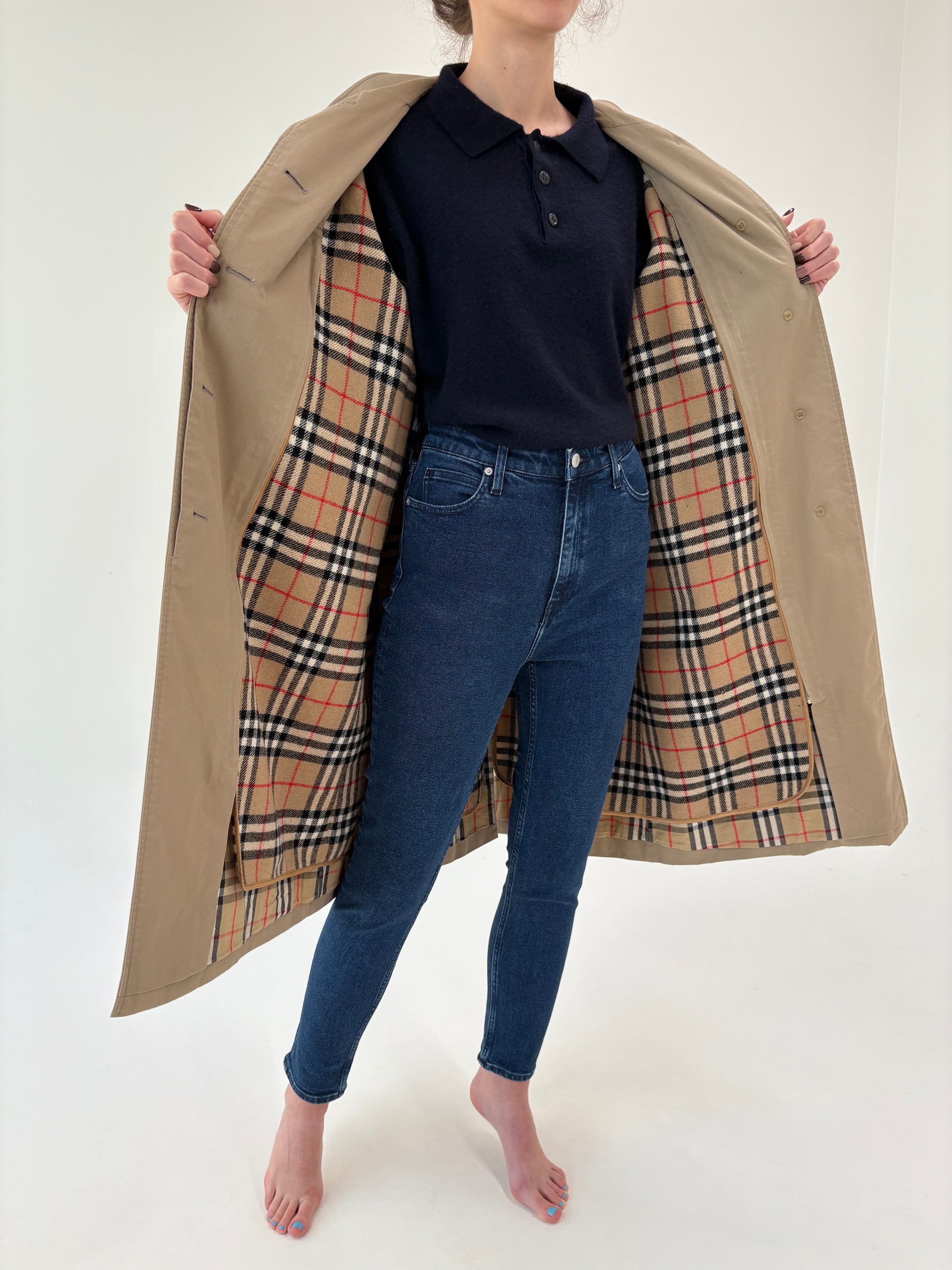 Trench vintage Burberry high end cu liner de lana