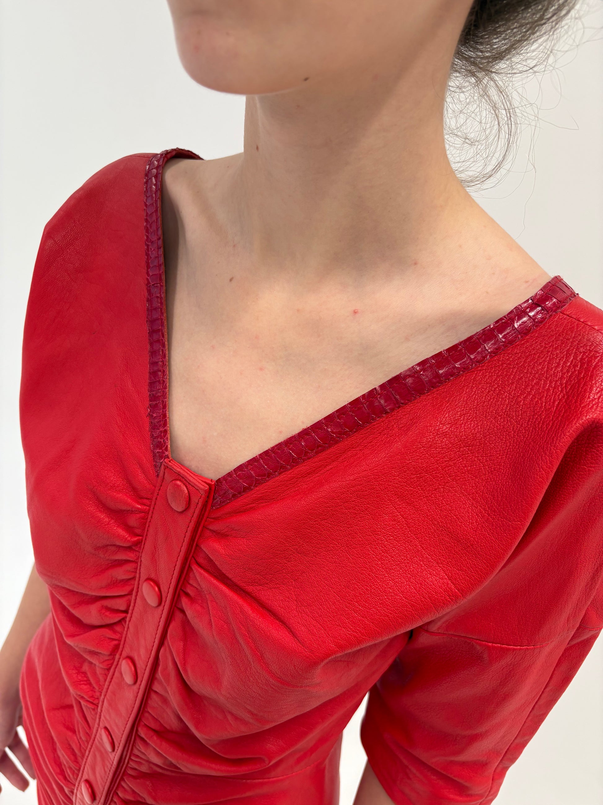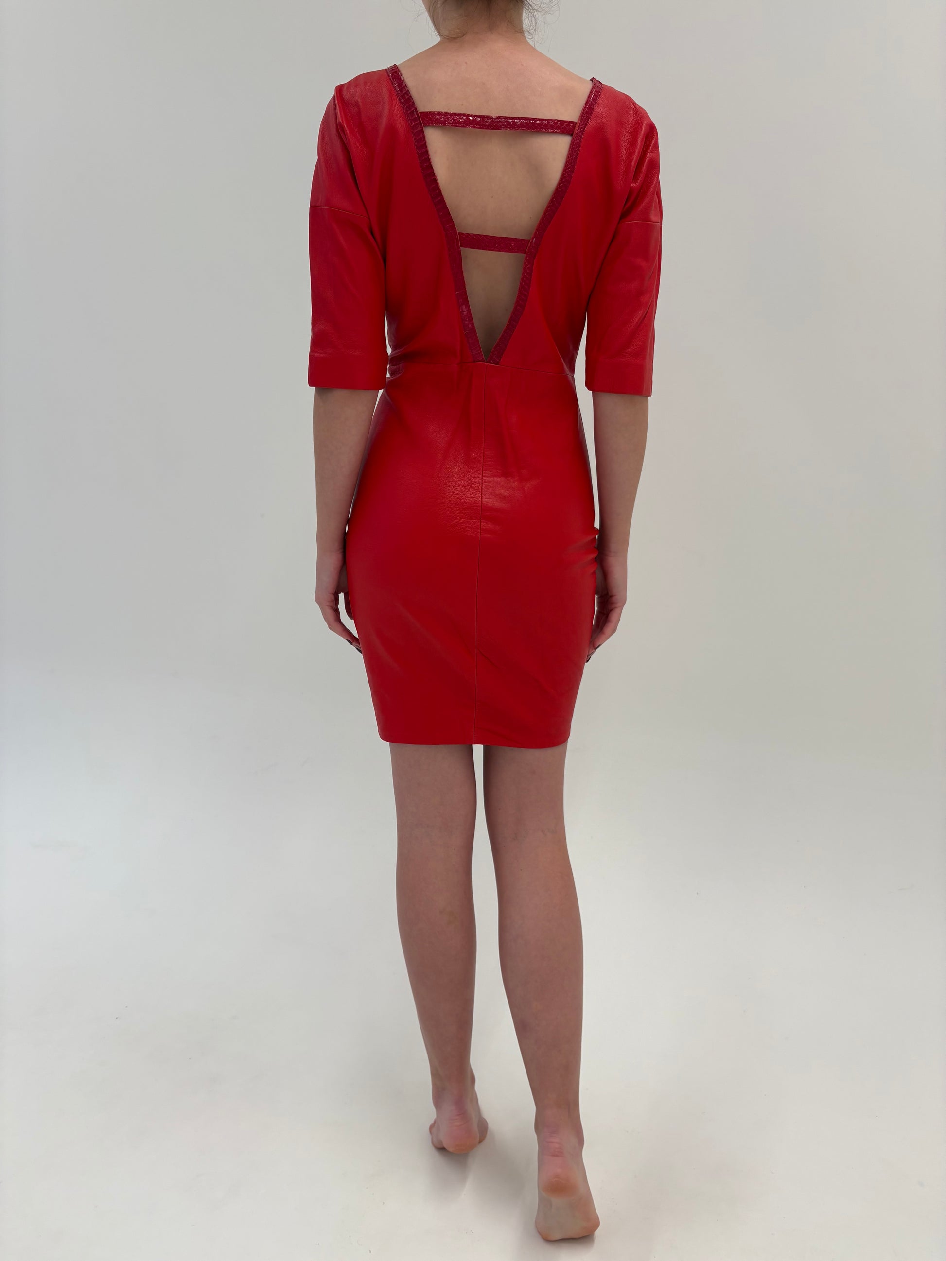 Rochie vintage statement din piele naturală mănușă cu spate decupat