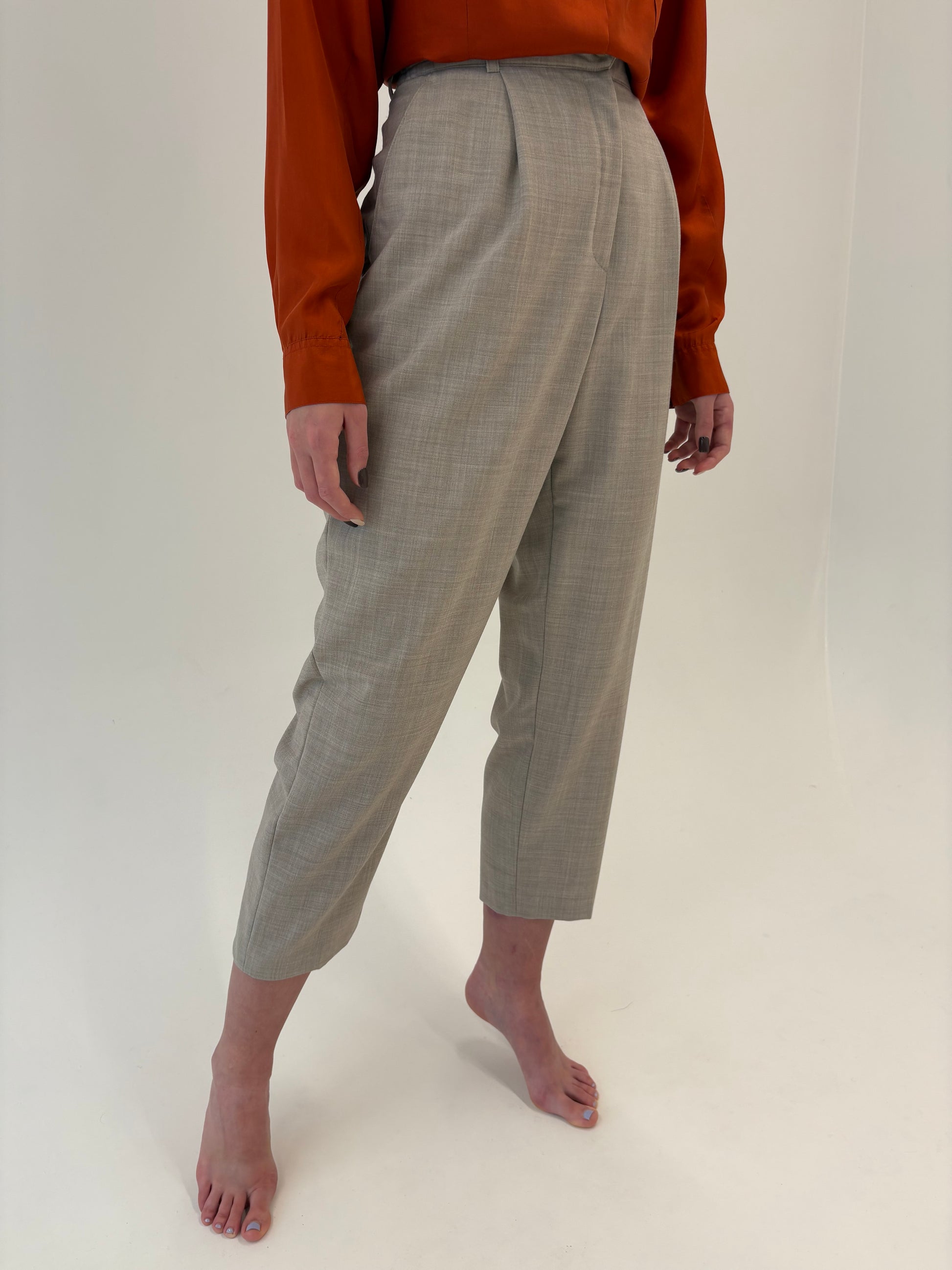 Pantaloni light nude cu talie ultra înaltă elastică din lana extrafina