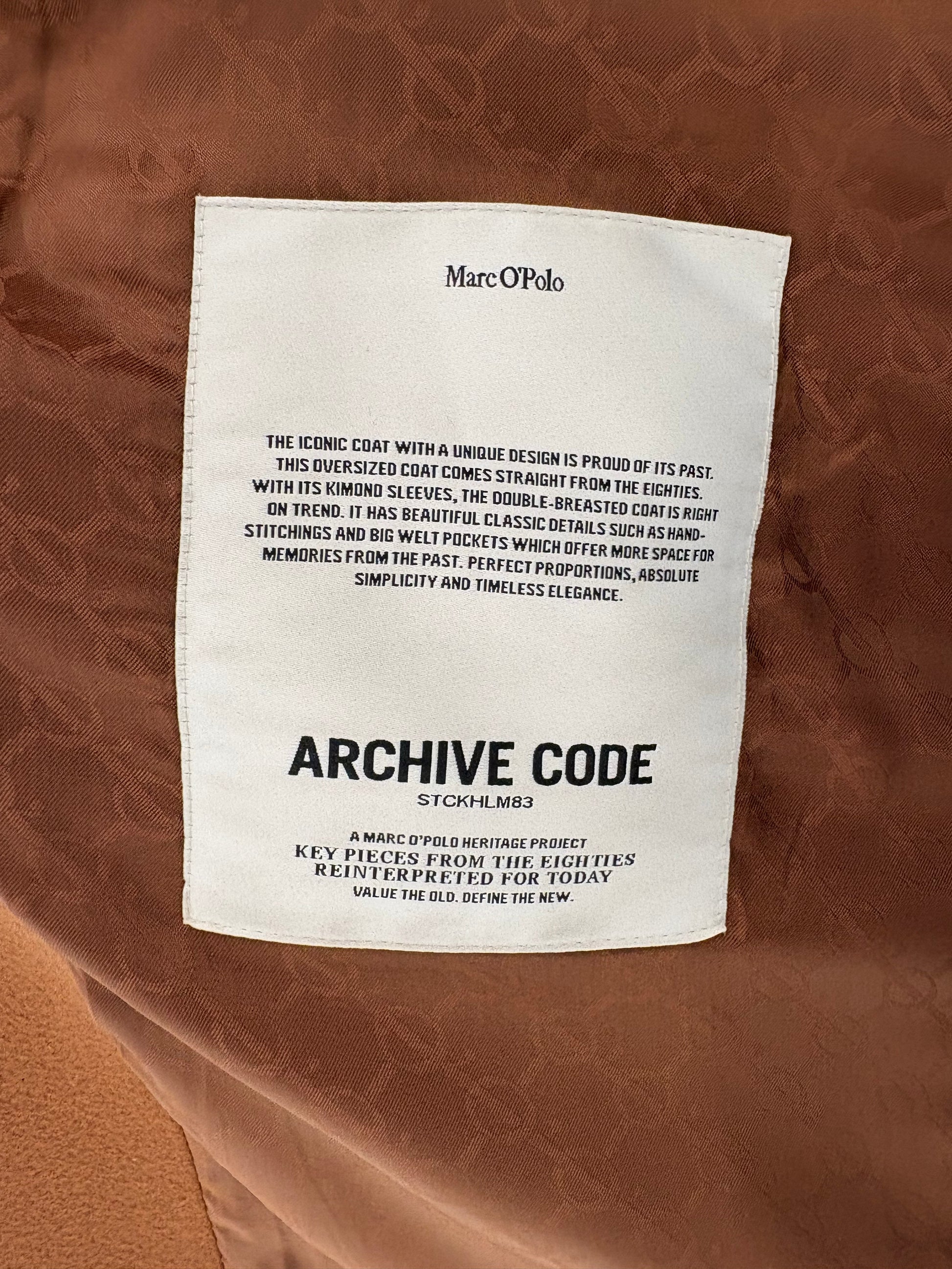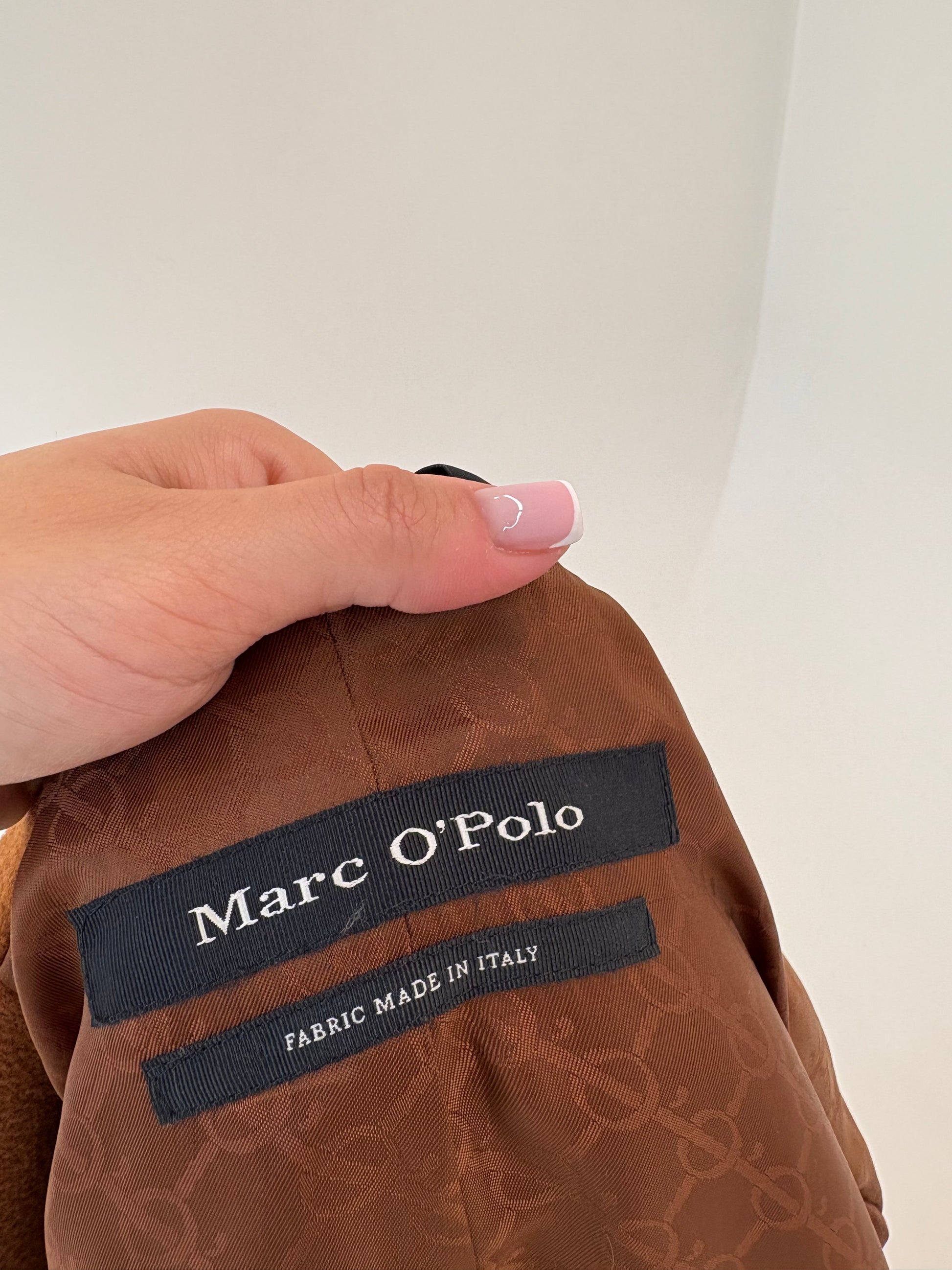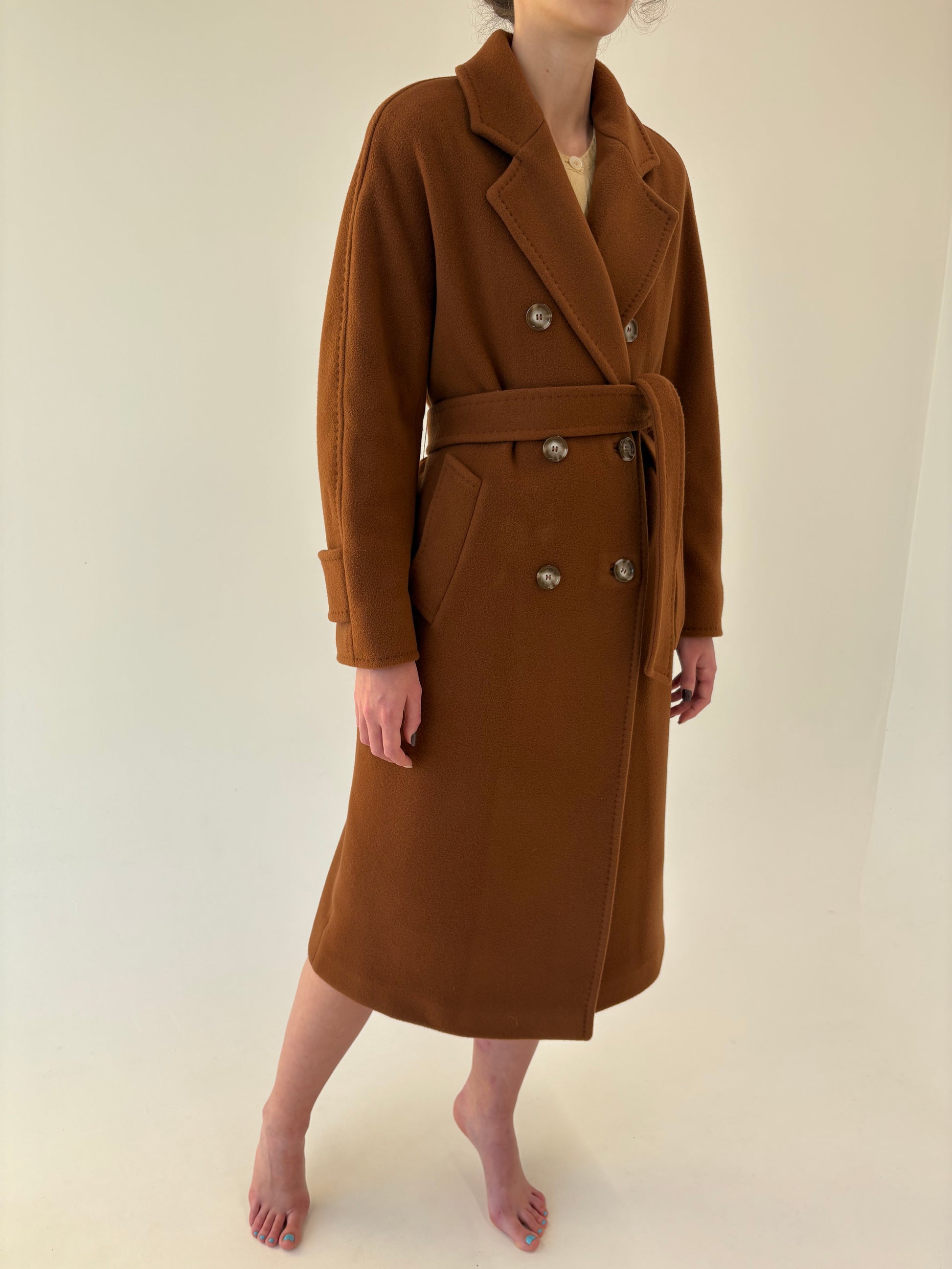 Palton caramel din stofă plină de lana cu cordon și cusături decorative