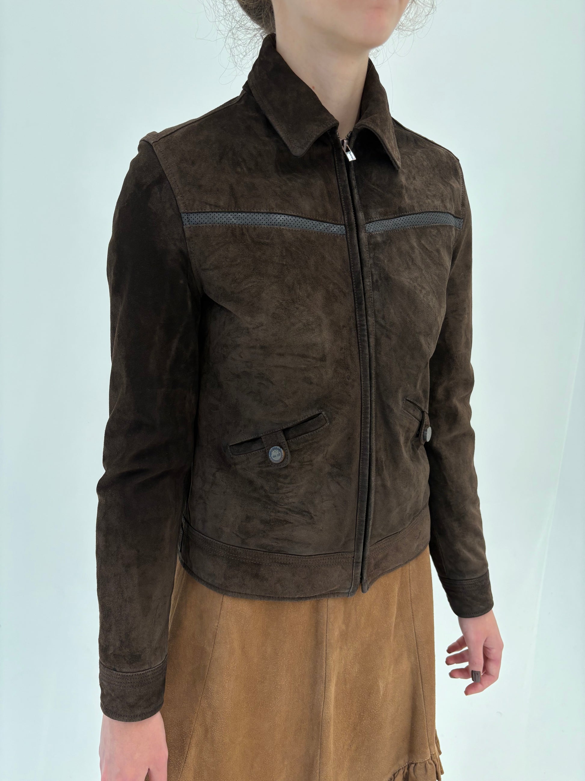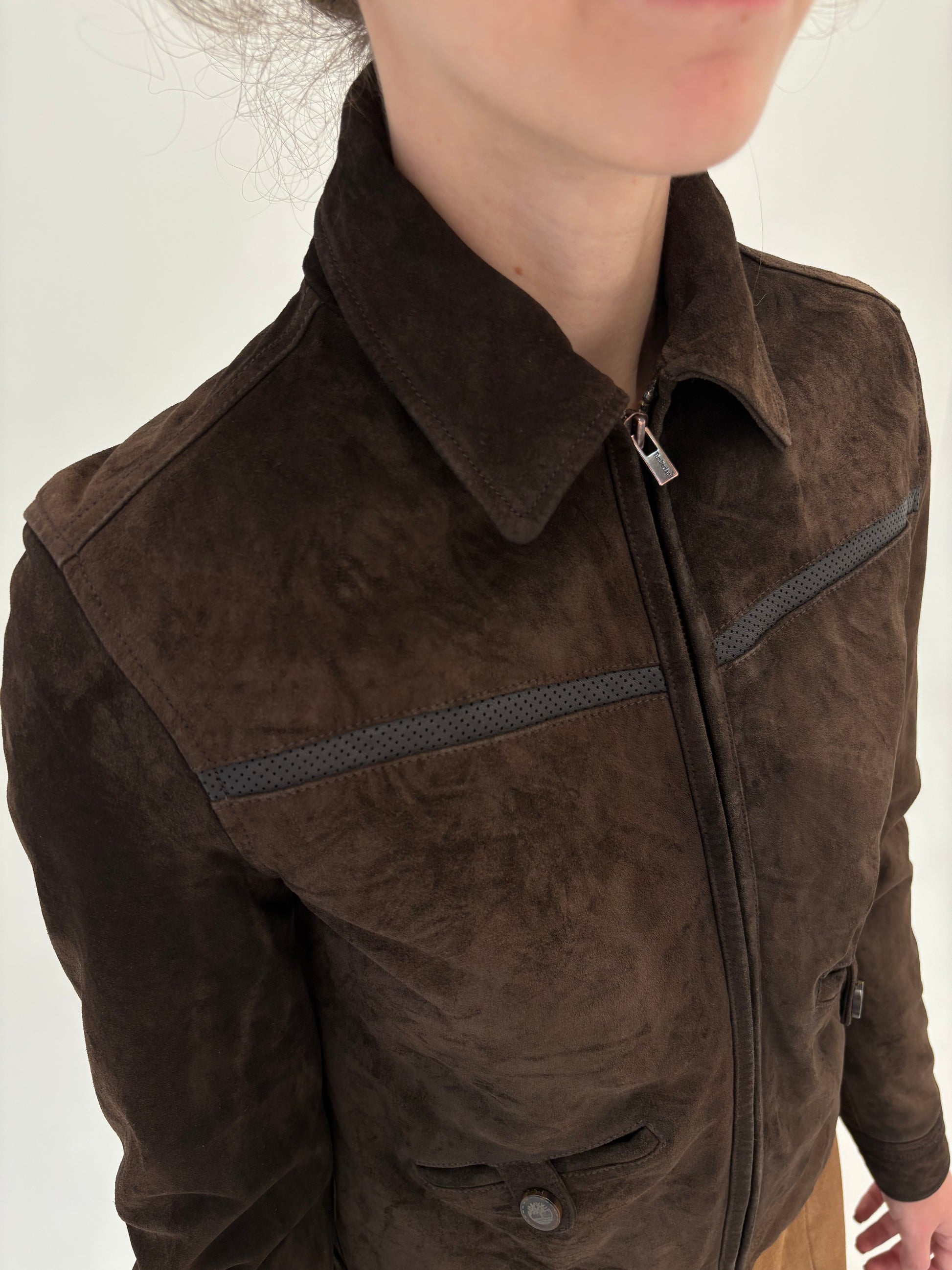 Geacă din piele naturală întoarsă chocolate brown în croi actual