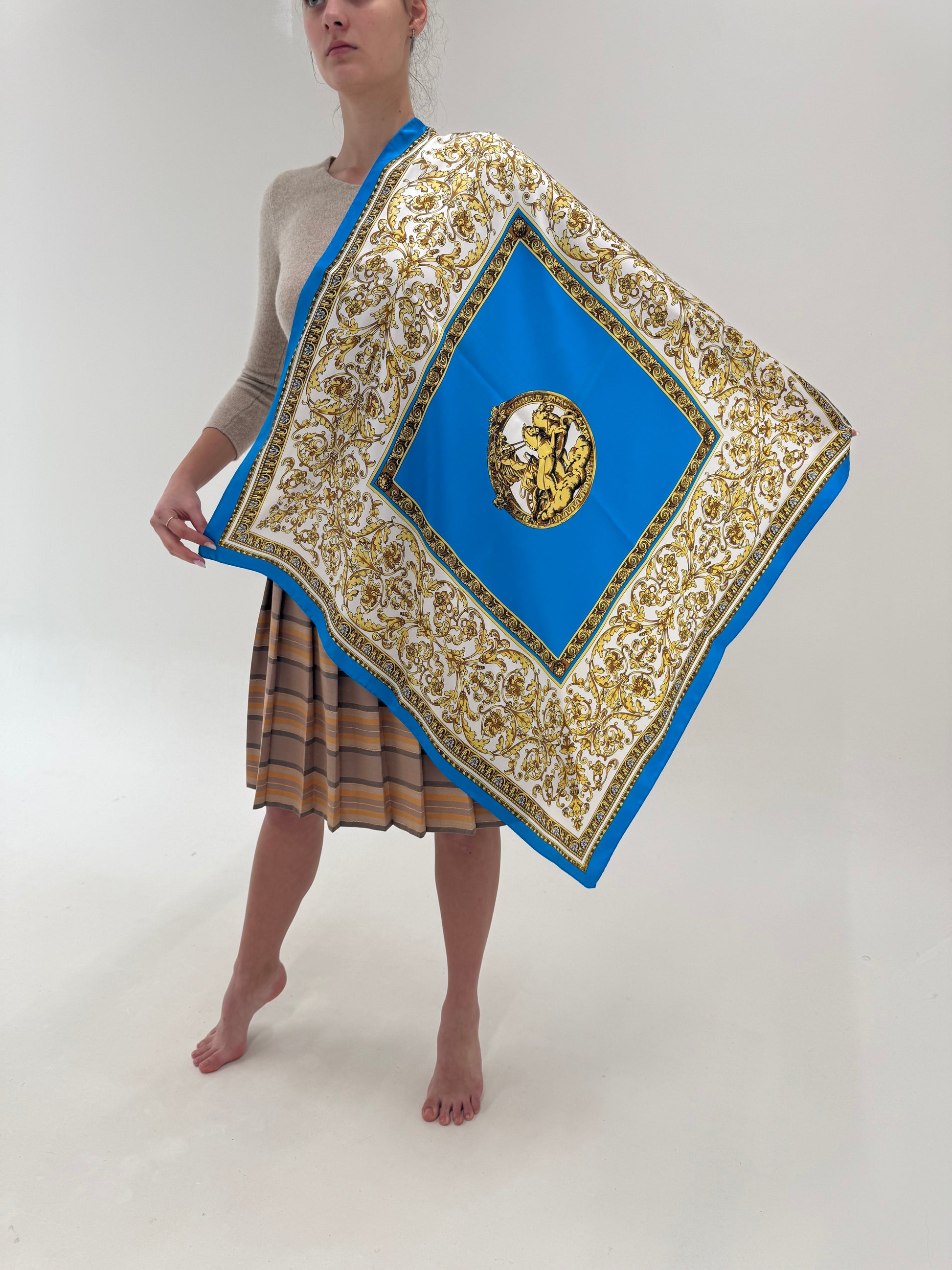 Eșarfă cu print baroc din mătase naturală